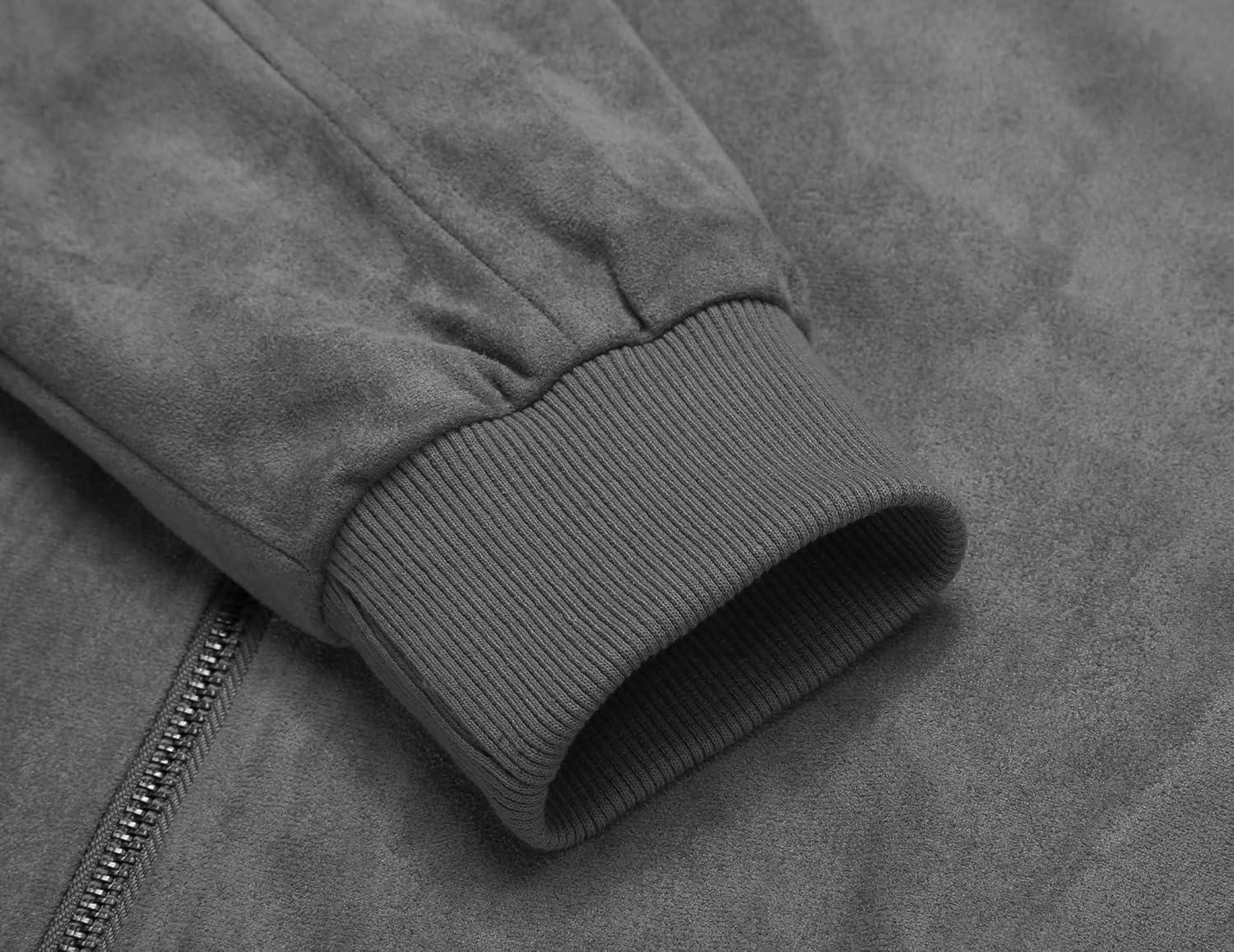 COOFANDY Men’s Casual Suede Bomber Jacket Lightweight Full Zip Up Jackets Vintage Faux Leather Jacket(Dark Grey)