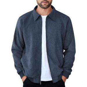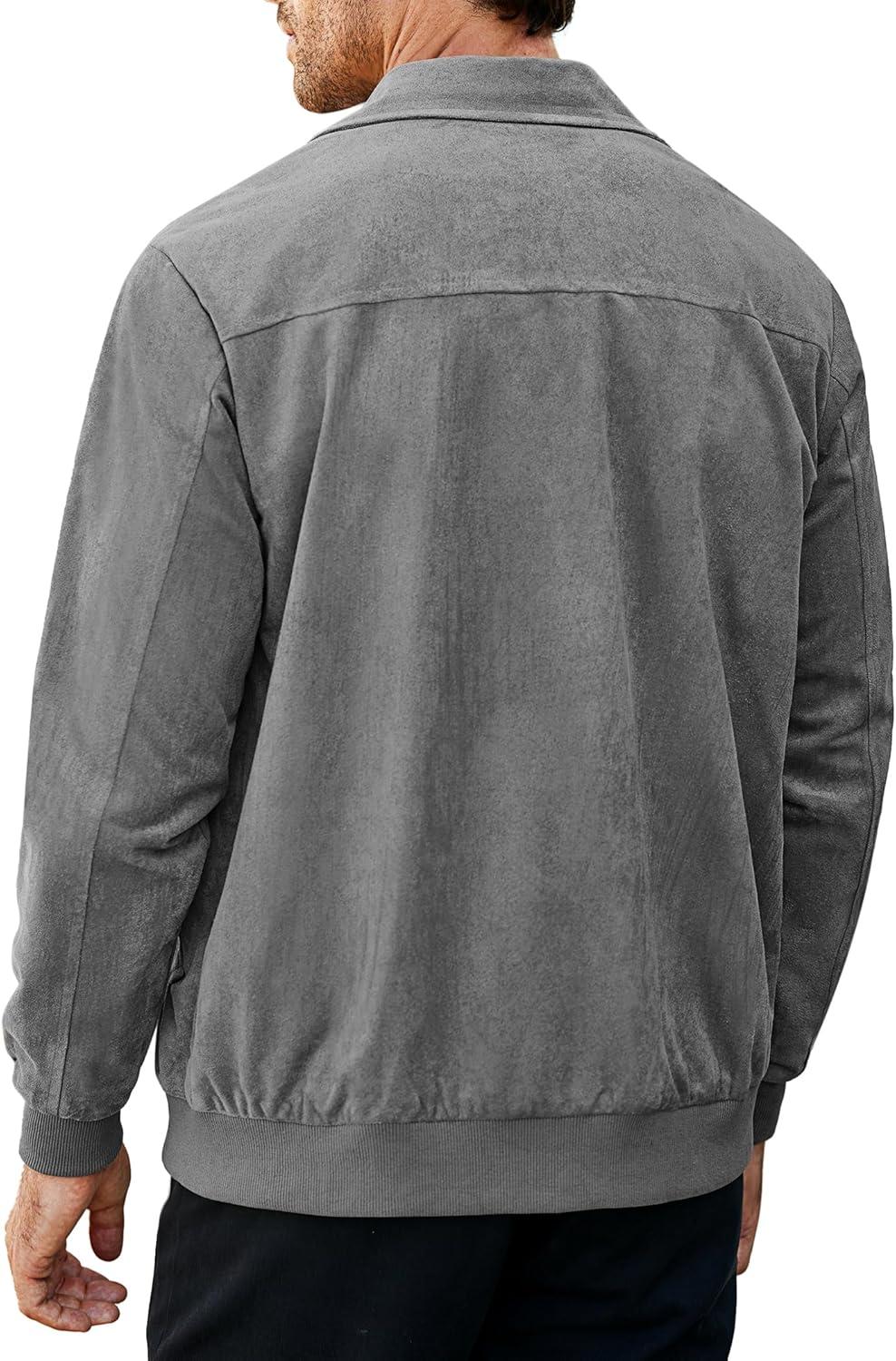 COOFANDY Men’s Casual Suede Bomber Jacket Lightweight Full Zip Up Jackets Vintage Faux Leather Jacket(Moon Grey)