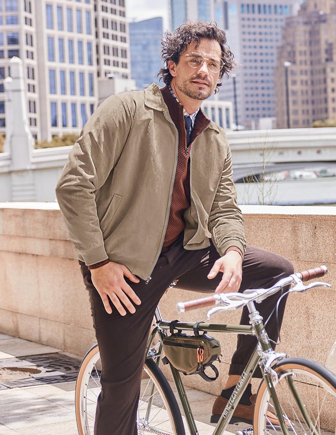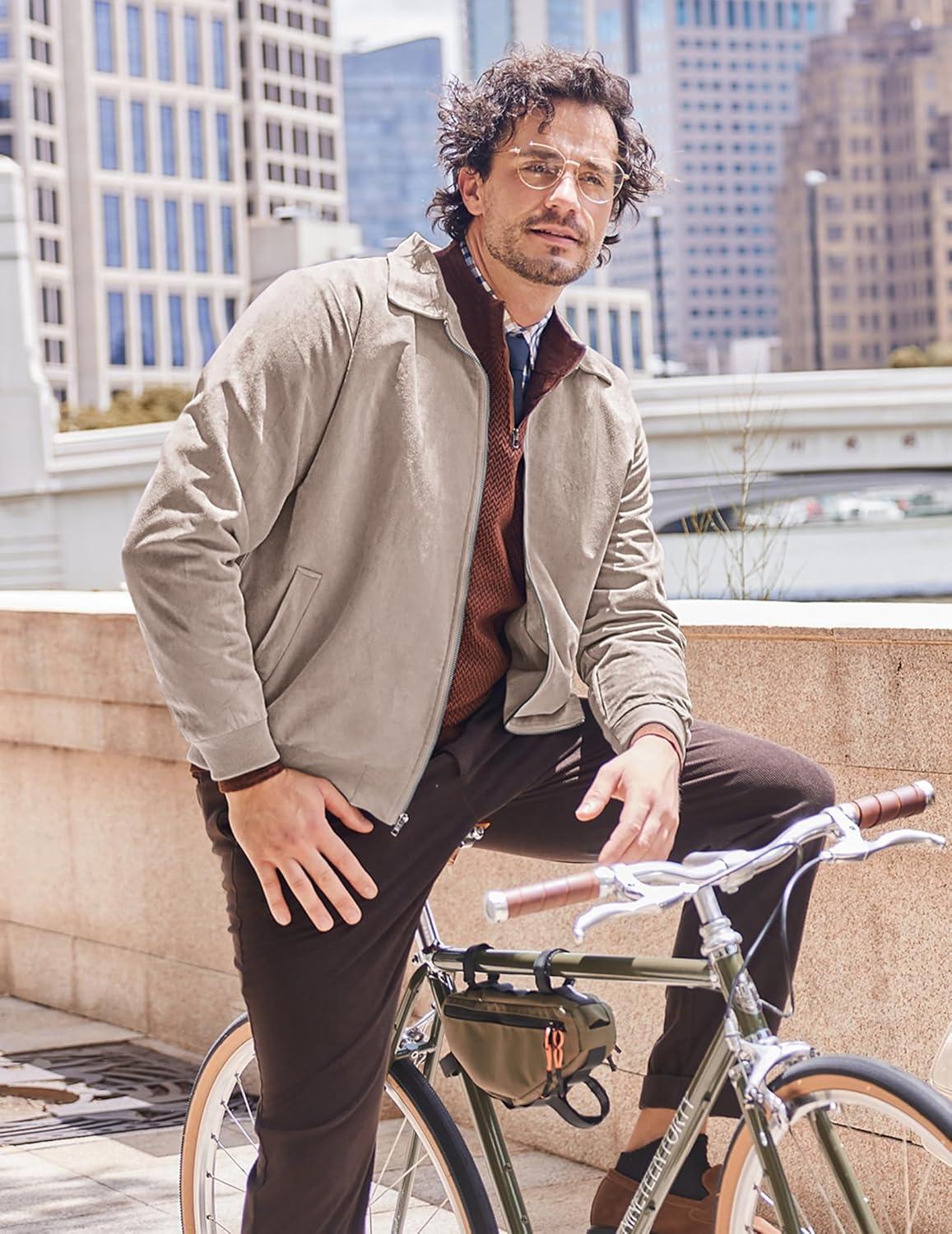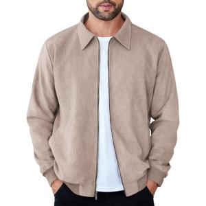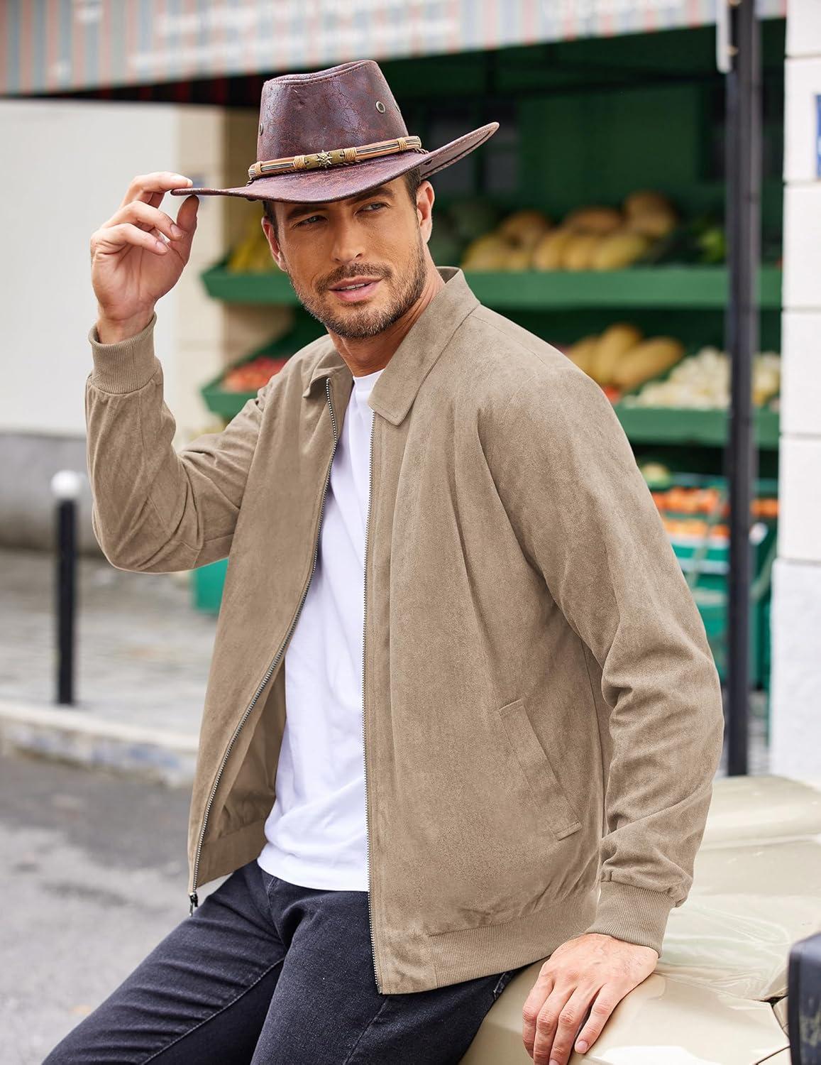 COOFANDY Men’s Casual Suede Bomber Jacket Lightweight Full Zip Up Jackets Vintage Faux Leather Jacket(Light Tan)