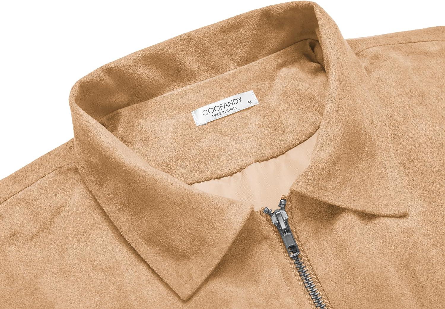 COOFANDY Men’s Casual Suede Bomber Jacket Lightweight Full Zip Up Jackets Vintage Faux Leather Jacket(Khaki)