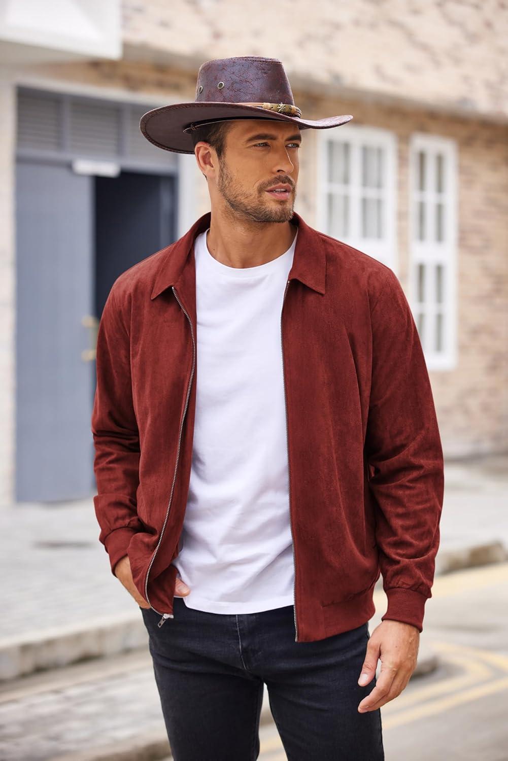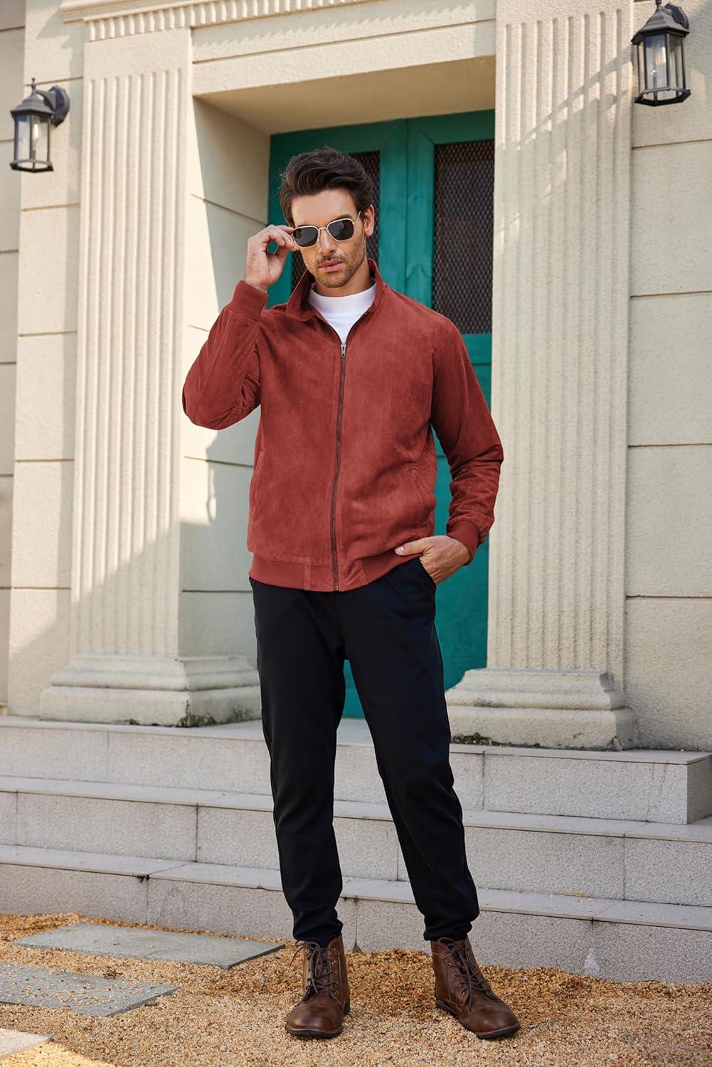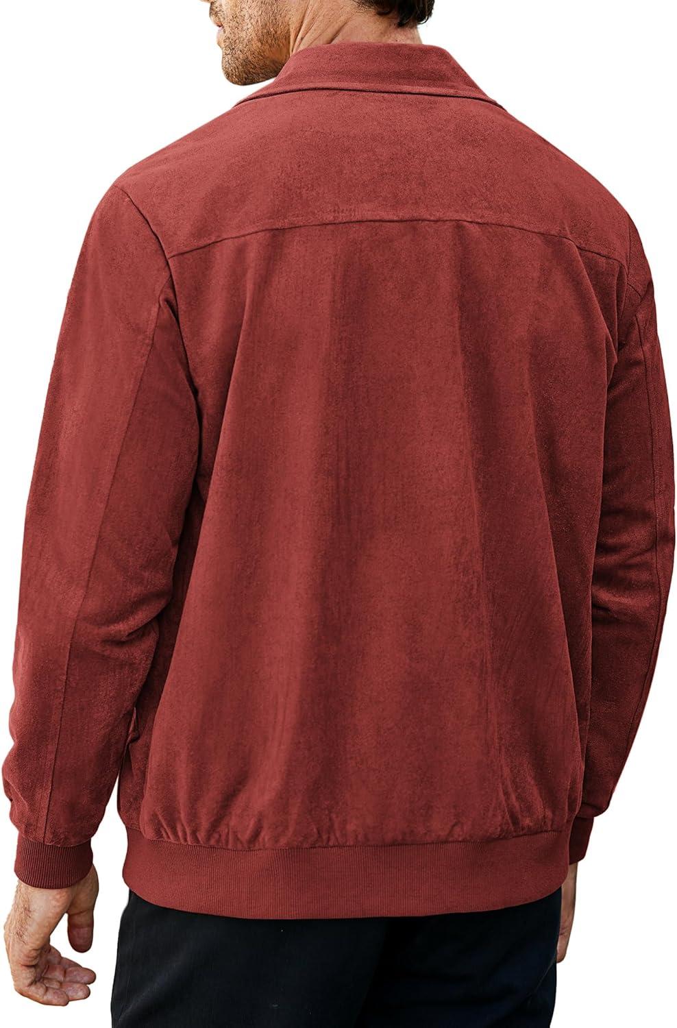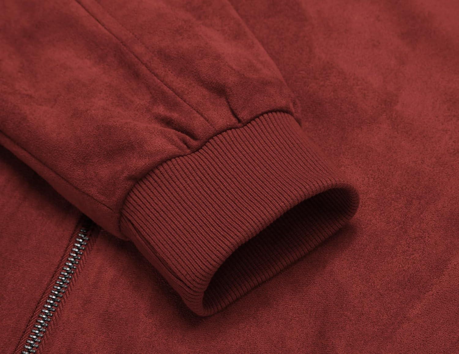 COOFANDY Men’s Casual Suede Bomber Jacket Lightweight Full Zip Up Jackets Vintage Faux Leather Jacket(Wine Red)