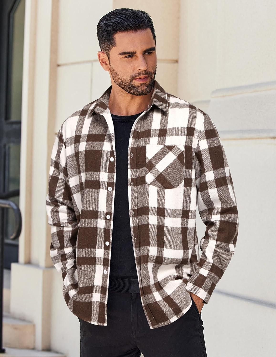 COOFANDY Men’s Casual Button Down Shirts Long Sleeve Flannel Shirts Untucked Vintage Shirts