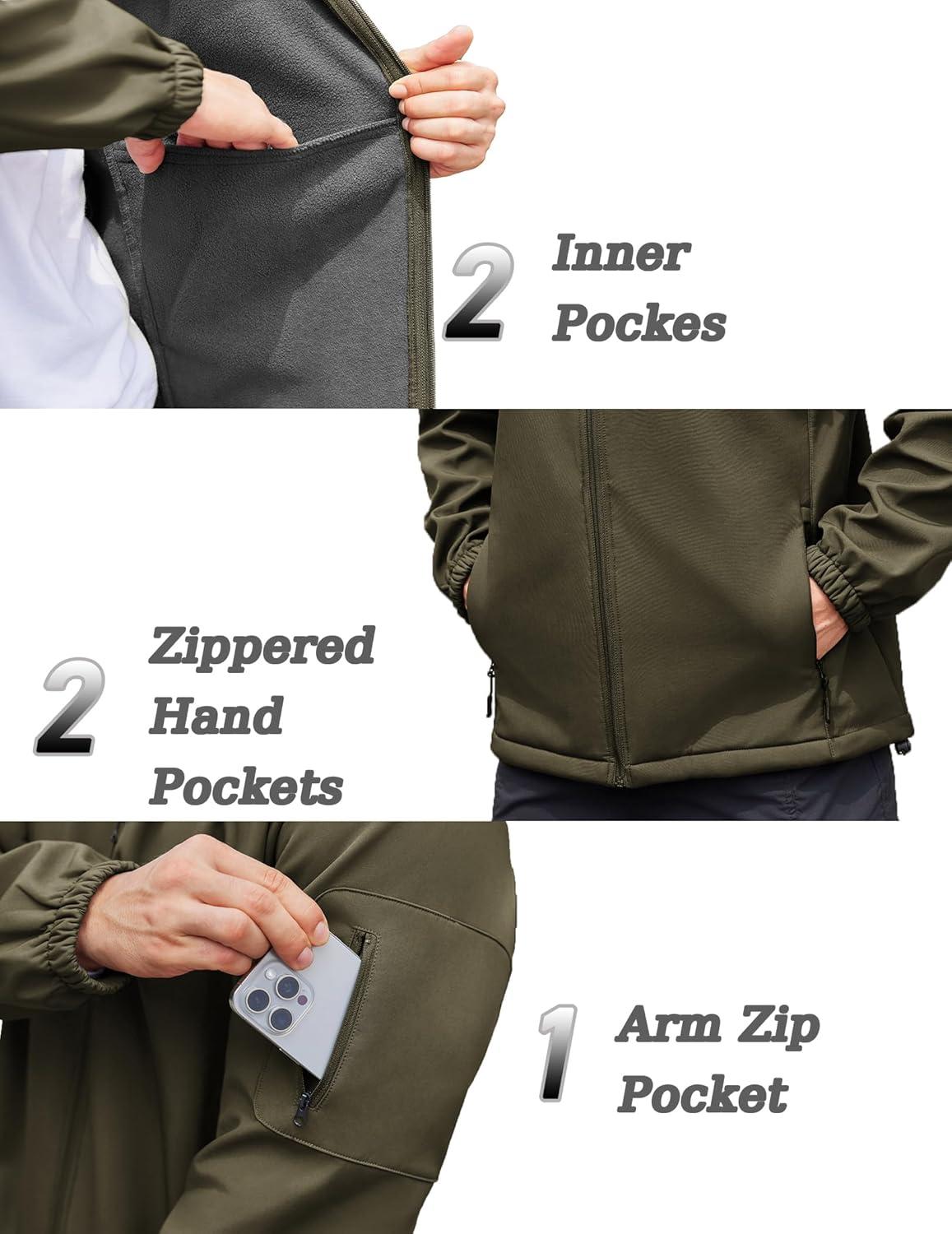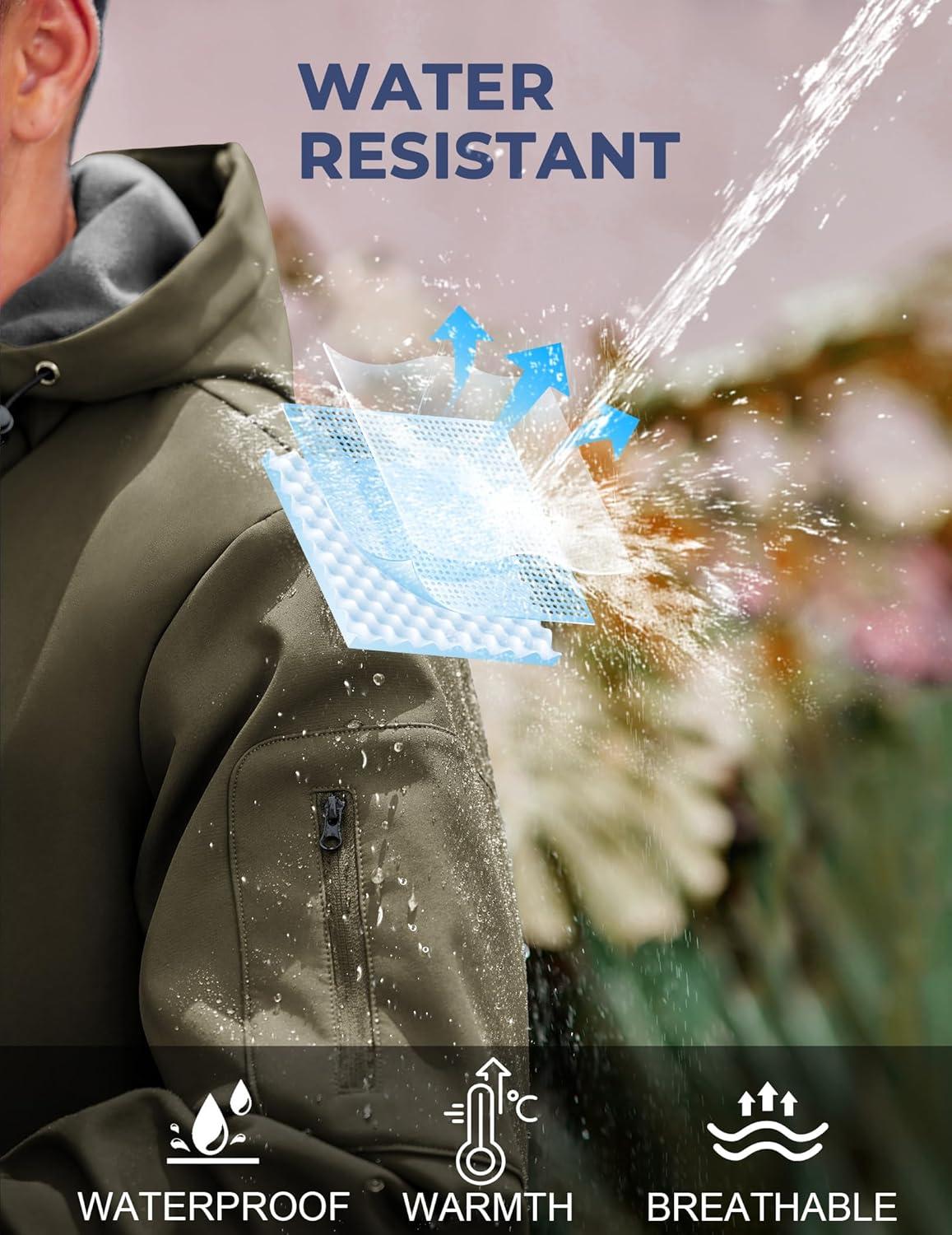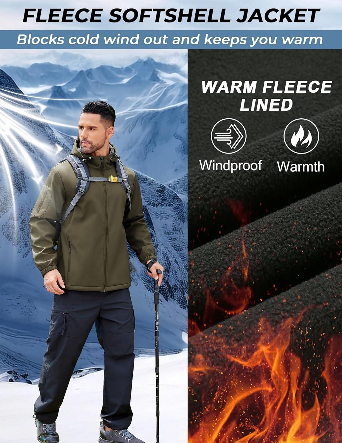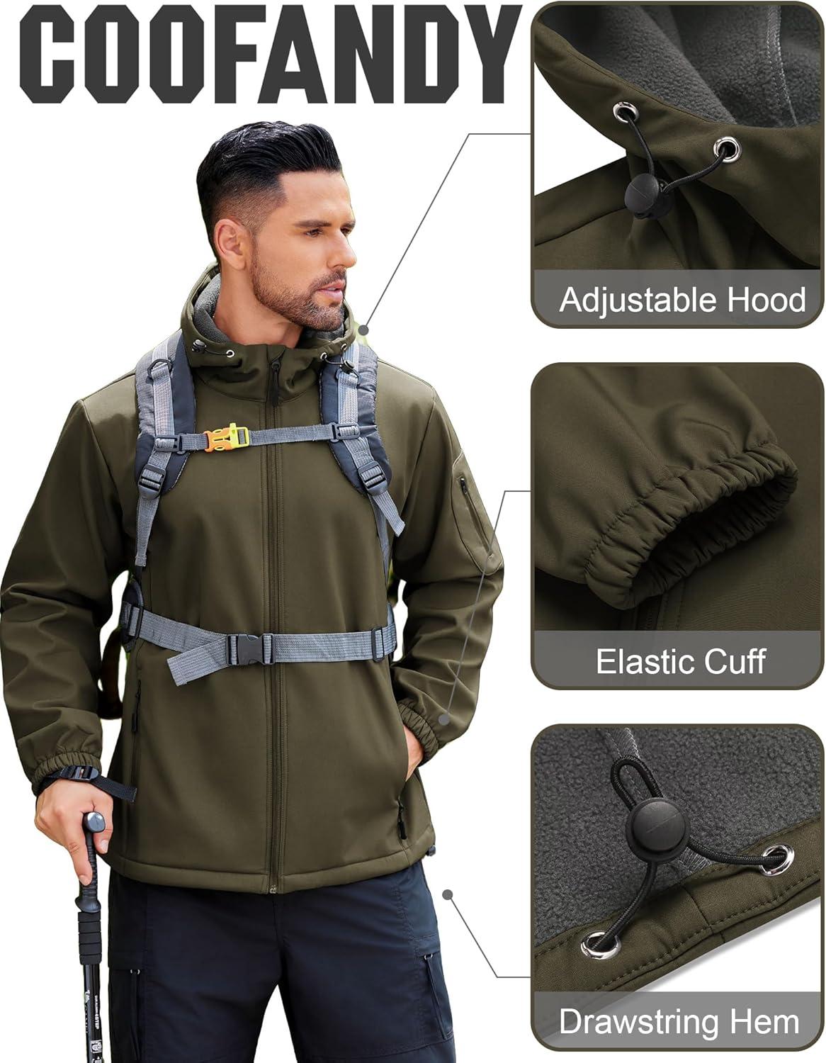 COOFANDY Men’s Hooded Softshell Jacket Waterproof Fleece Lined Windbreaker Lightweight Outdoor Hiking Jacket(Army Green)