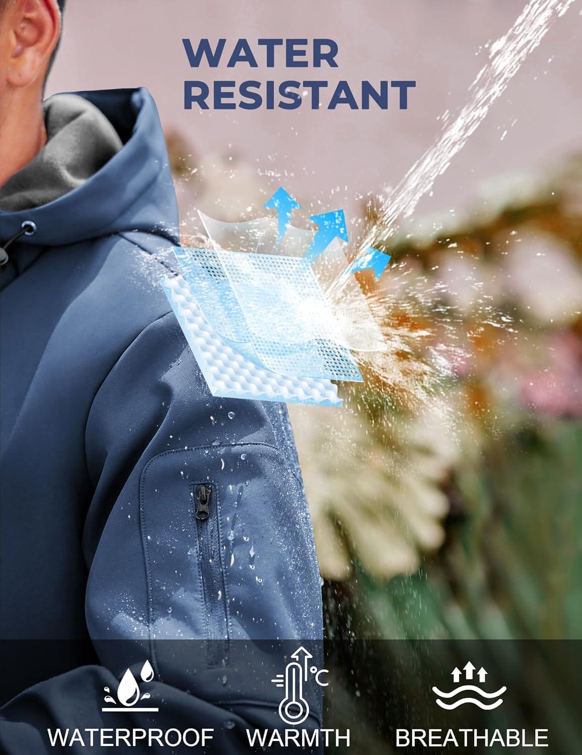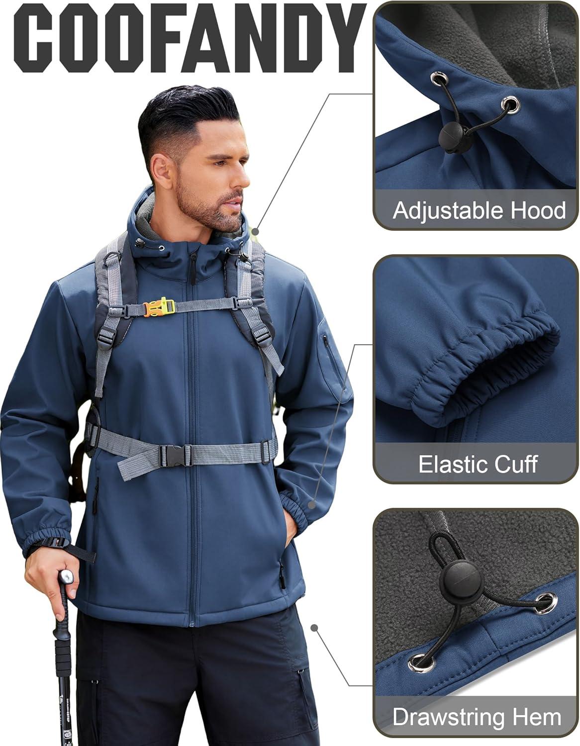 COOFANDY Men’s Hooded Softshell Jacket Waterproof Fleece Lined Windbreaker Lightweight Outdoor Hiking Jacket(Blue)