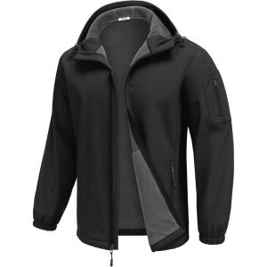 COOFANDY Men’s Hooded Softshell Jacket Waterproof Fleece Lined Windbreaker Lightweight Outdoor Hiking Jacket(Black)
