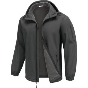 COOFANDY Men’s Hooded Softshell Jacket Waterproof Fleece Lined Windbreaker Lightweight Outdoor Hiking Jacket(Dark Grey)