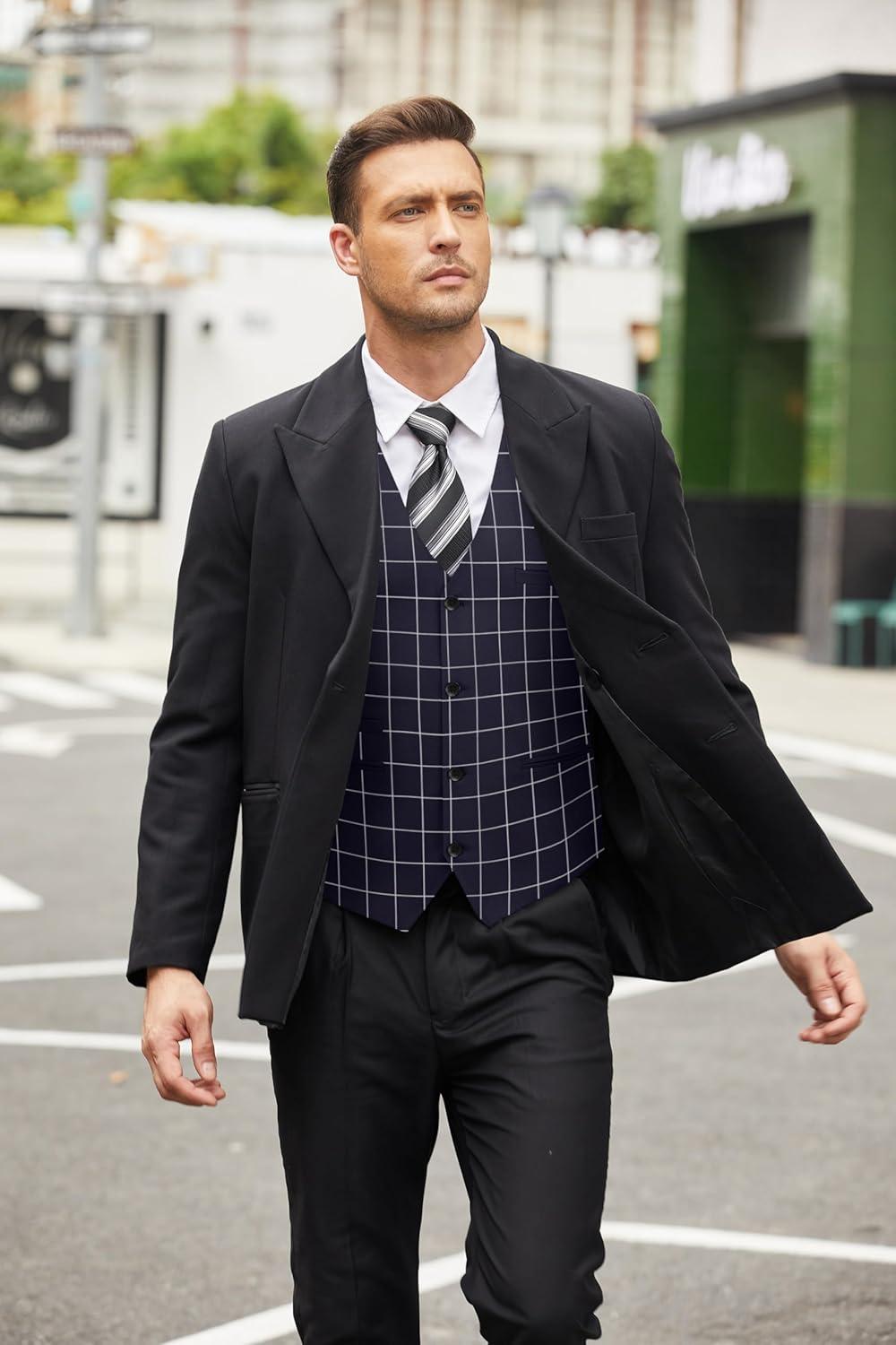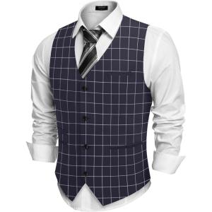 COOFANDY Men’s Casual Business Vests Lightweight Waistcoat Slim Fit Suit Vest(Navy Plaid)