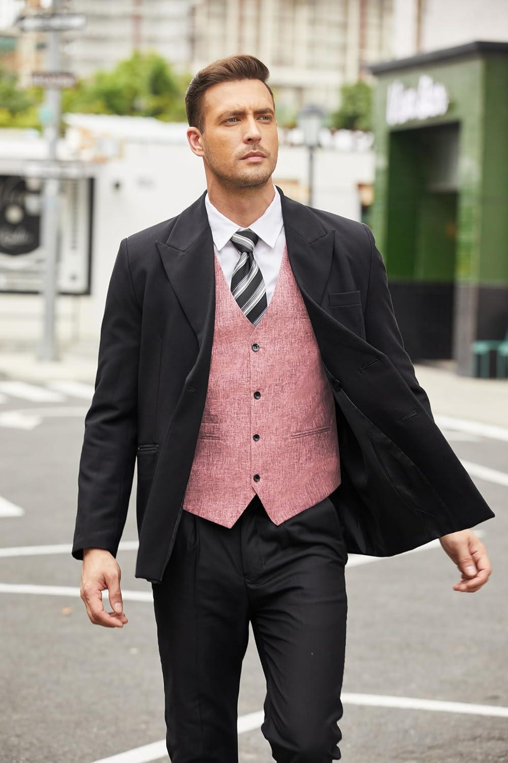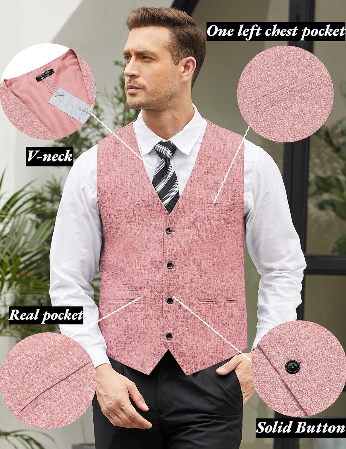 COOFANDY Men’s Casual Business Vests Lightweight Waistcoat Slim Fit Suit Vest(Pink)