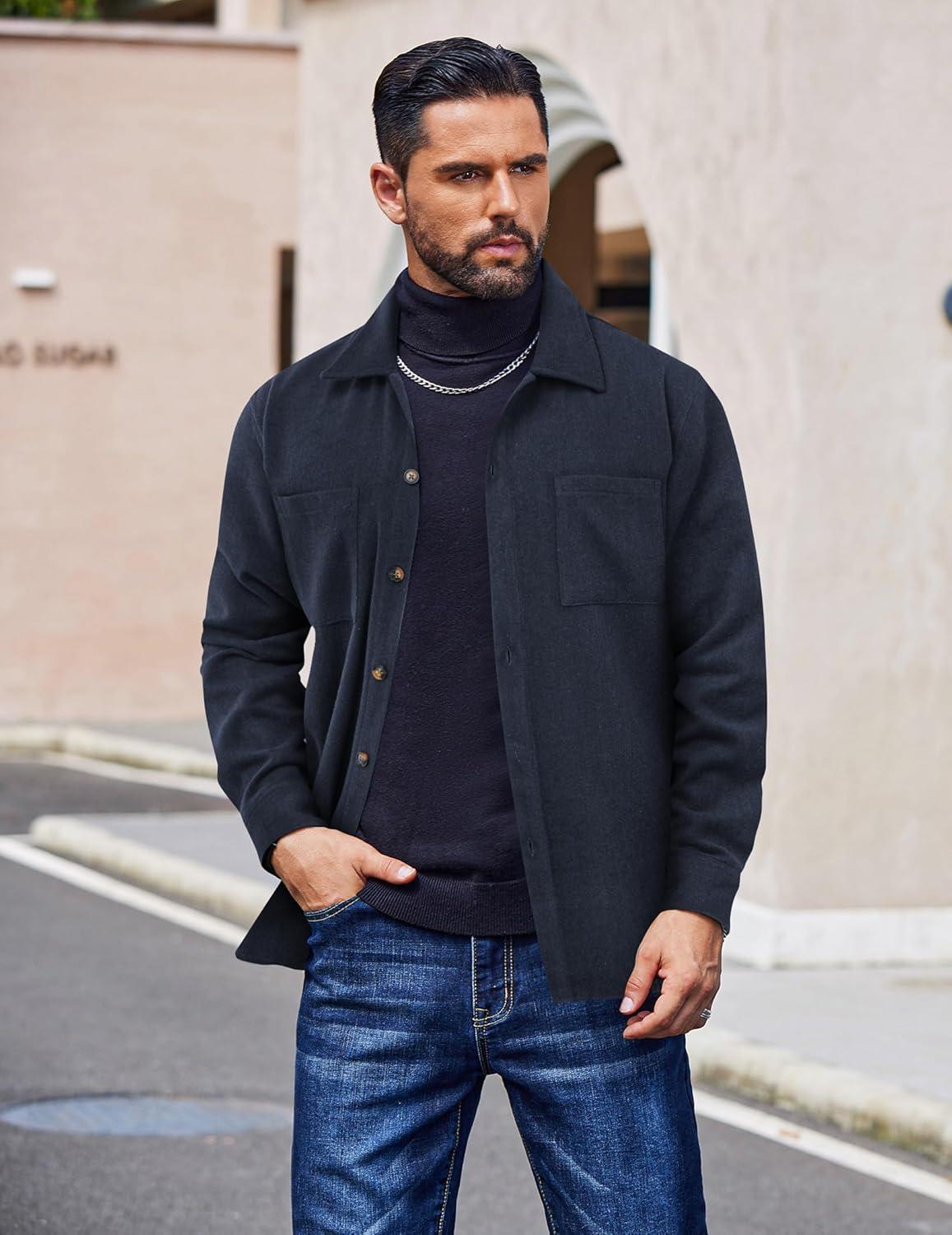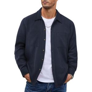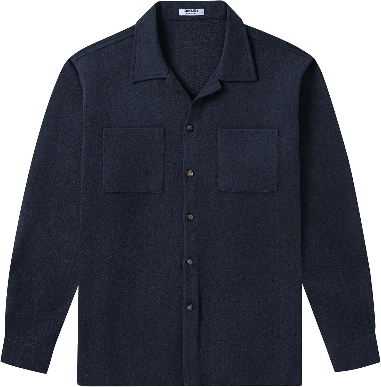 COOFANDY Men’s Flannel Shirts Casual Button Down Plaid Shirt Jacket Long Sleeve Fleece Shacket with Pockets(Solid – Navy Blue)