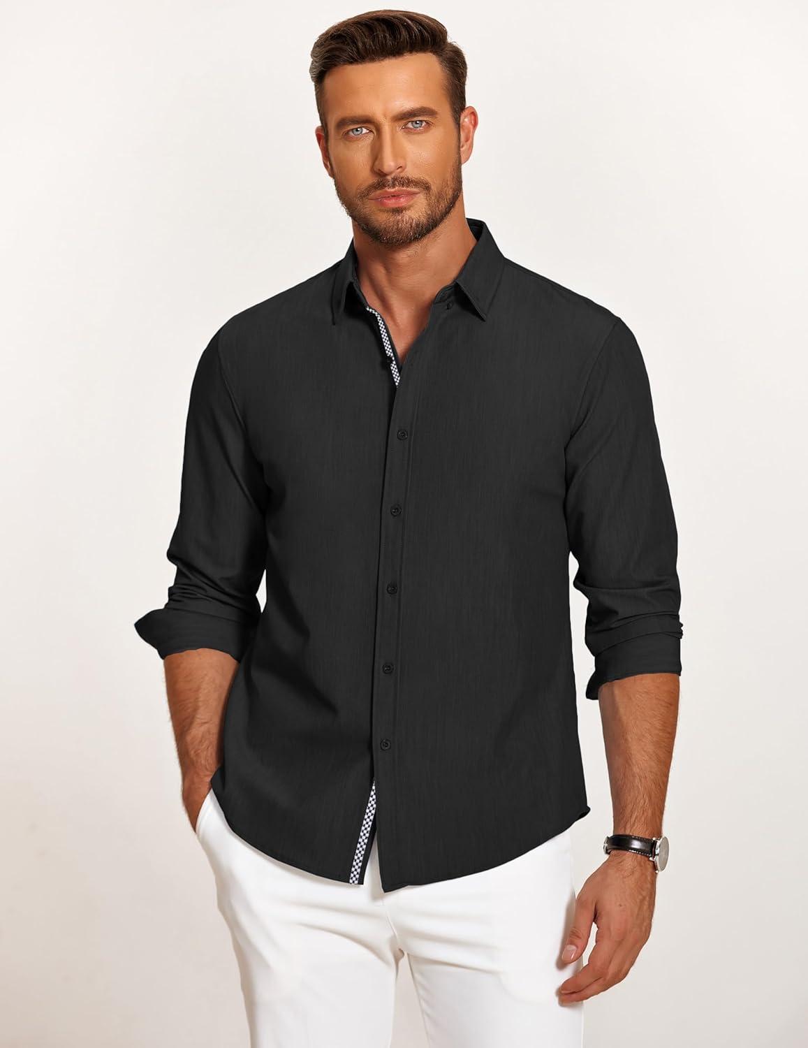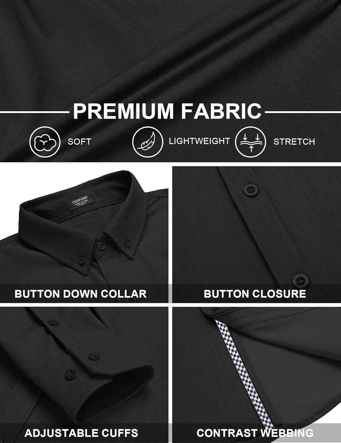 COOFANDY Mens Casual Button Down Shirt Untucked Long Sleeve Stretch Denim Dress Shirt(Black)