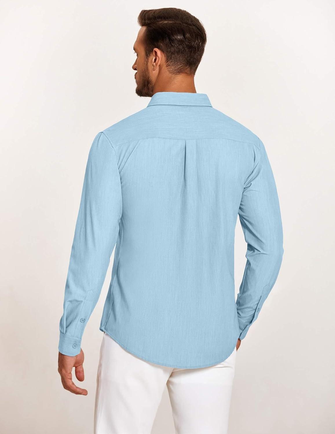 COOFANDY Mens Casual Button Down Shirt Untucked Long Sleeve Stretch Denim Dress Shirt(Light Blue)