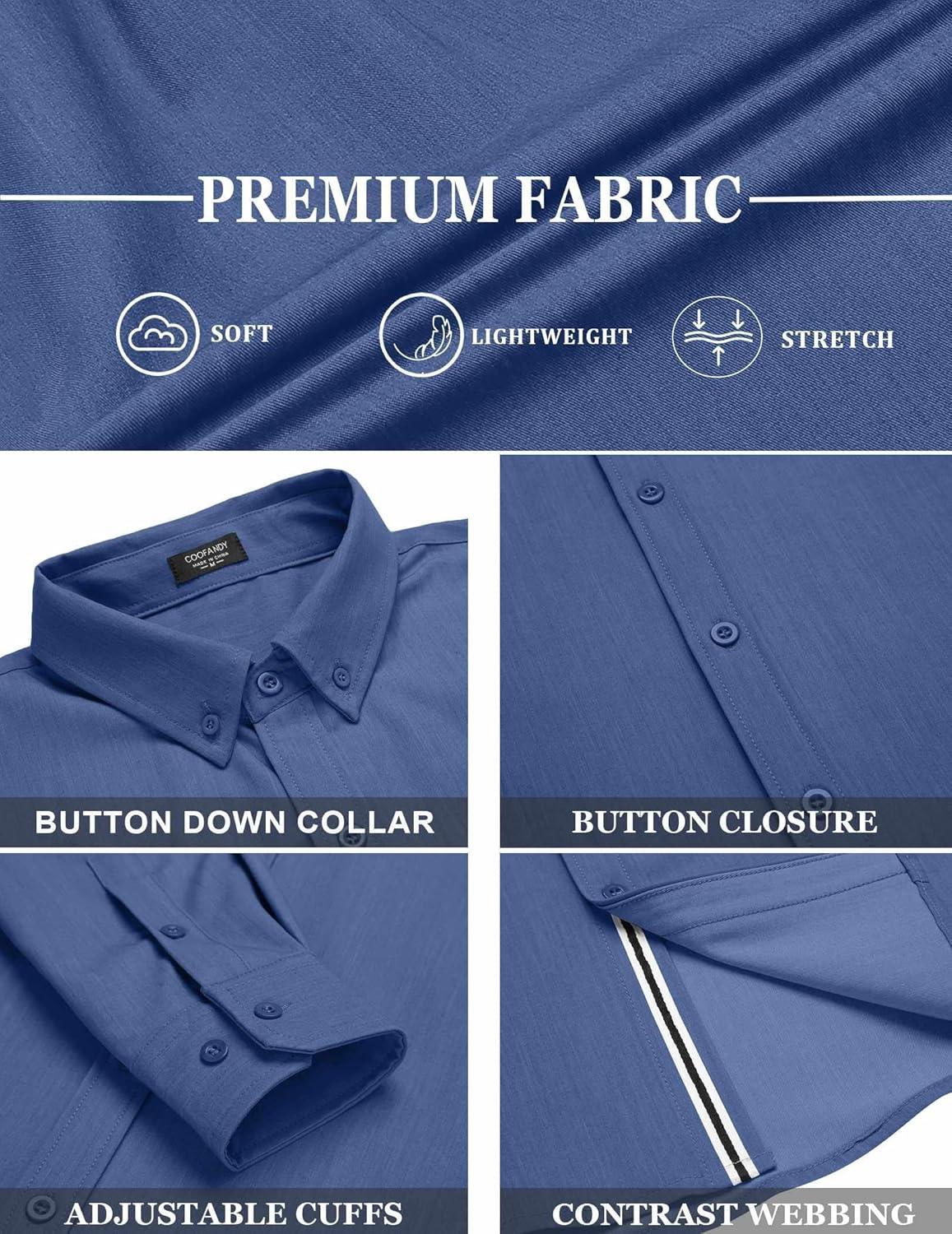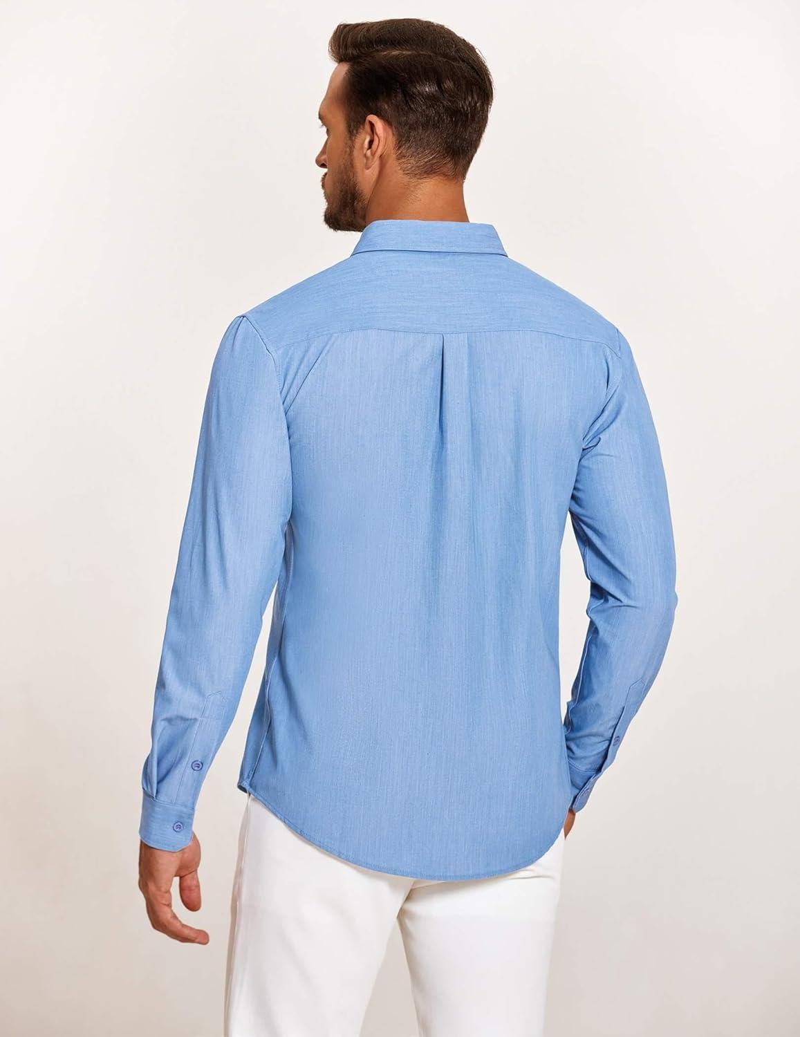 COOFANDY Mens Casual Button Down Shirt Untucked Long Sleeve Stretch Denim Dress Shirt(Clear Blue)