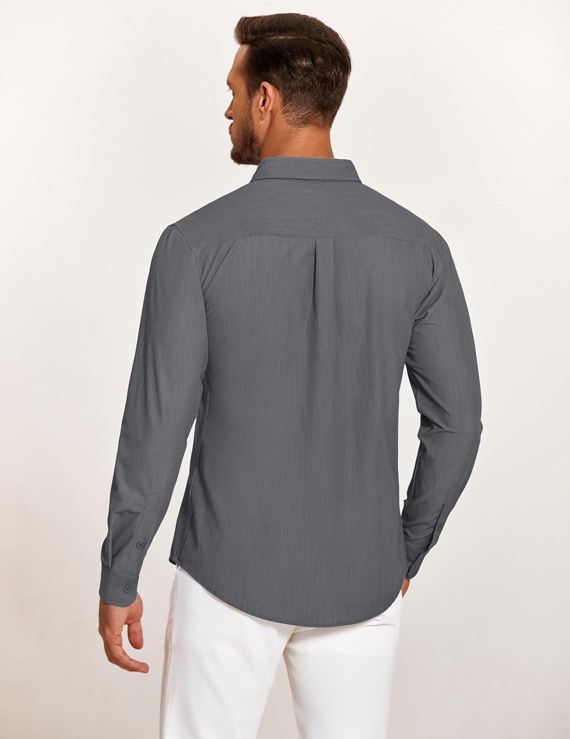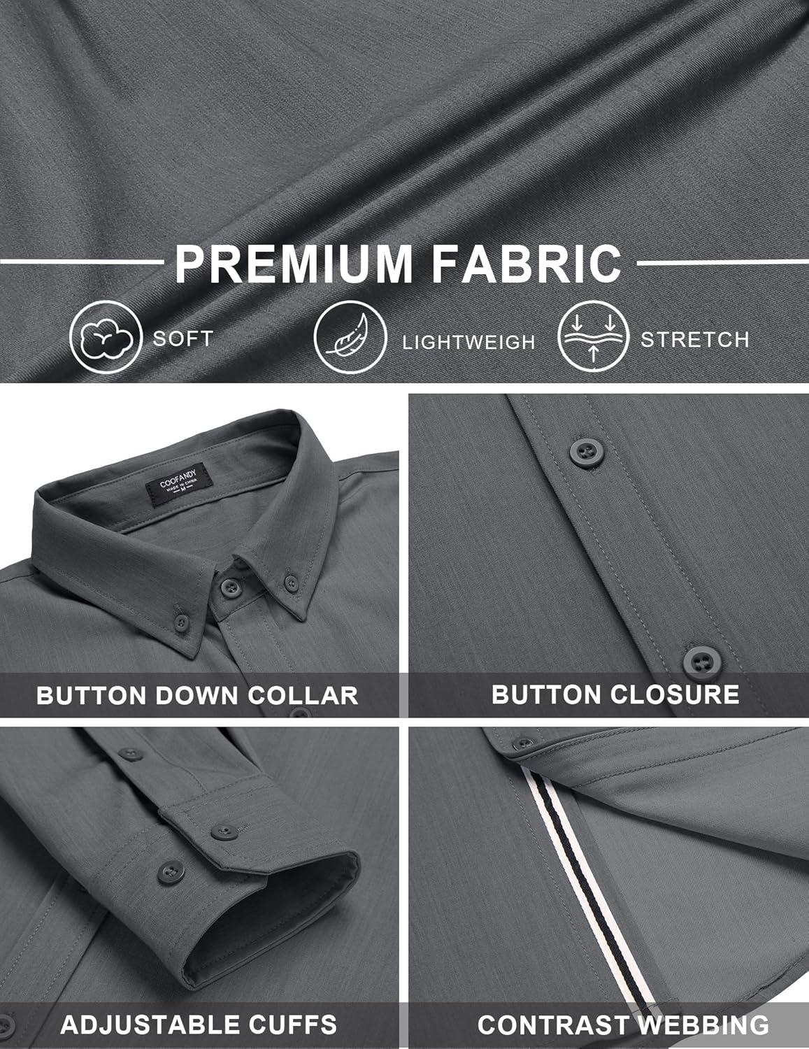 COOFANDY Mens Casual Button Down Shirt Untucked Long Sleeve Stretch Denim Dress Shirt(Dark Grey)
