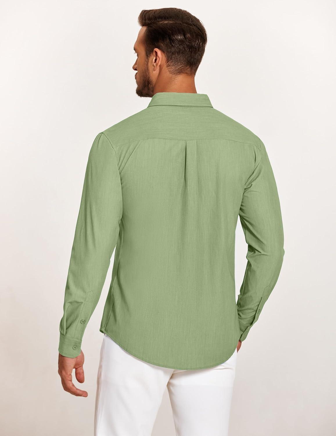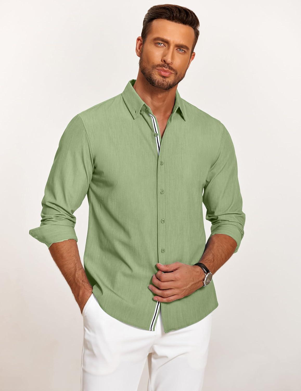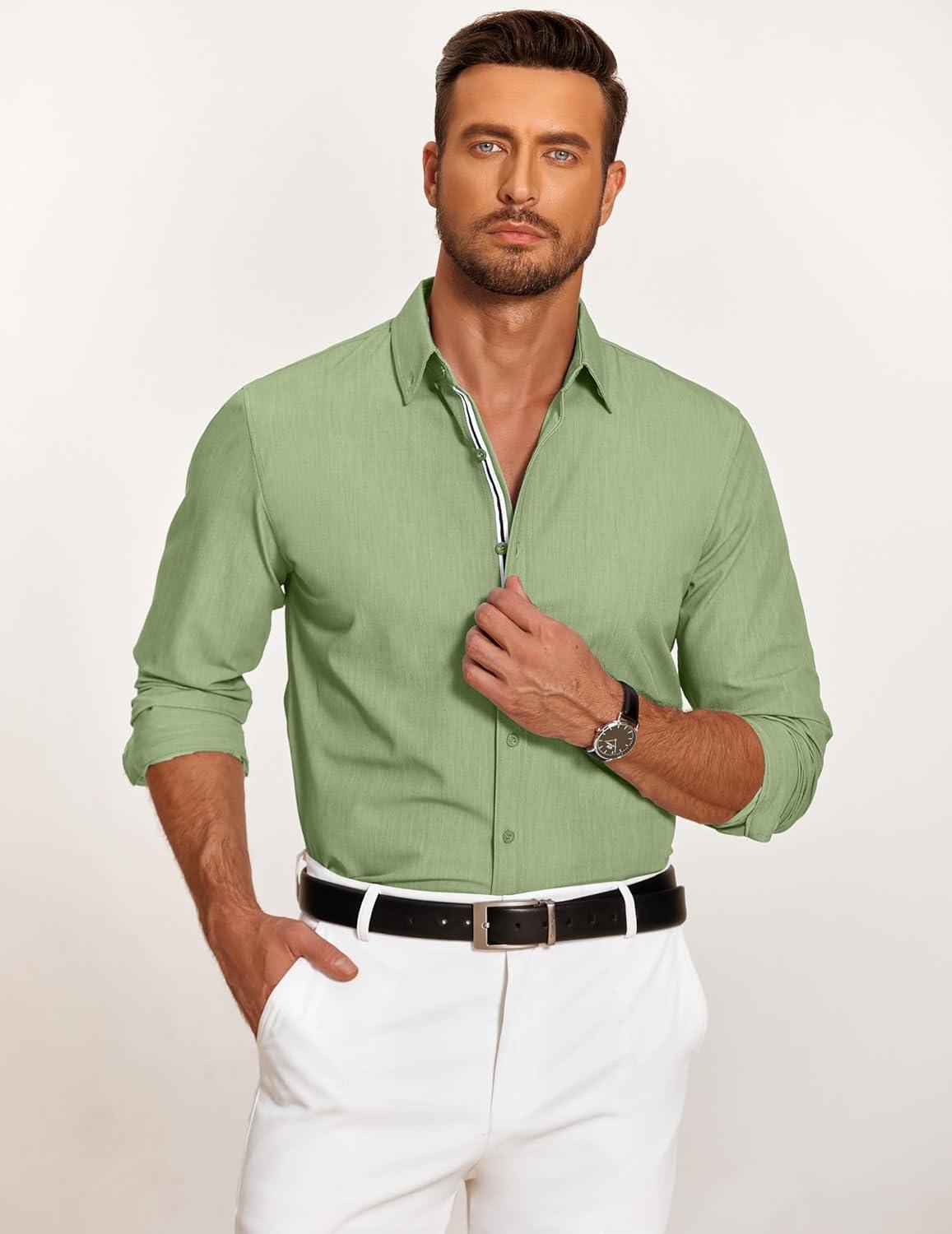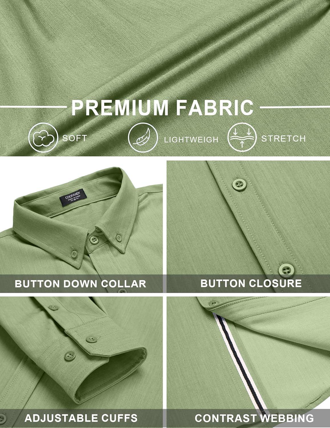 COOFANDY Mens Casual Button Down Shirt Untucked Long Sleeve Stretch Denim Dress Shirt(Light Green)