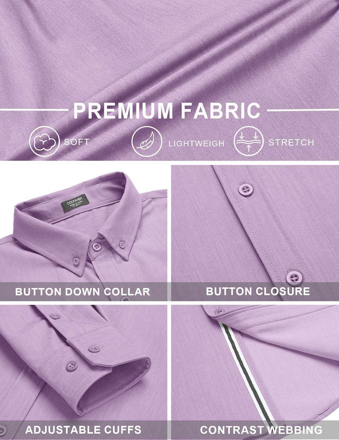 COOFANDY Mens Casual Button Down Shirt Untucked Long Sleeve Stretch Denim Dress Shirt(Light Purple)