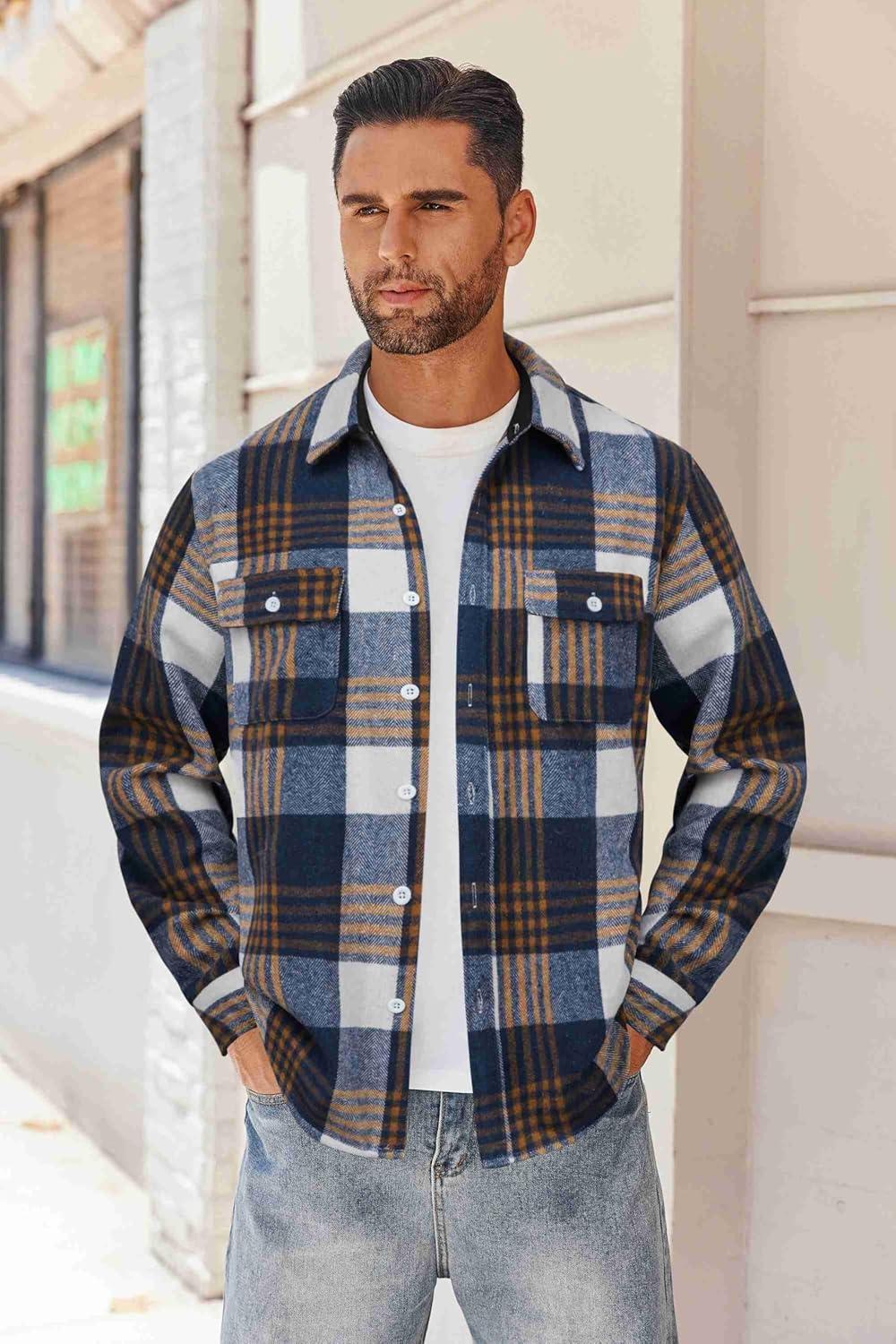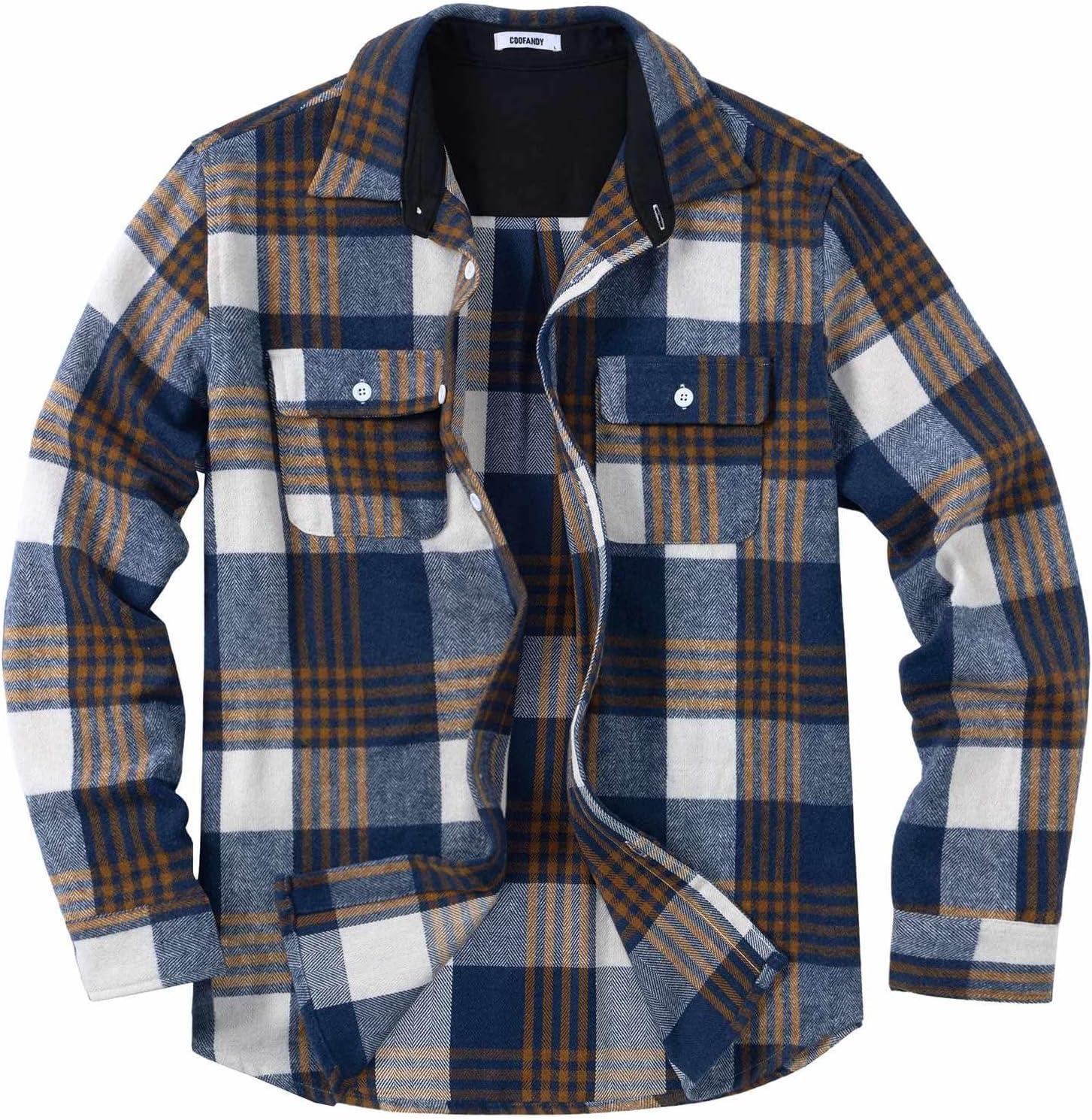 COOFANDY Men’s Flannel Shirts Long Sleeve Cotton Plaid Shirt Jacket Casual Button Down Shirt with Pockets(Blue Plaid)