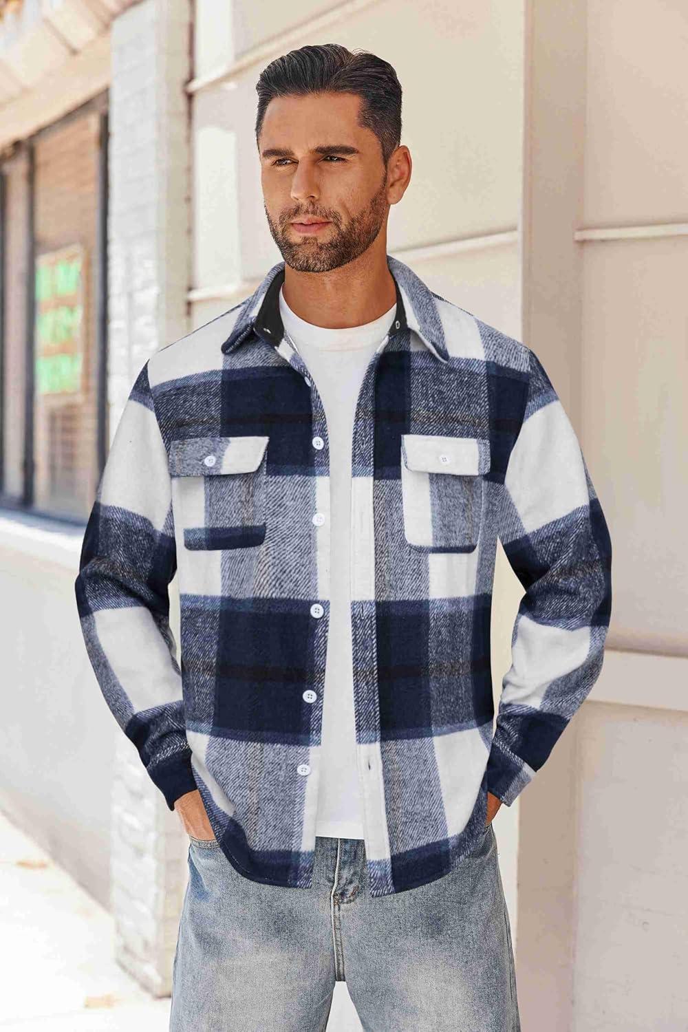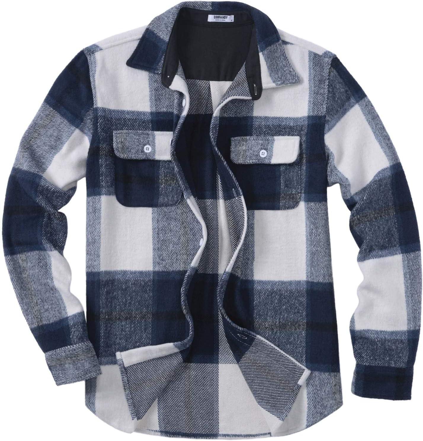 COOFANDY Men’s Flannel Shirts Long Sleeve Cotton Plaid Shirt Jacket Casual Button Down Shirt with Pockets(Blue White)