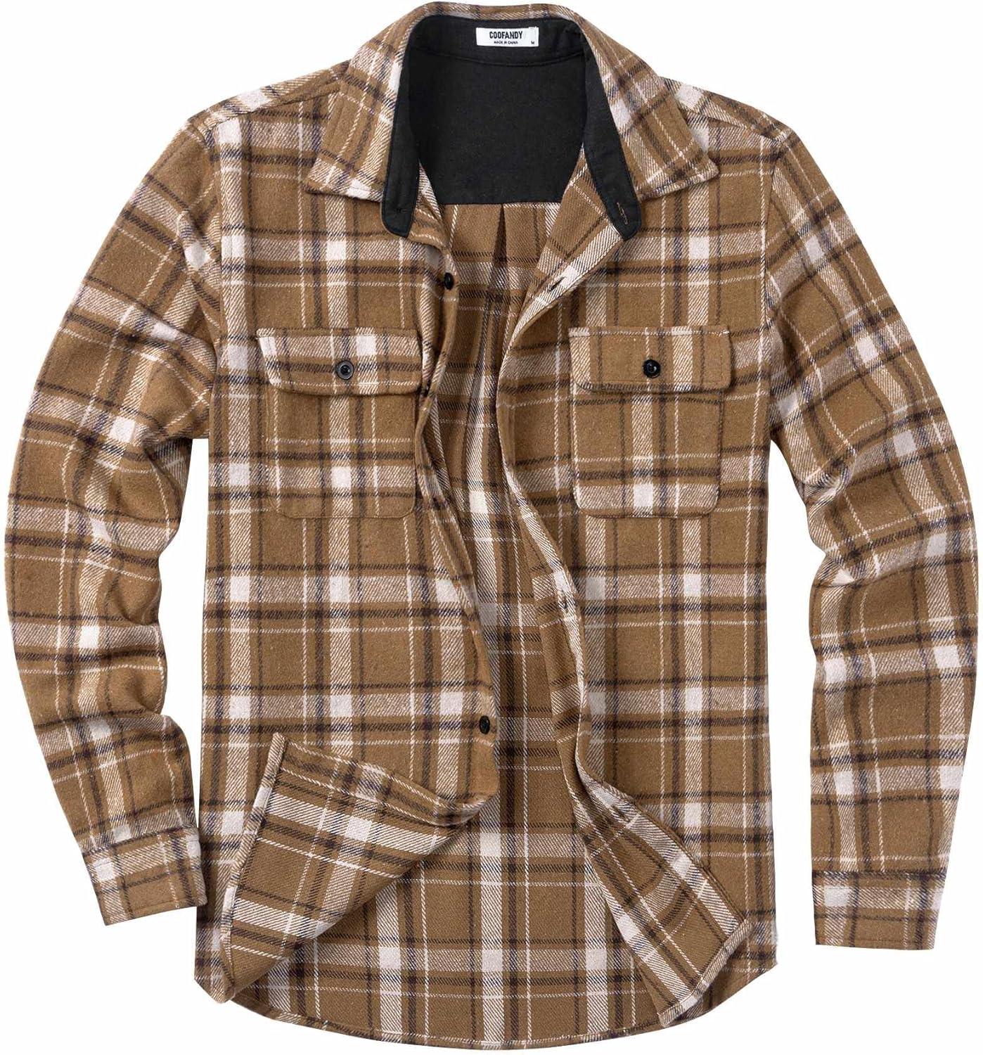 COOFANDY Men’s Flannel Shirts Long Sleeve Cotton Plaid Shirt Jacket Casual Button Down Shirt with Pockets(Brown White)