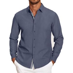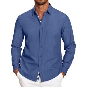COOFANDY Mens Casual Button Down Shirt Untucked Long Sleeve Stretch Denim Dress Shirt(Denim Blue)