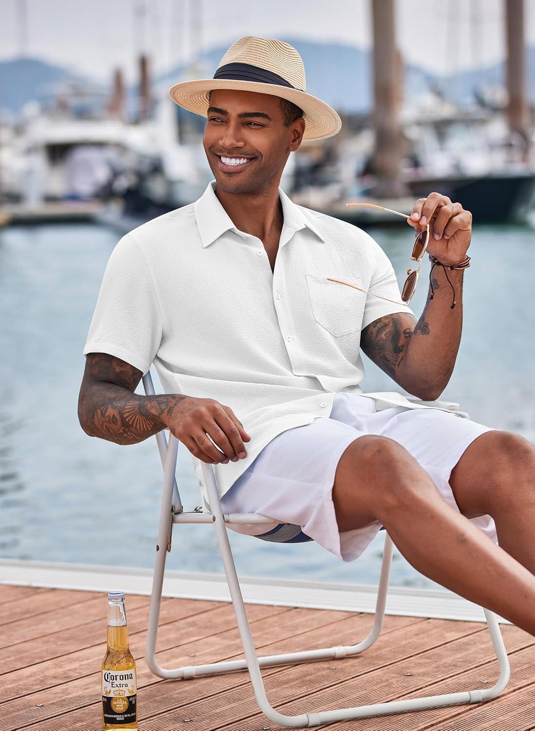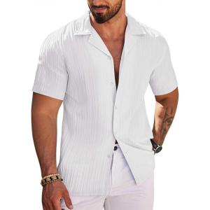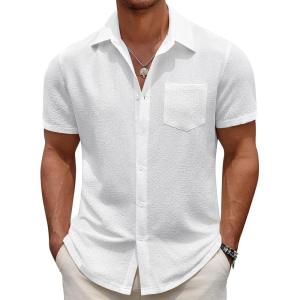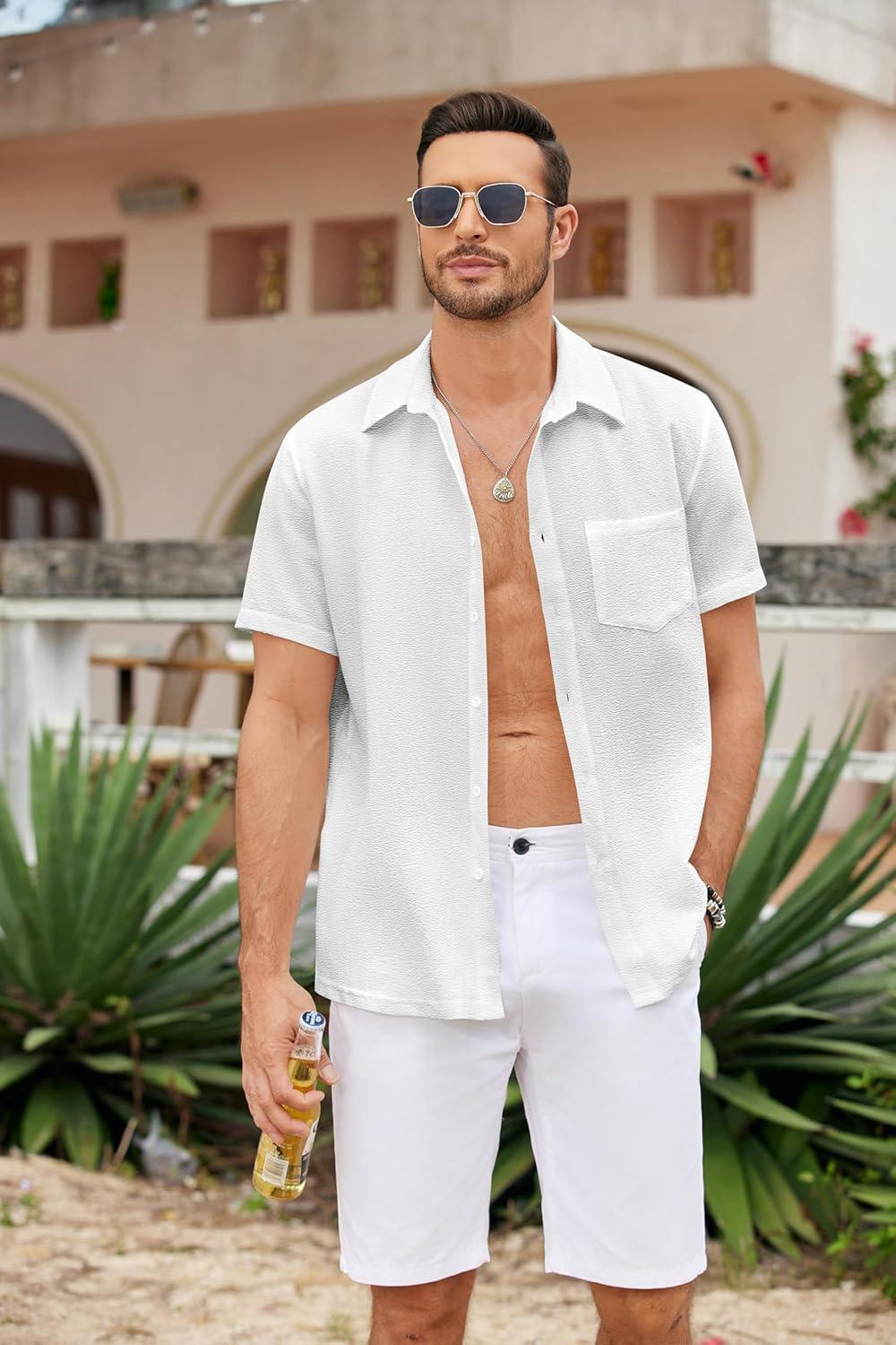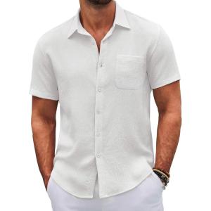 COOFANDY Mens Summer Button Down Shirts Short Sleeve Casual Summer Shirts Beach Wedding Shirts White