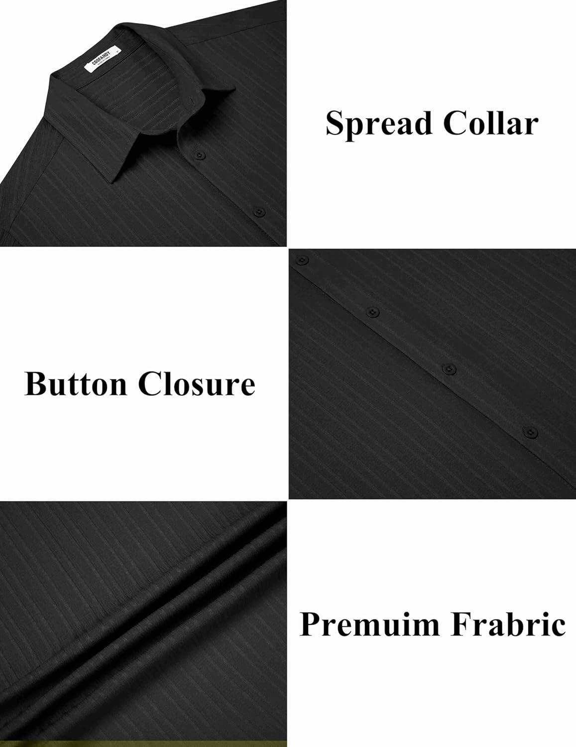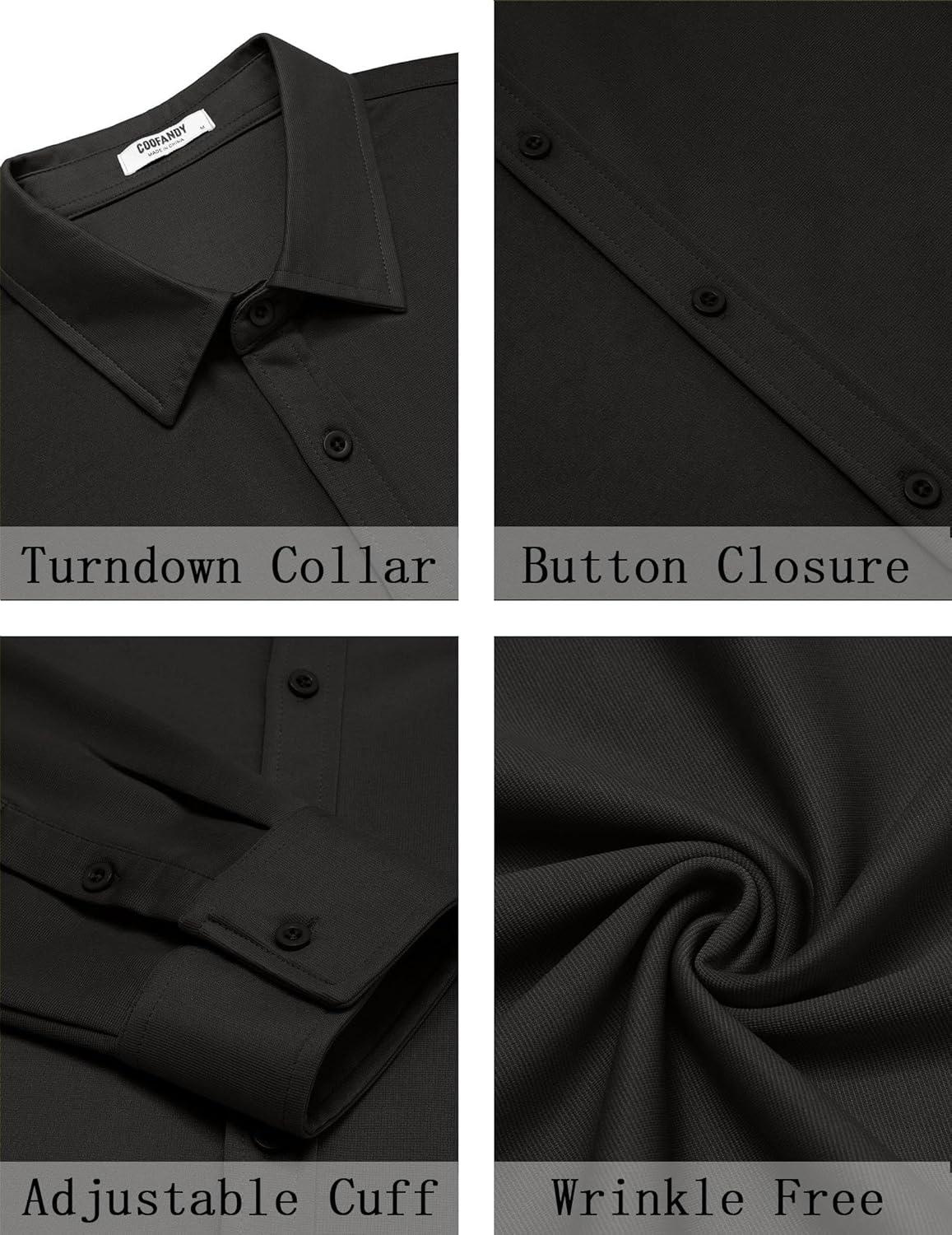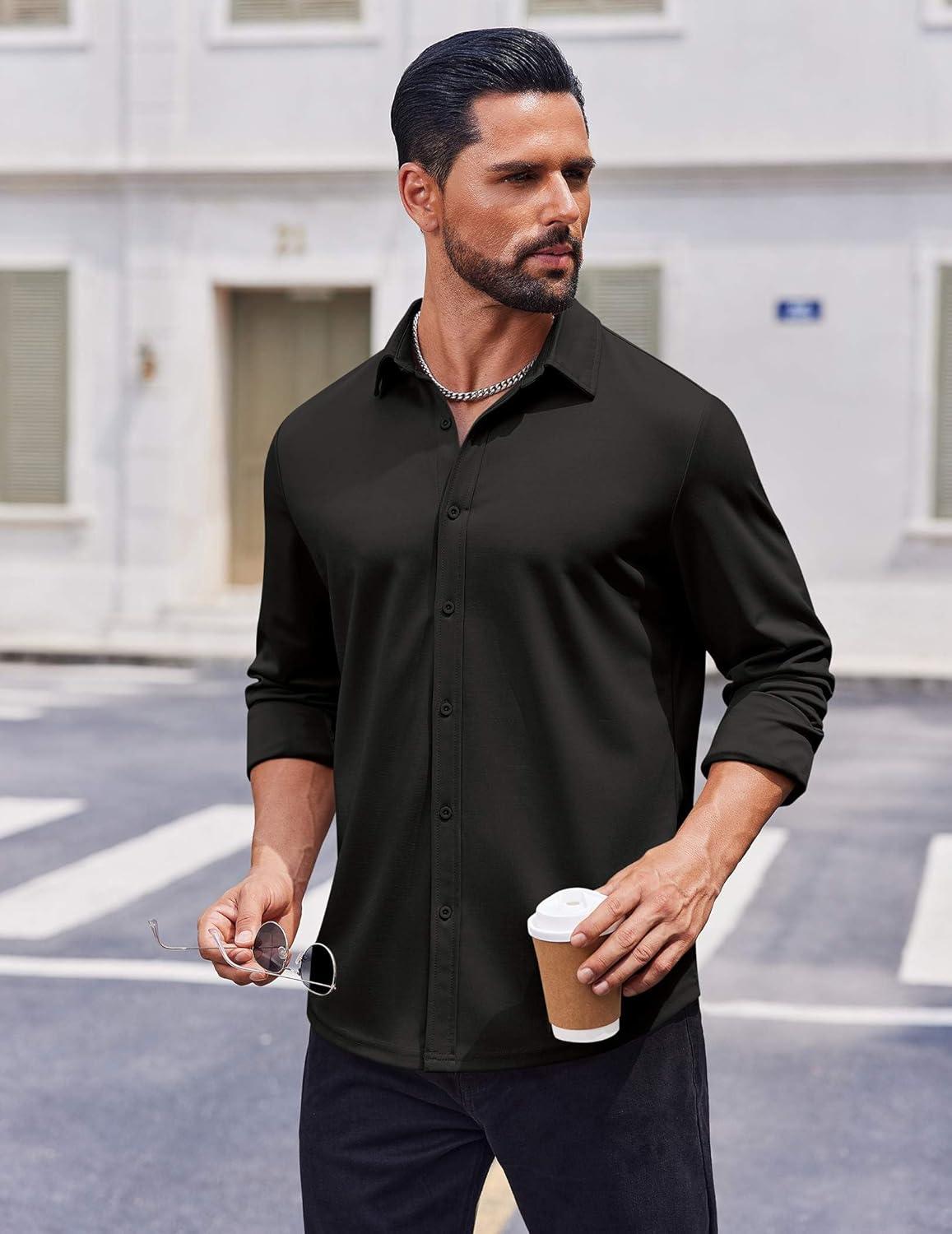 COOFANDY Men’s Casual Button Down Shirt Long Sleeve Wrinkle Free Shirts Loose fit Shirt Textured Stretch Shirts with Pocket(Black)