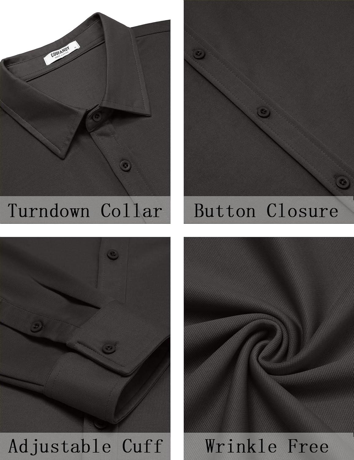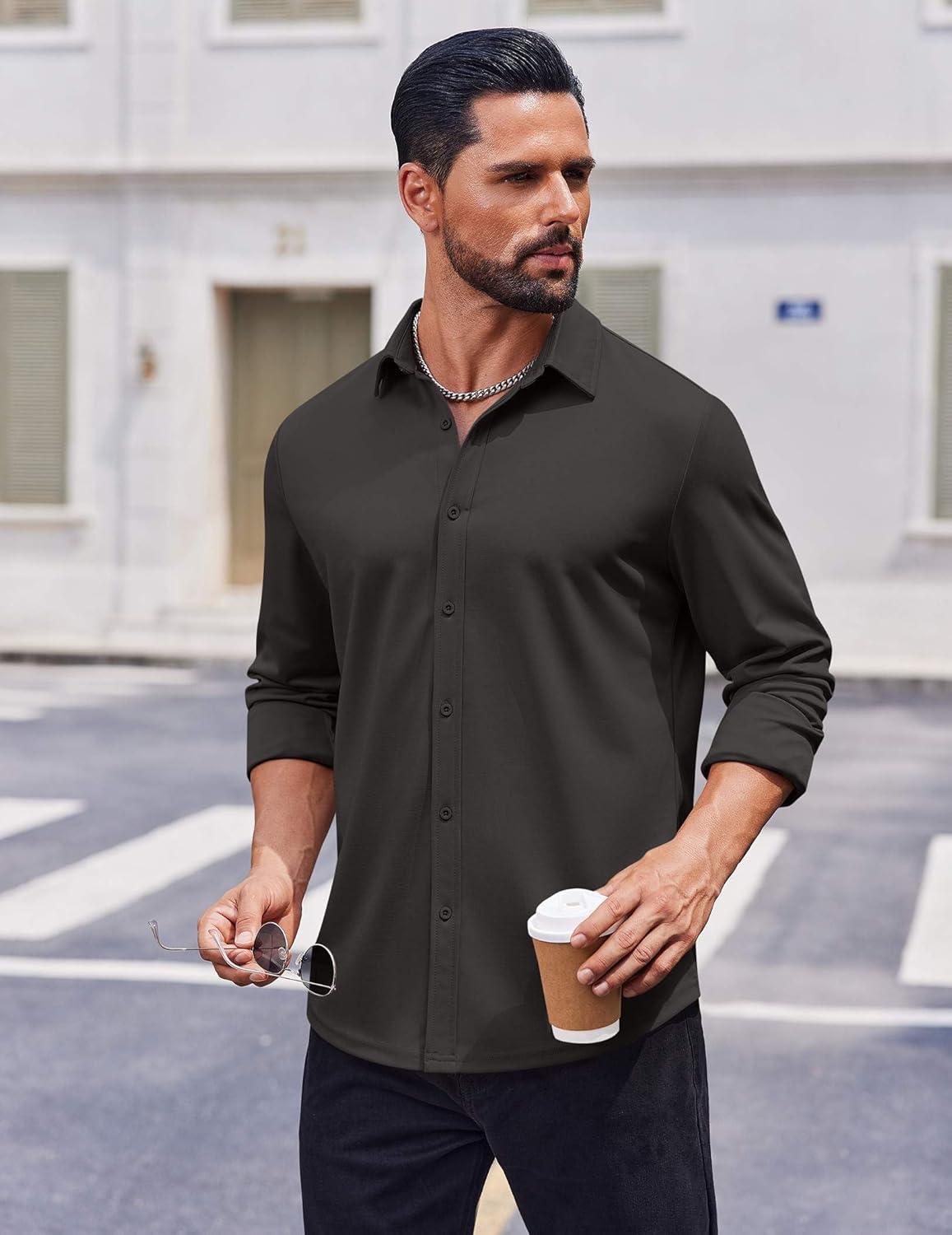 COOFANDY Men’s Casual Button Down Shirt Long Sleeve Untucked Shirt Stretch Denim Dress Shirt with Pockets(Dark Gray)