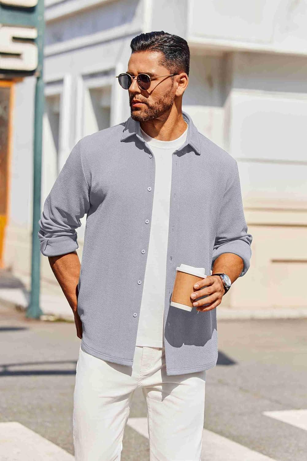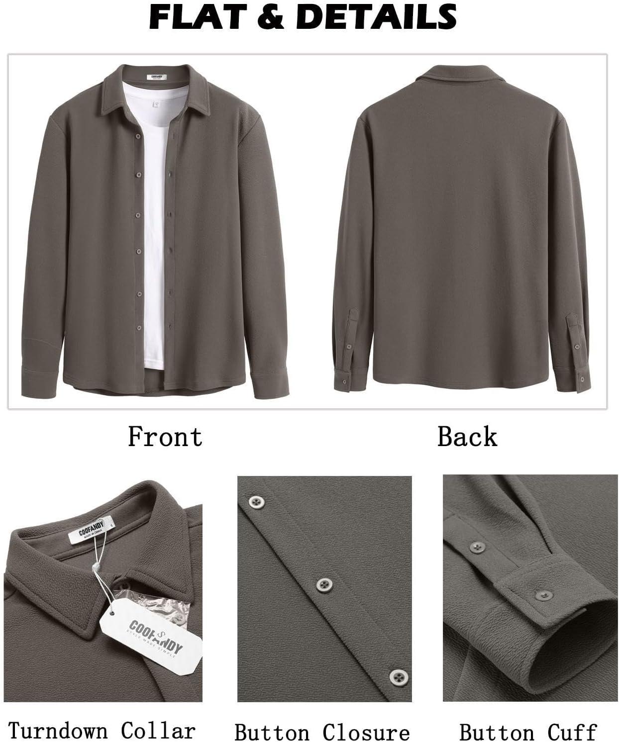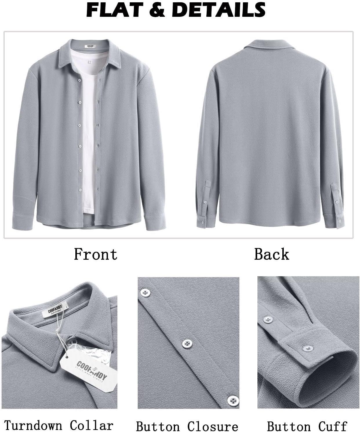 COOFANDY Men’s Casual Button Down Shirt Long Sleeve Untucked Shirt Stretch Denim Dress Shirt with Pockets(Grey)