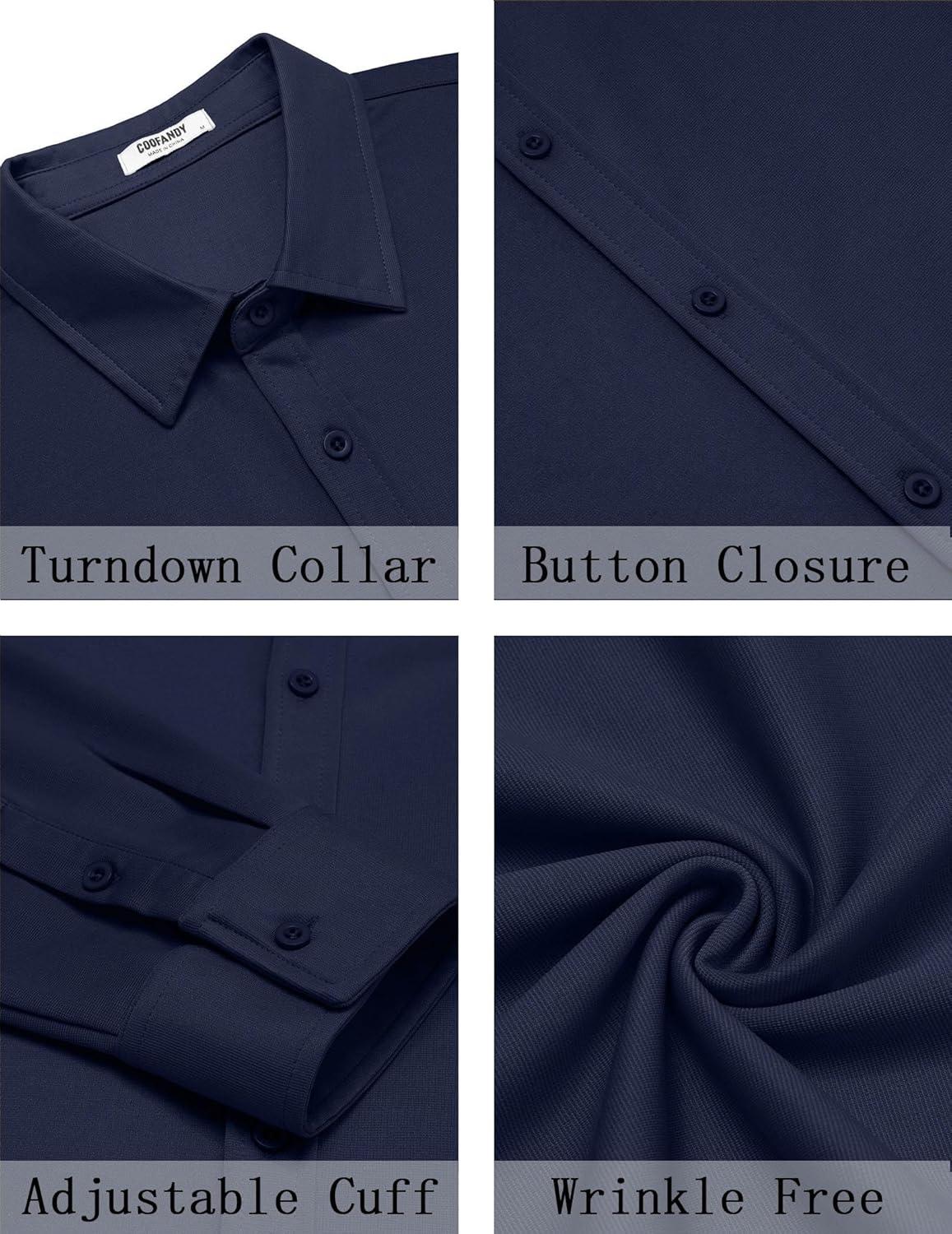 COOFANDY Mens’s Long Sleeve Button Up Shirts Athletic Fitted Dress Shirts Silm Fit(Navy Blue)