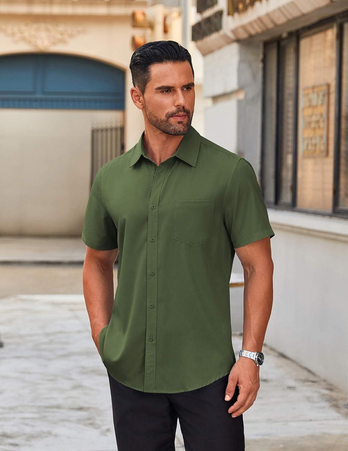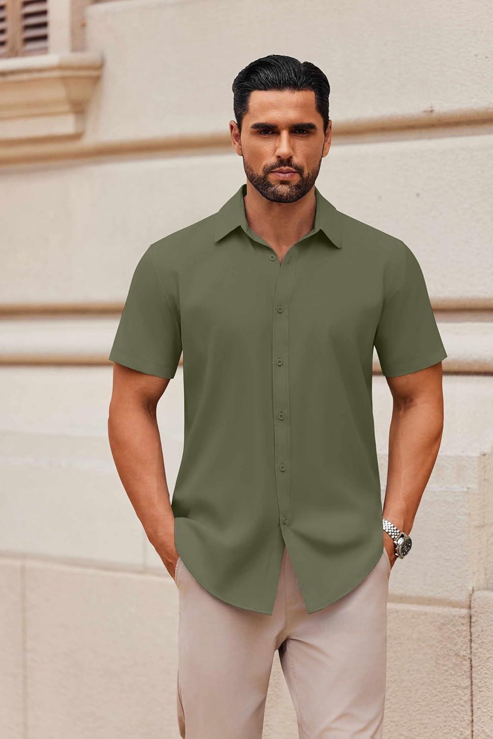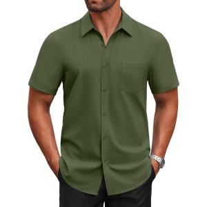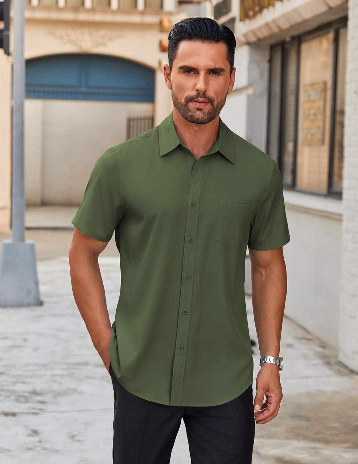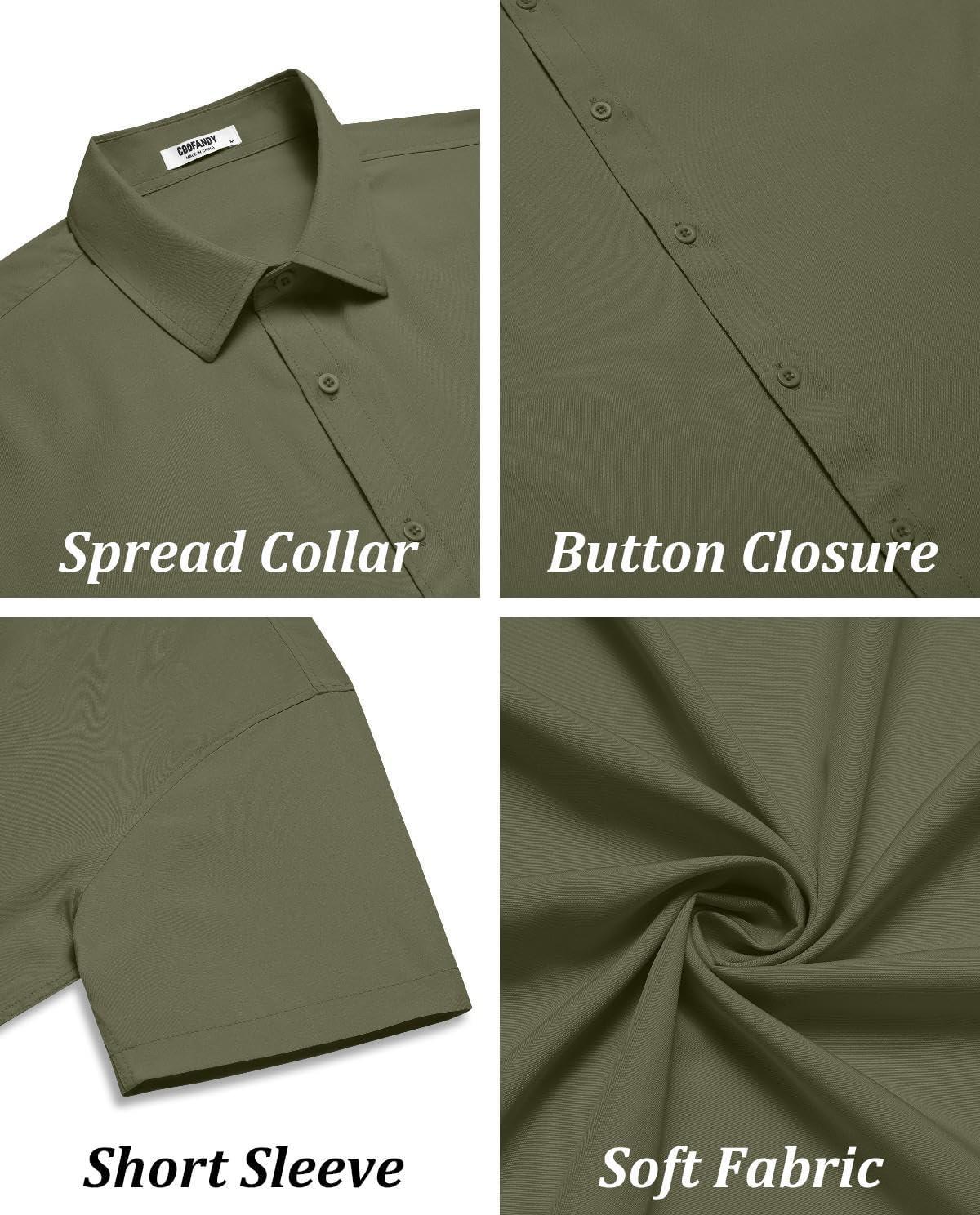 COOFANDY Mens Short Sleeve Button Down Shirt Lightweight Wrinkle Free Untucked Dress Shirts(Army Green)