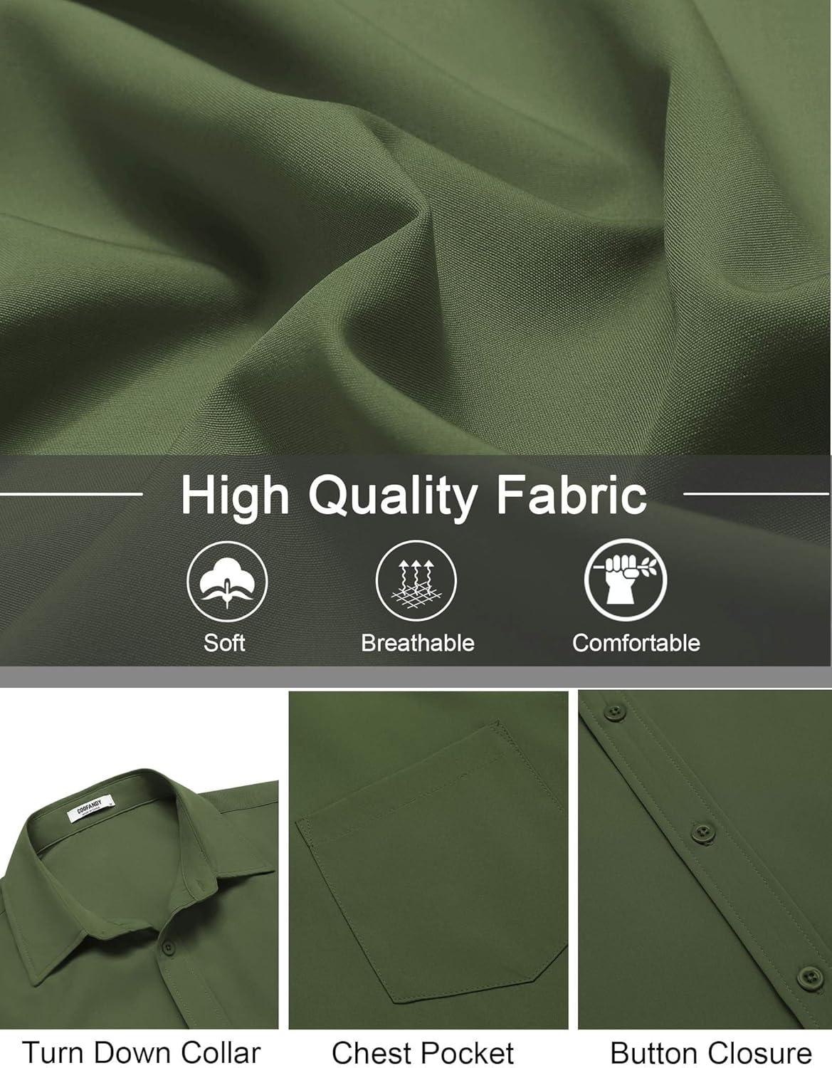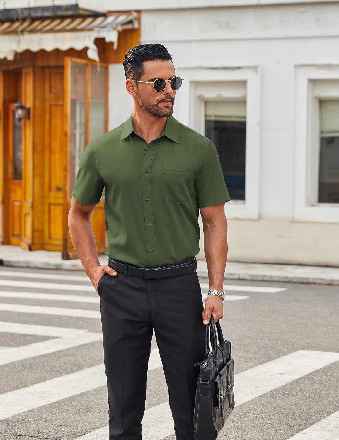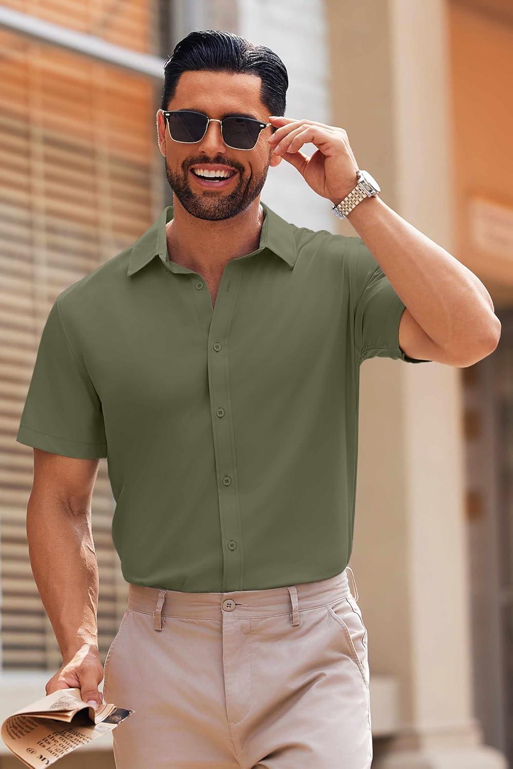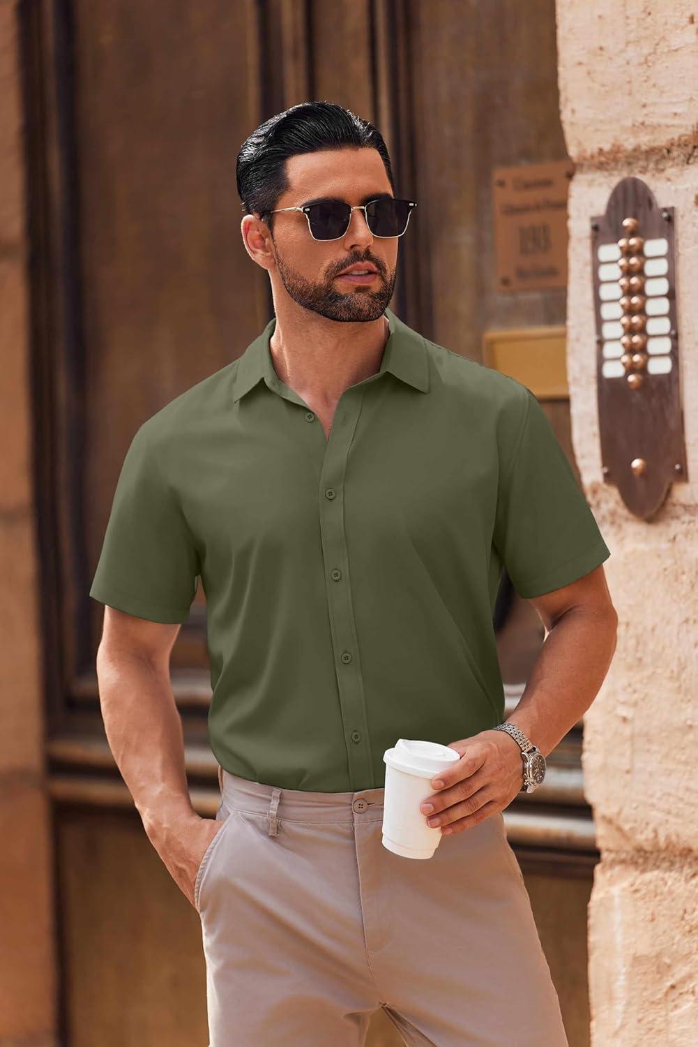 COOFANDY Mens Short Sleeve Button Down Shirt Lightweight Wrinkle Free Untucked Dress Shirts(Army Green)