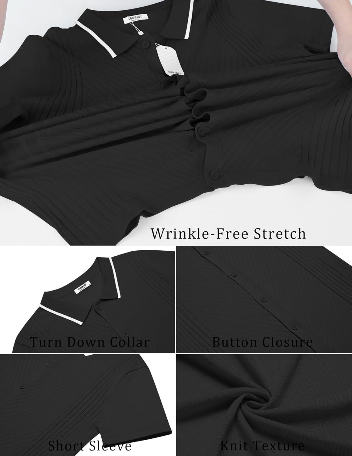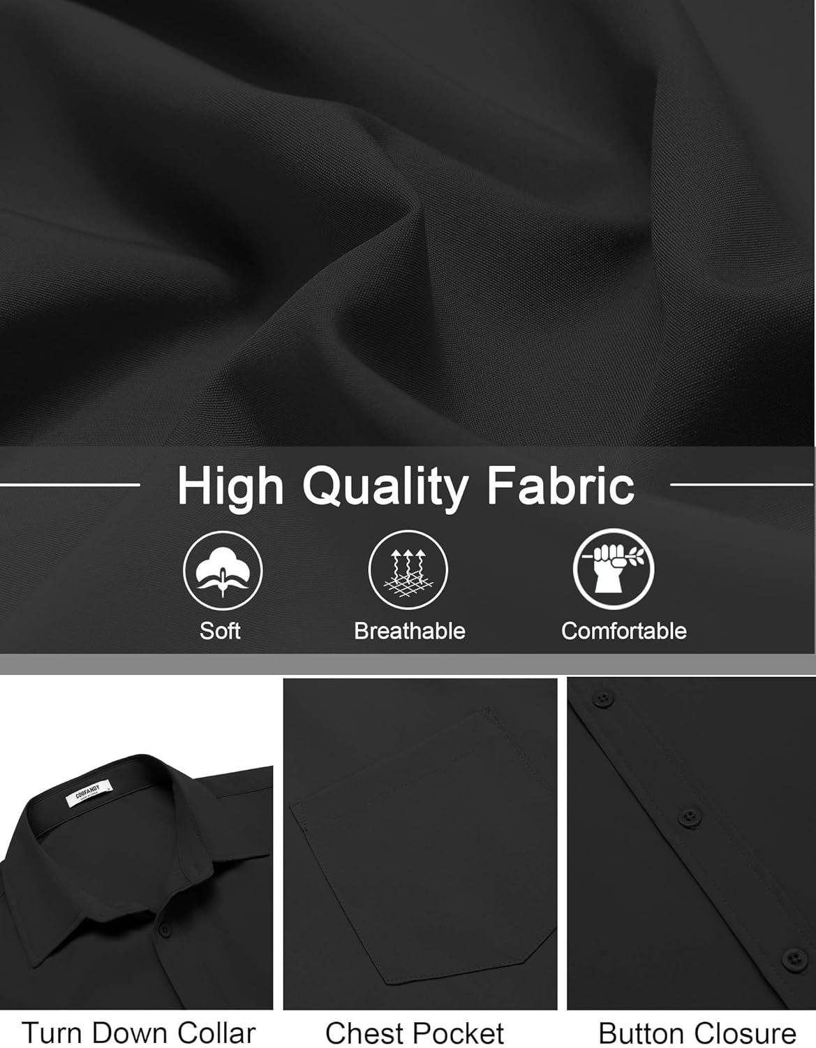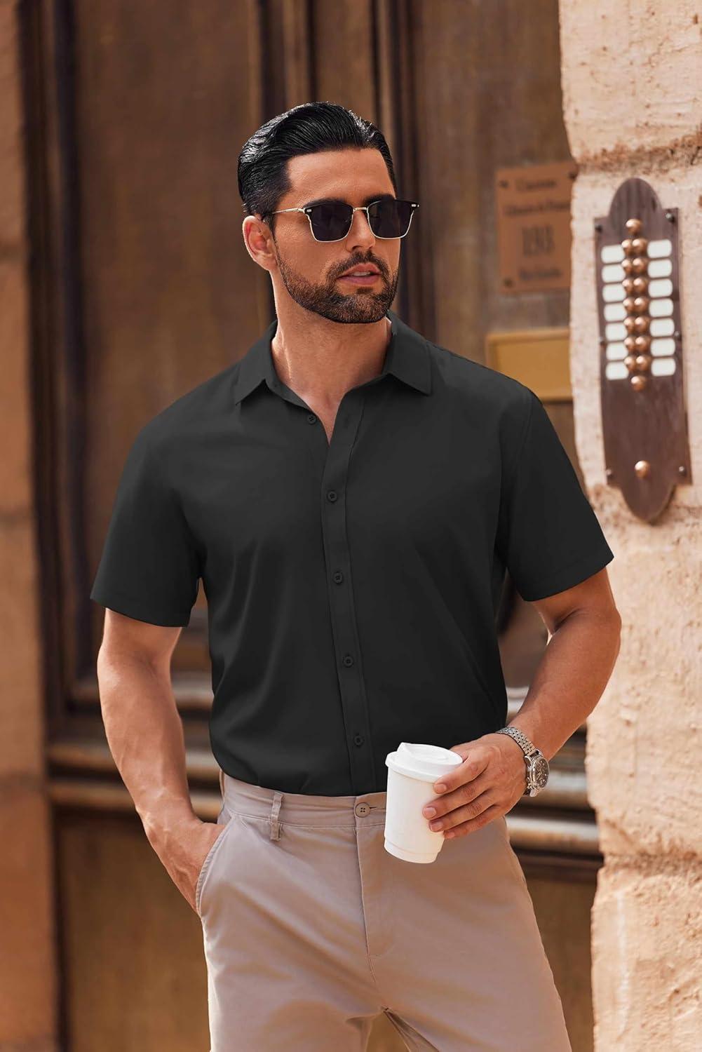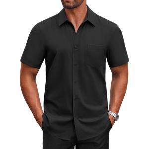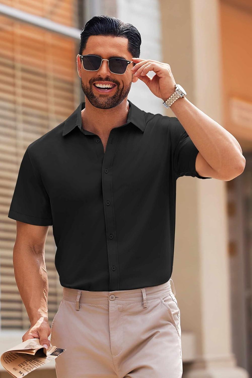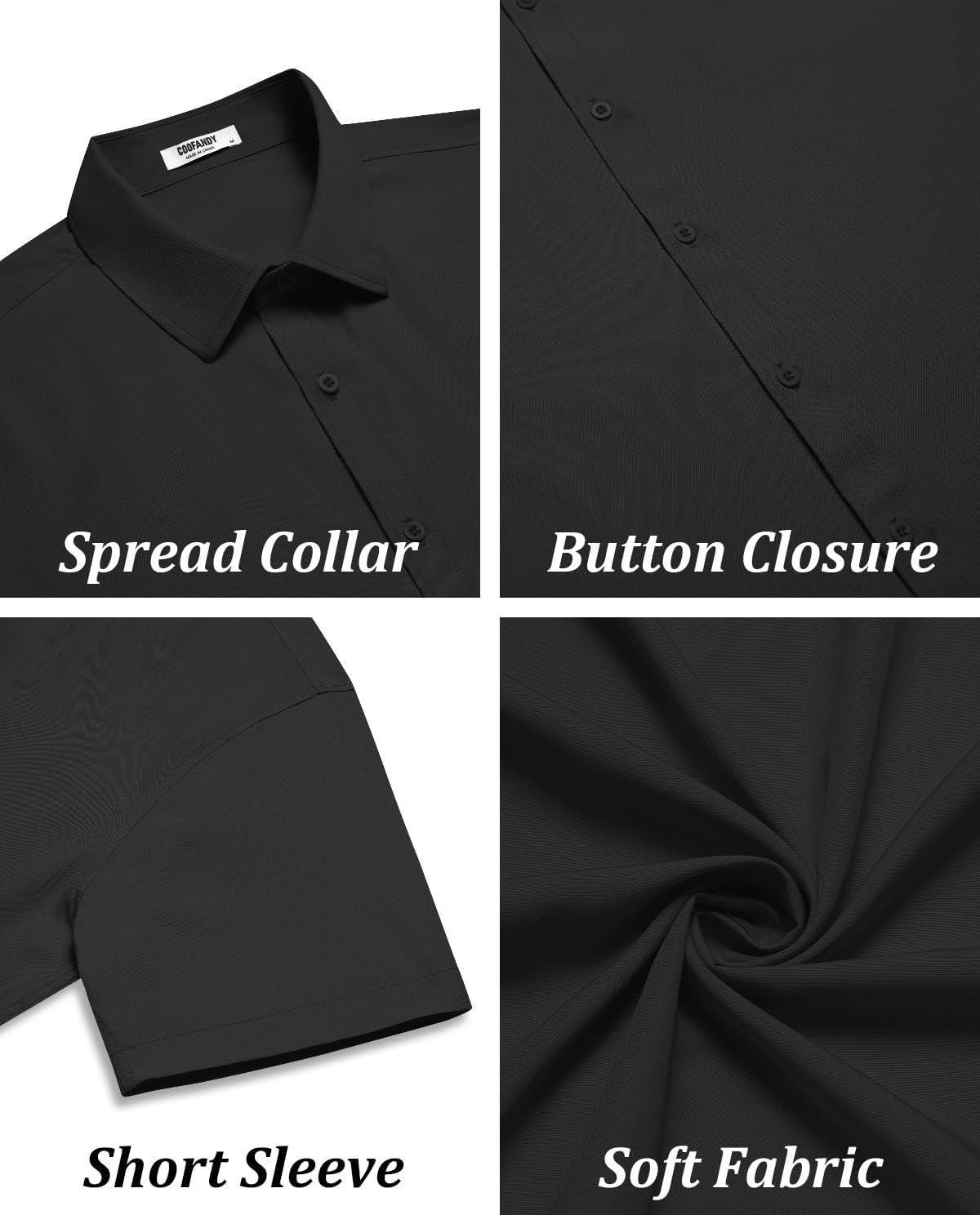 COOFANDY Mens Short Sleeve Button Down Shirt Lightweight Wrinkle Free Untucked Dress Shirts(Black)