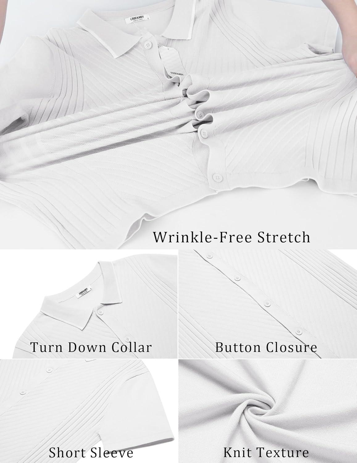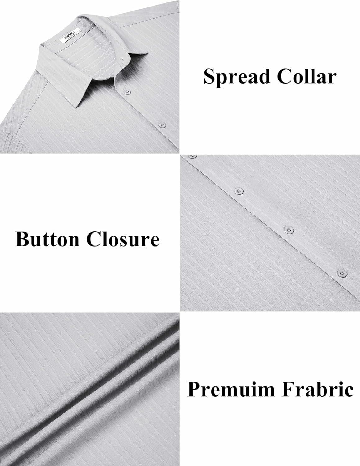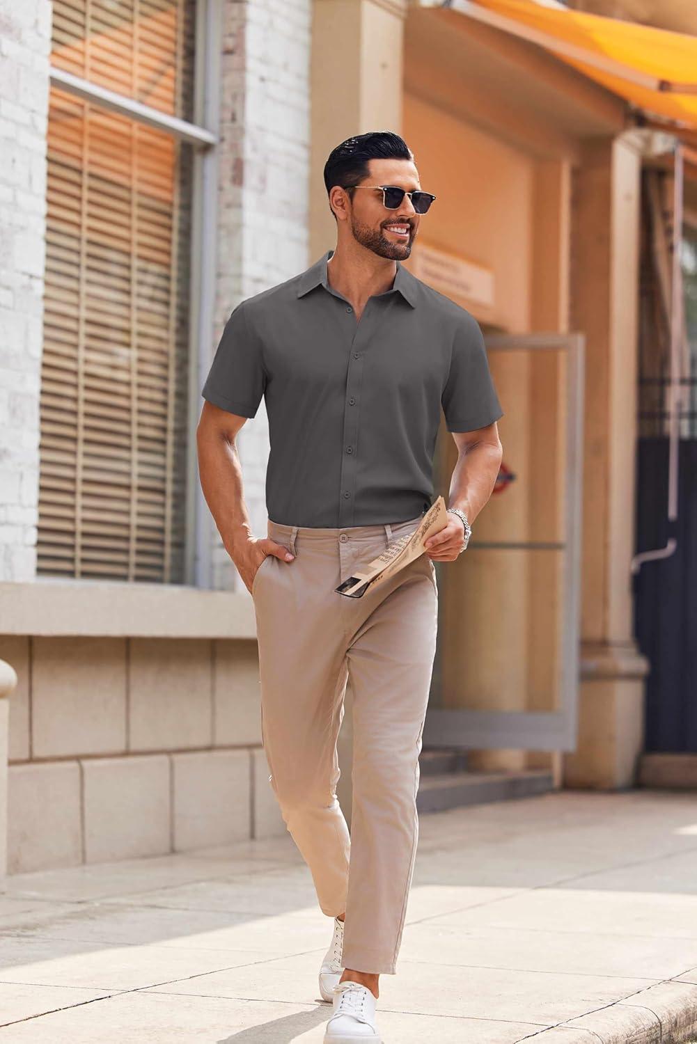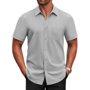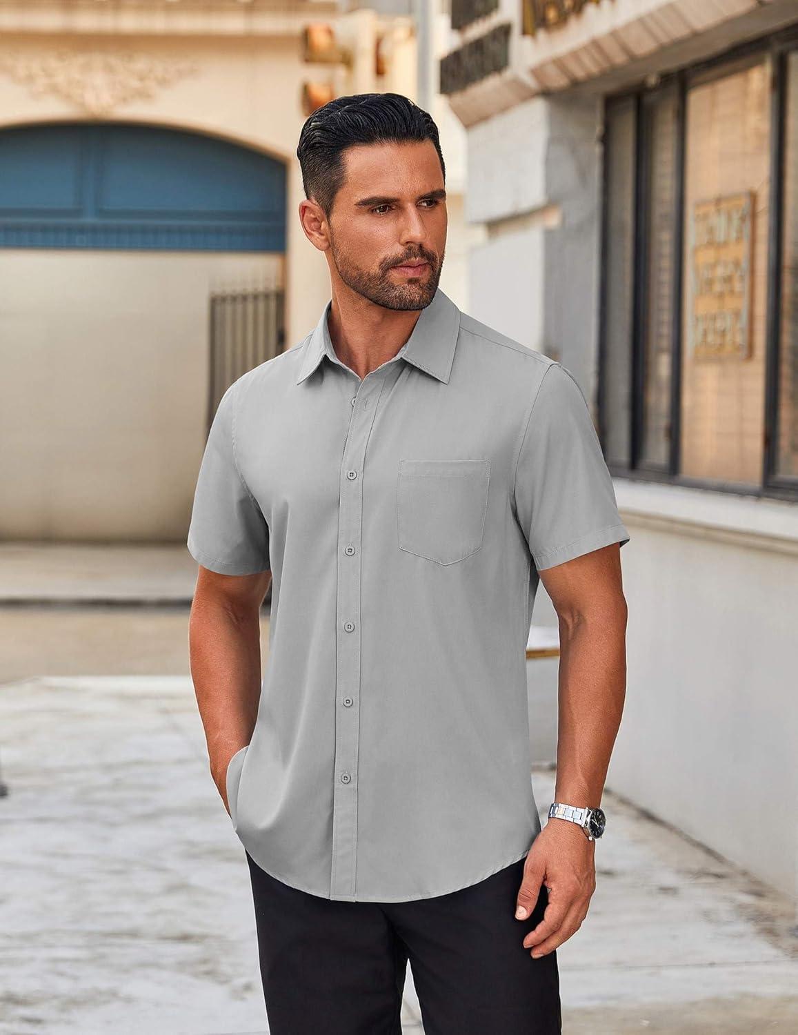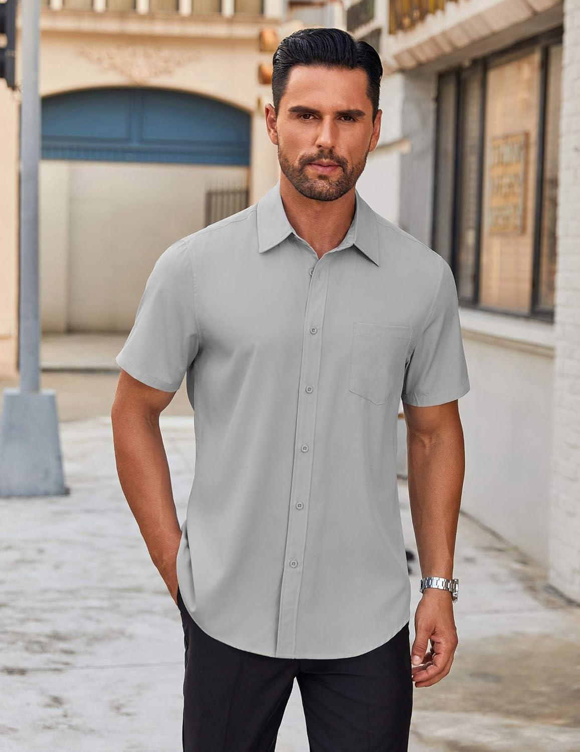 COOFANDY Mens Short Sleeve Button Down Shirt Lightweight Wrinkle Free Untucked Dress Shirts(Light Grey)