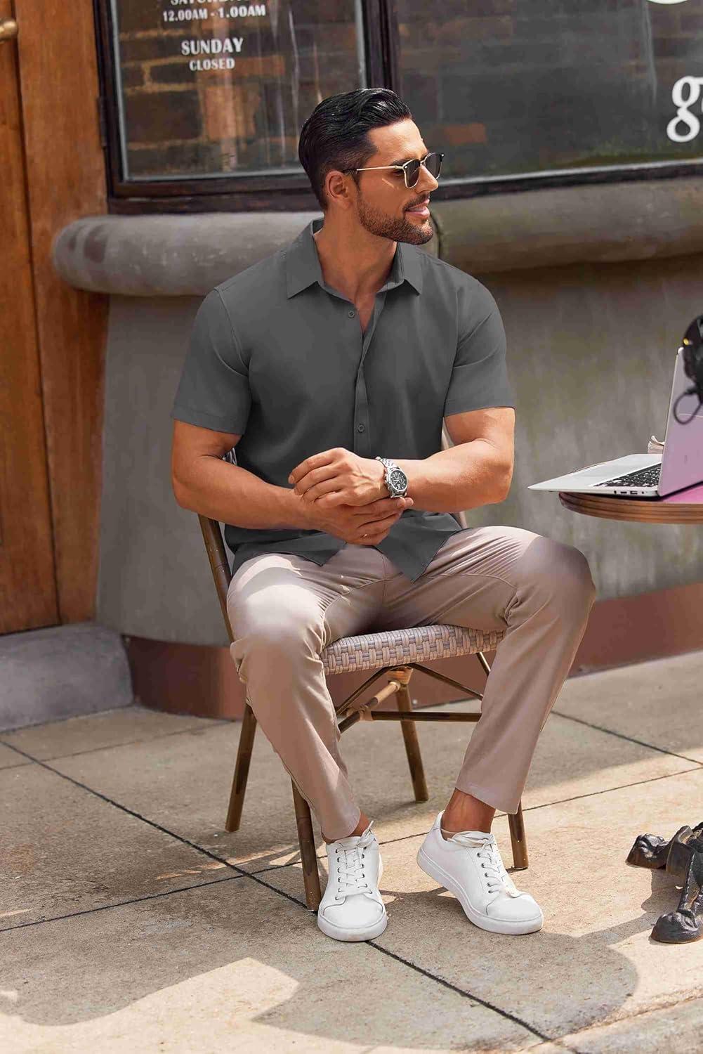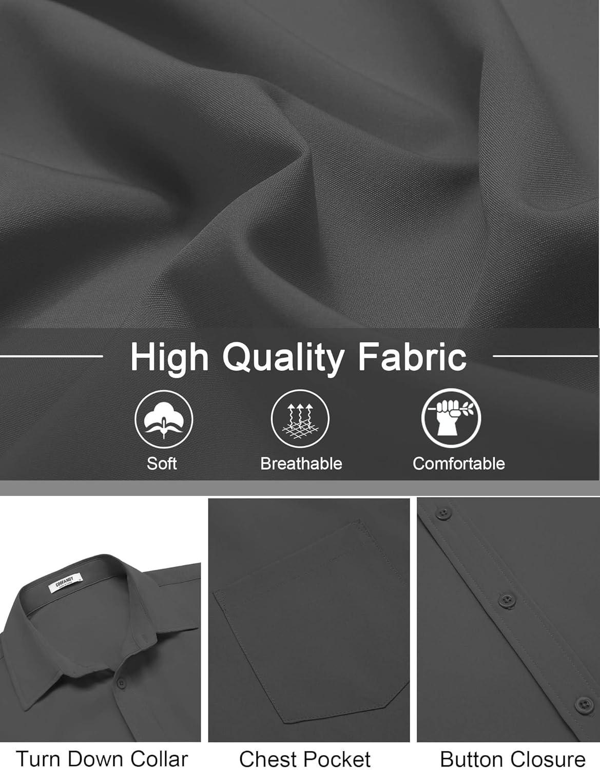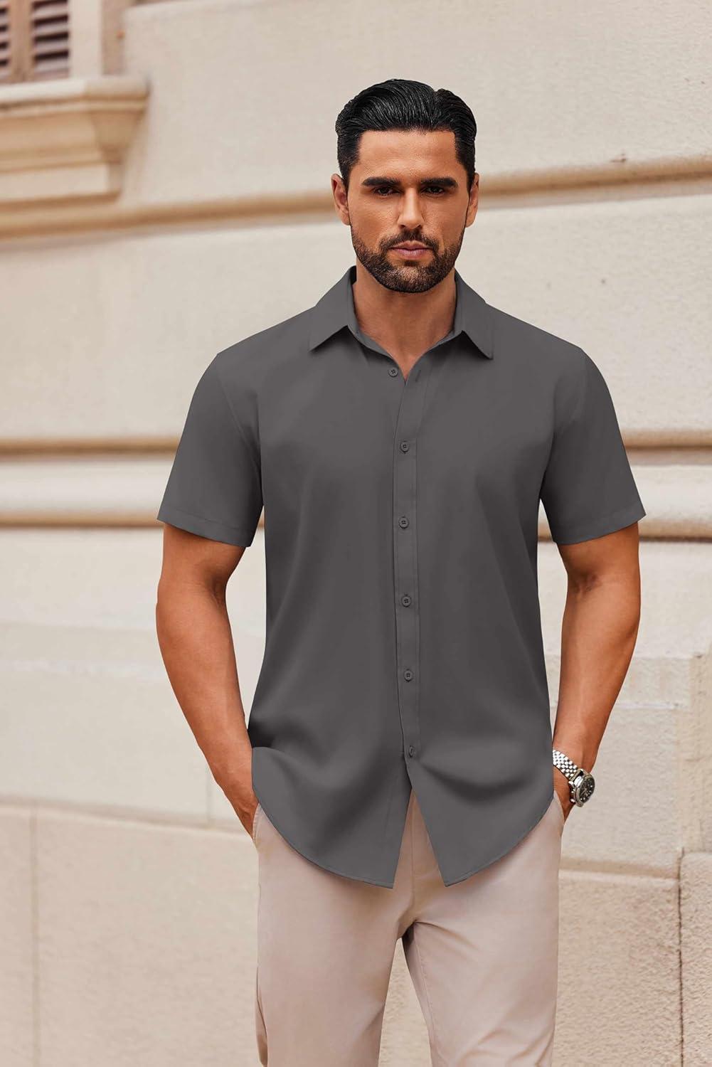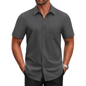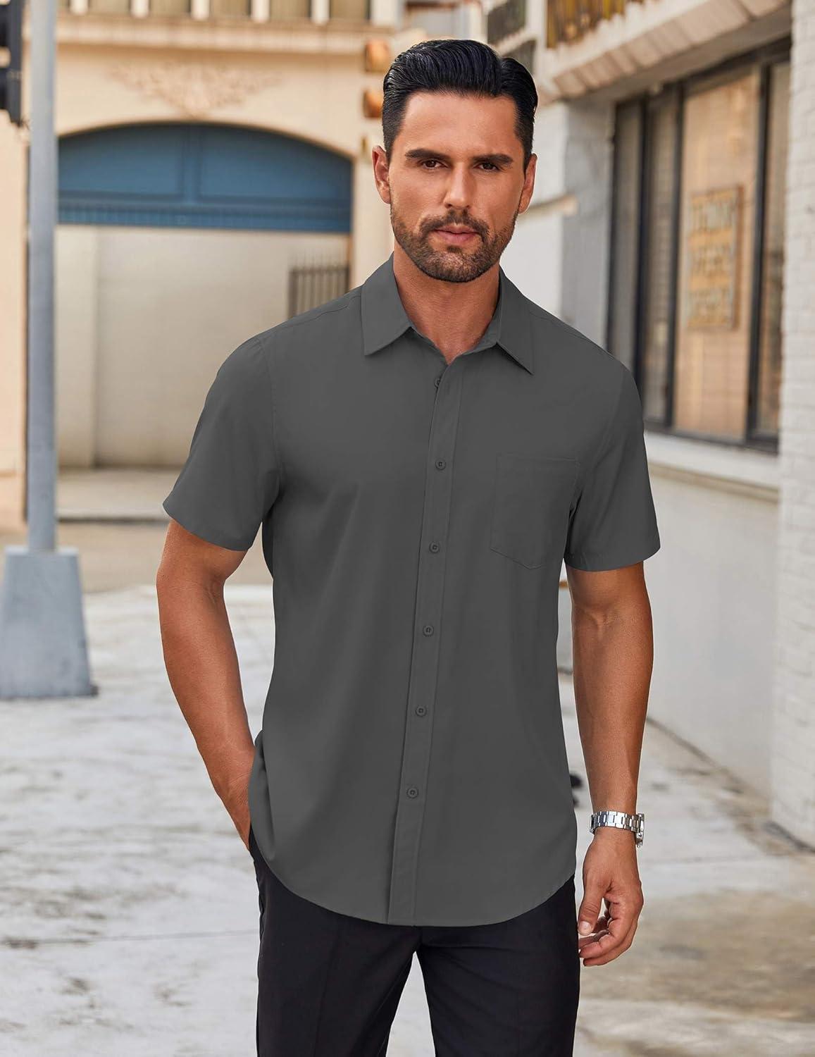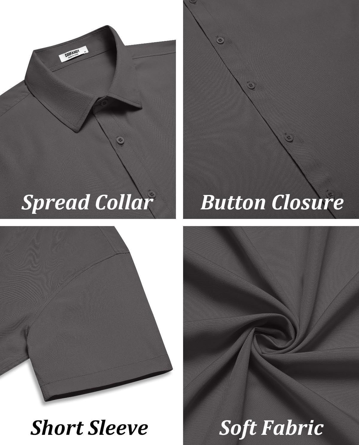 COOFANDY Mens Short Sleeve Button Down Shirt Lightweight Wrinkle Free Untucked Dress Shirts(Dark Grey)