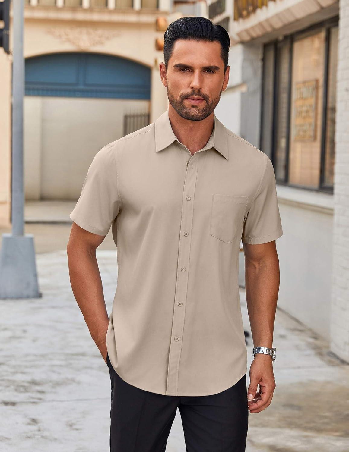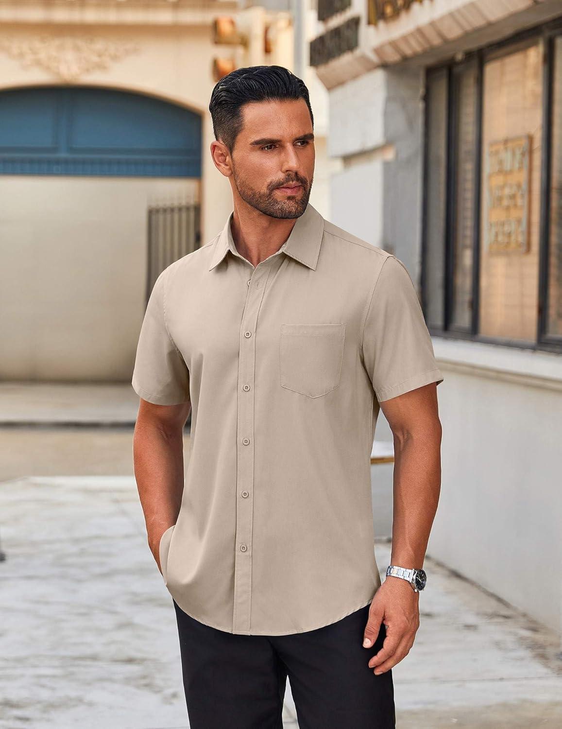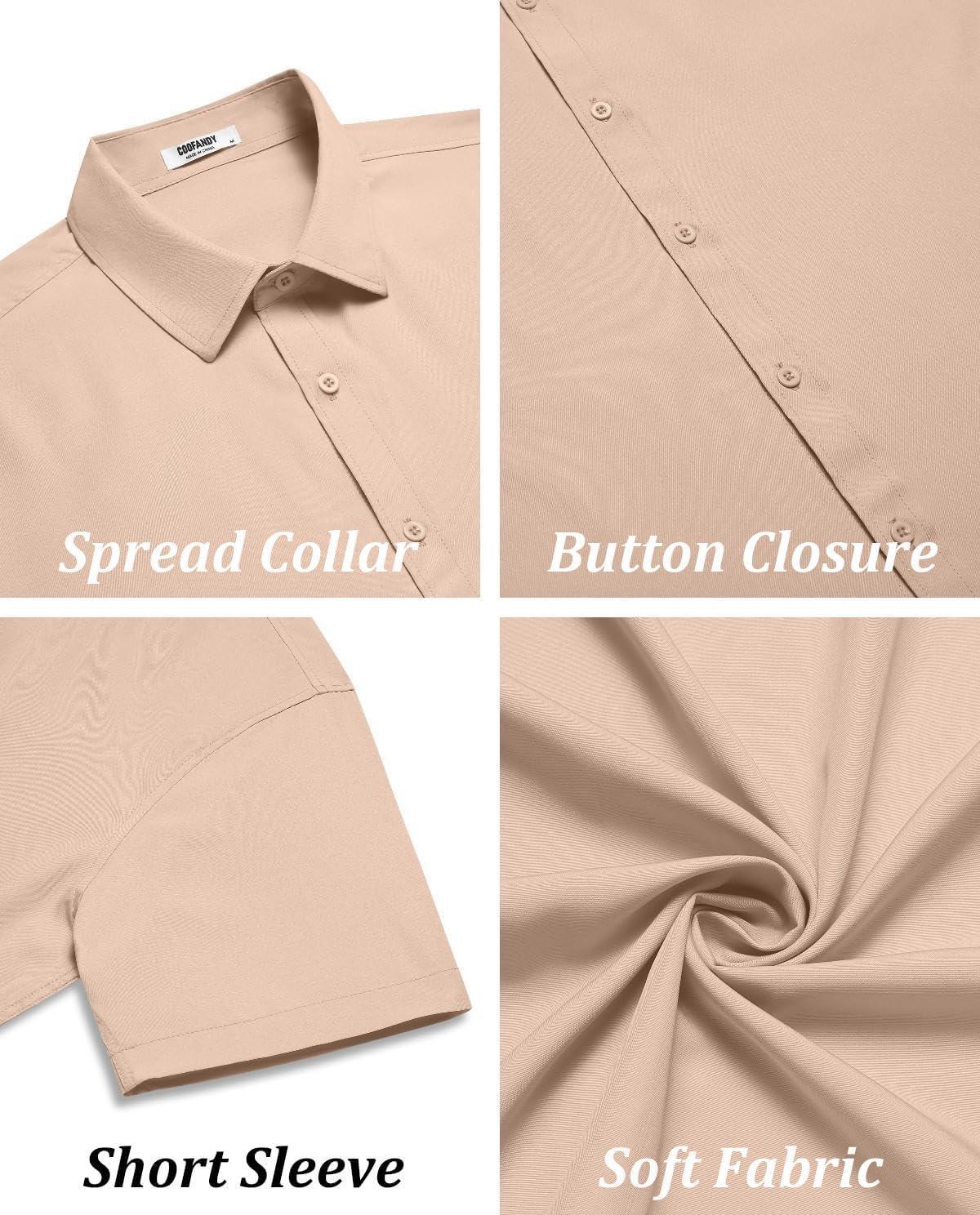 COOFANDY Mens Casual Short Sleeve Button Down Shirts Summer Untucked Wrinkle Free Shirts(Khaki)