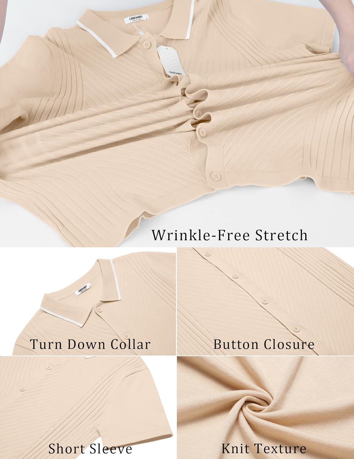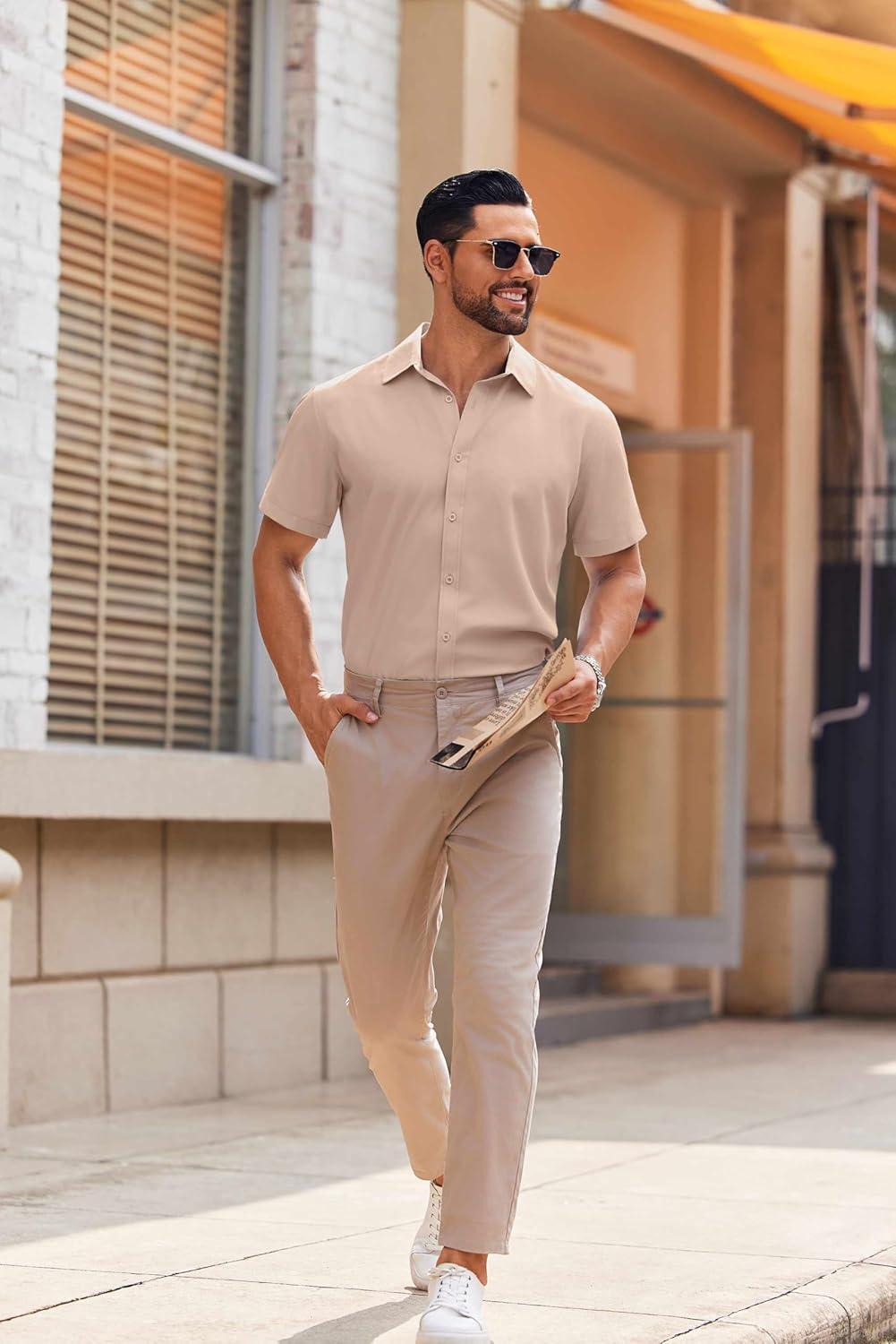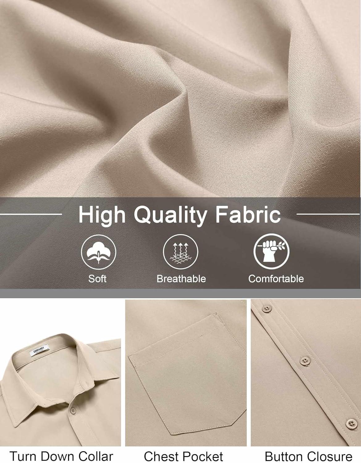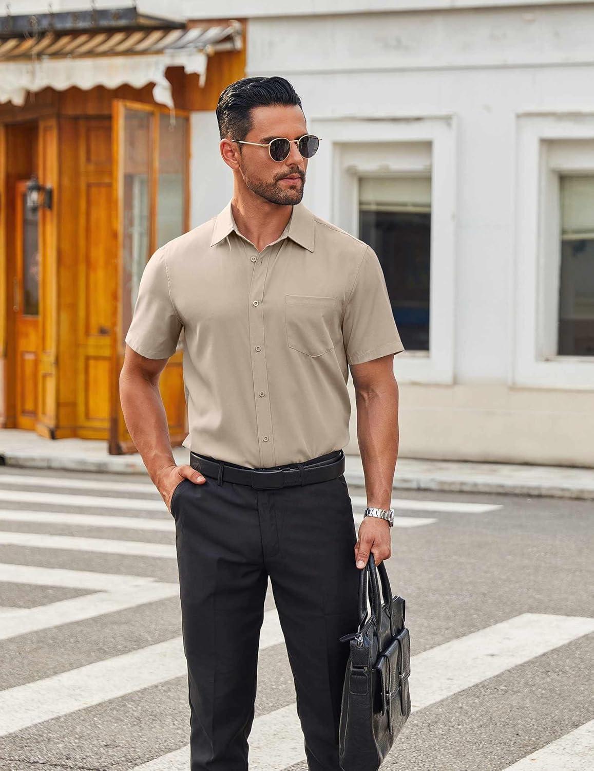COOFANDY Mens Casual Short Sleeve Button Down Shirts Summer Untucked Wrinkle Free Shirts(Khaki)