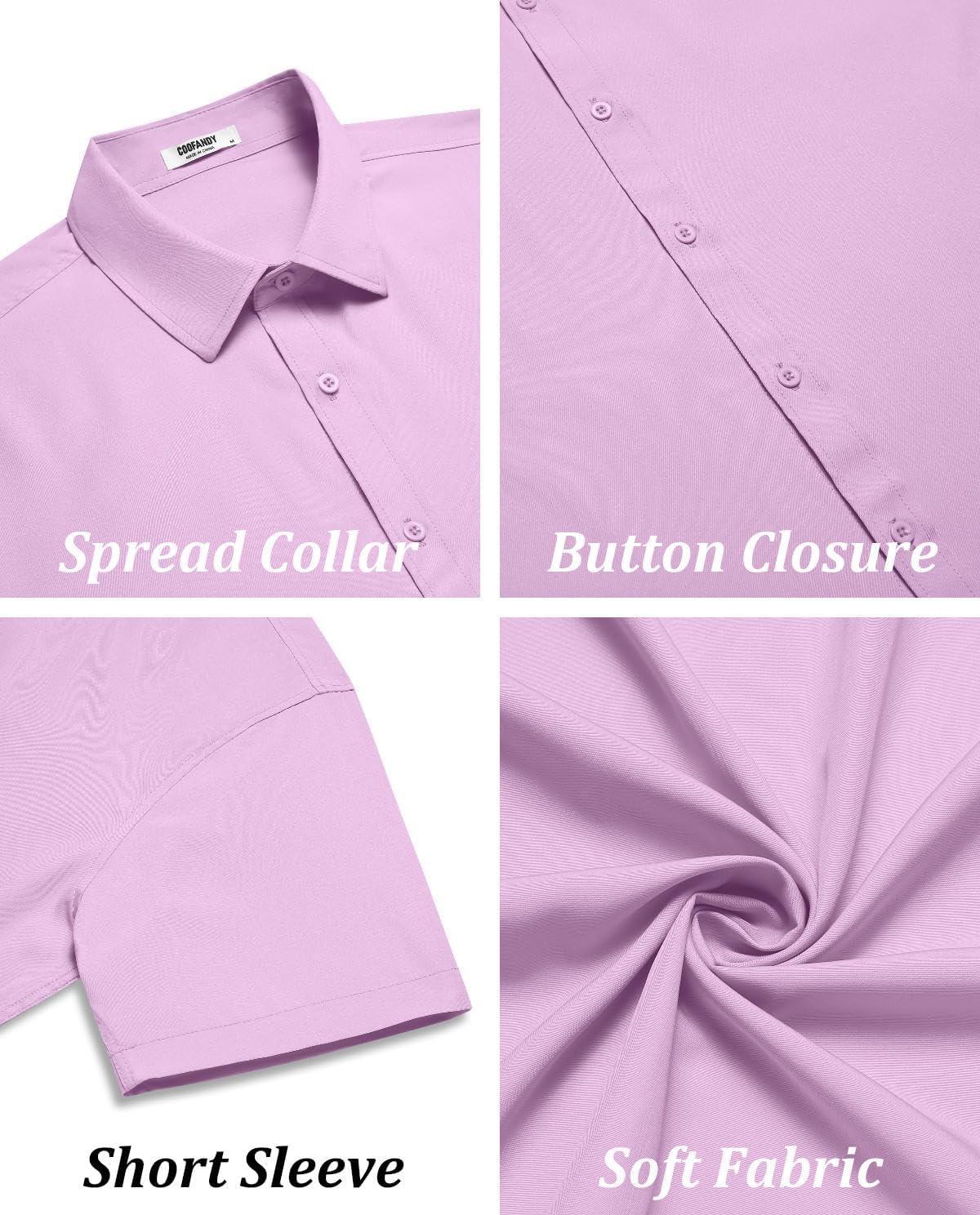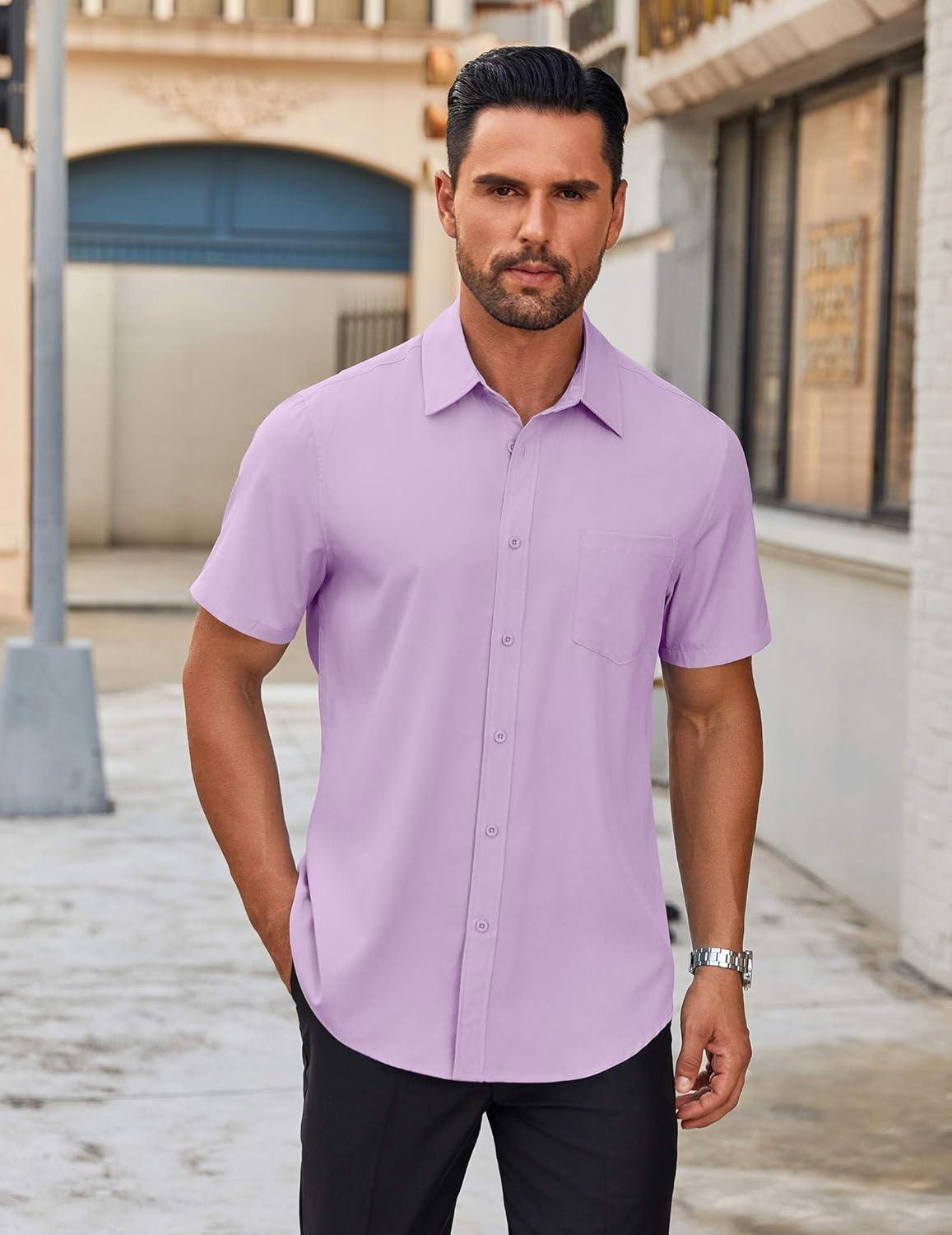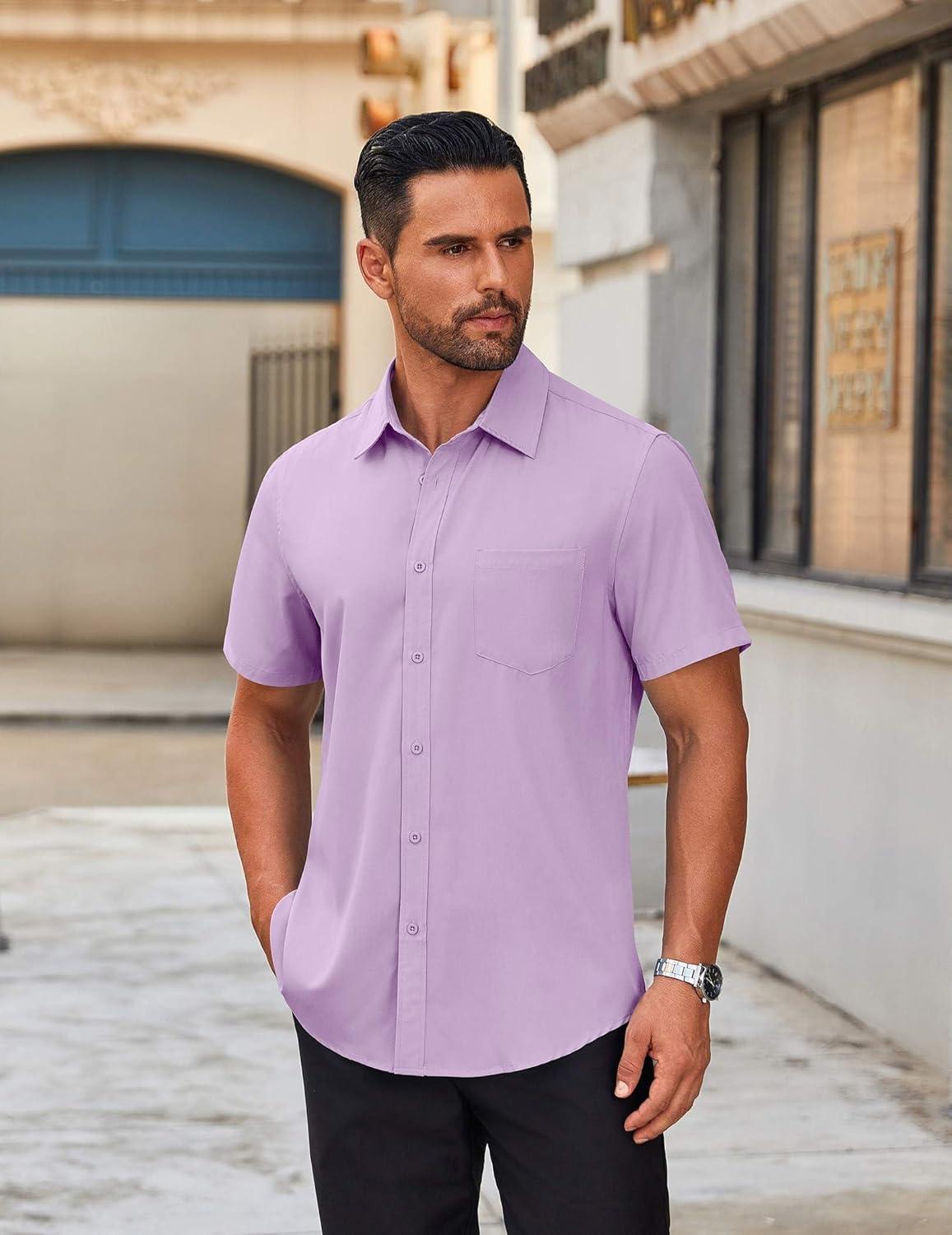 COOFANDY Mens Short Sleeve Button Down Shirt Lightweight Wrinkle Free Untucked Dress Shirts(Light Purple)