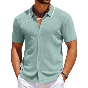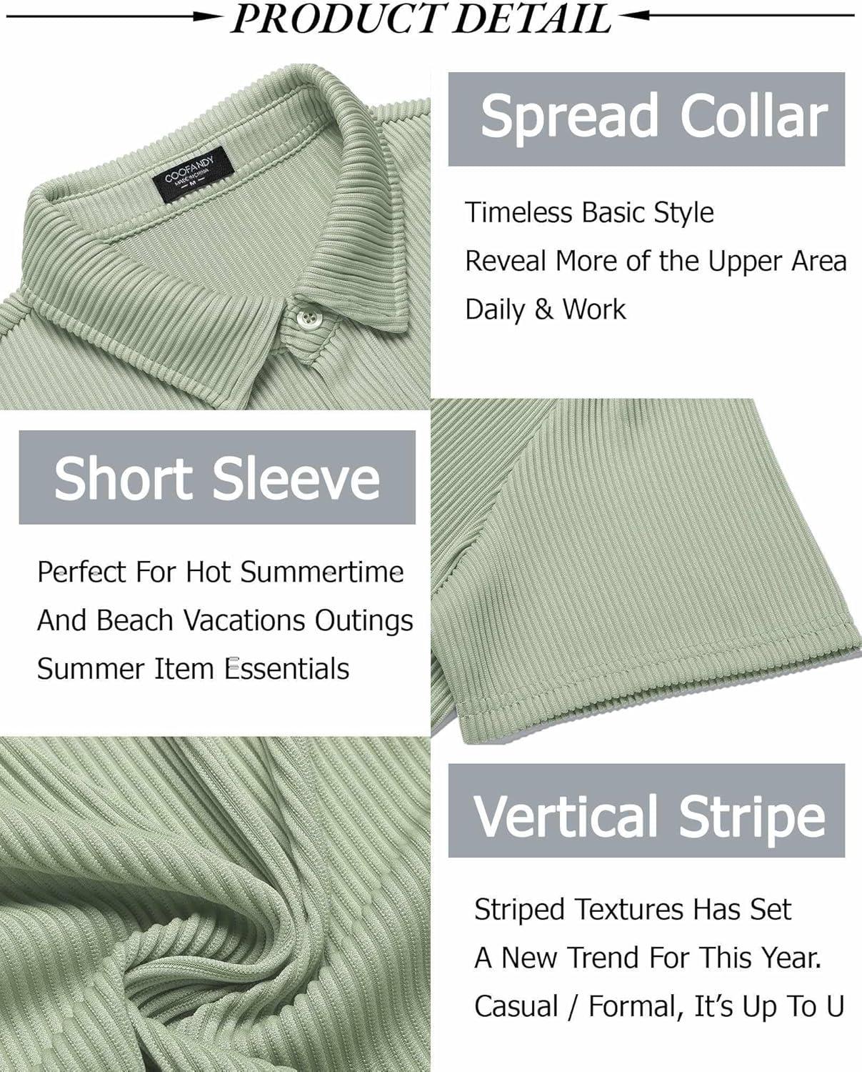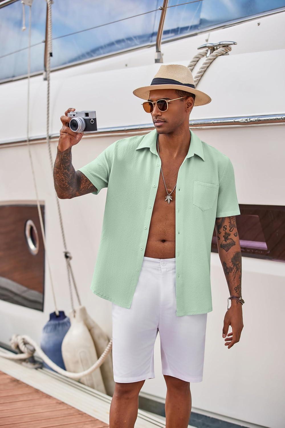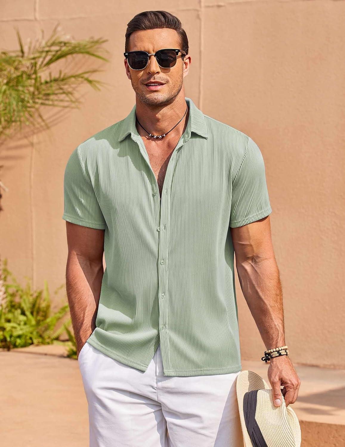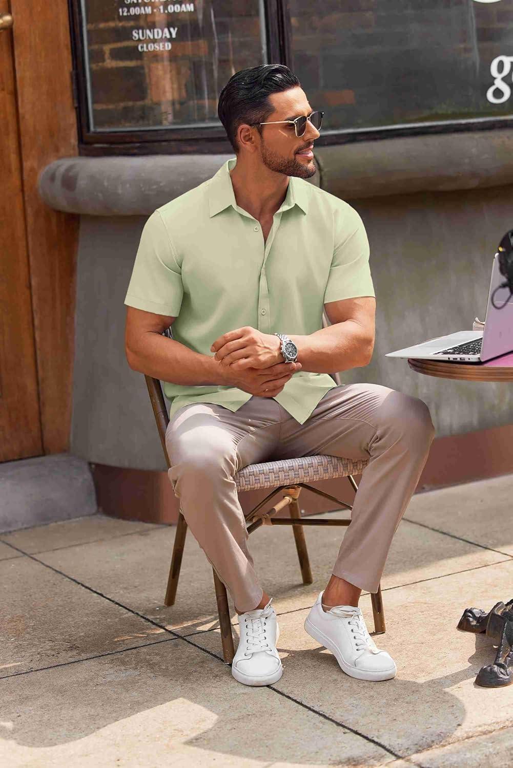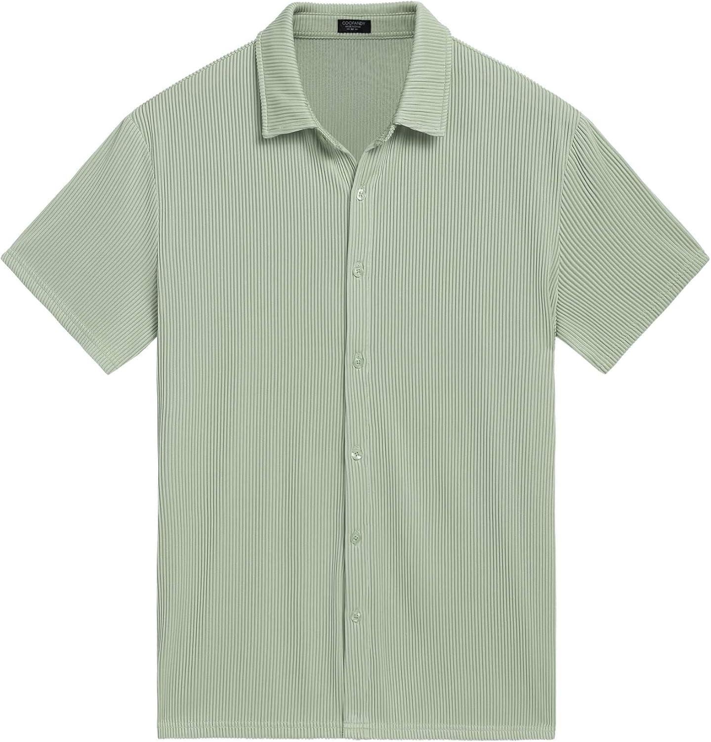 COOFANDY Mens Shirts Button Up Short Sleeve Button Down Shirt Casual Button Down Shirt Light Green