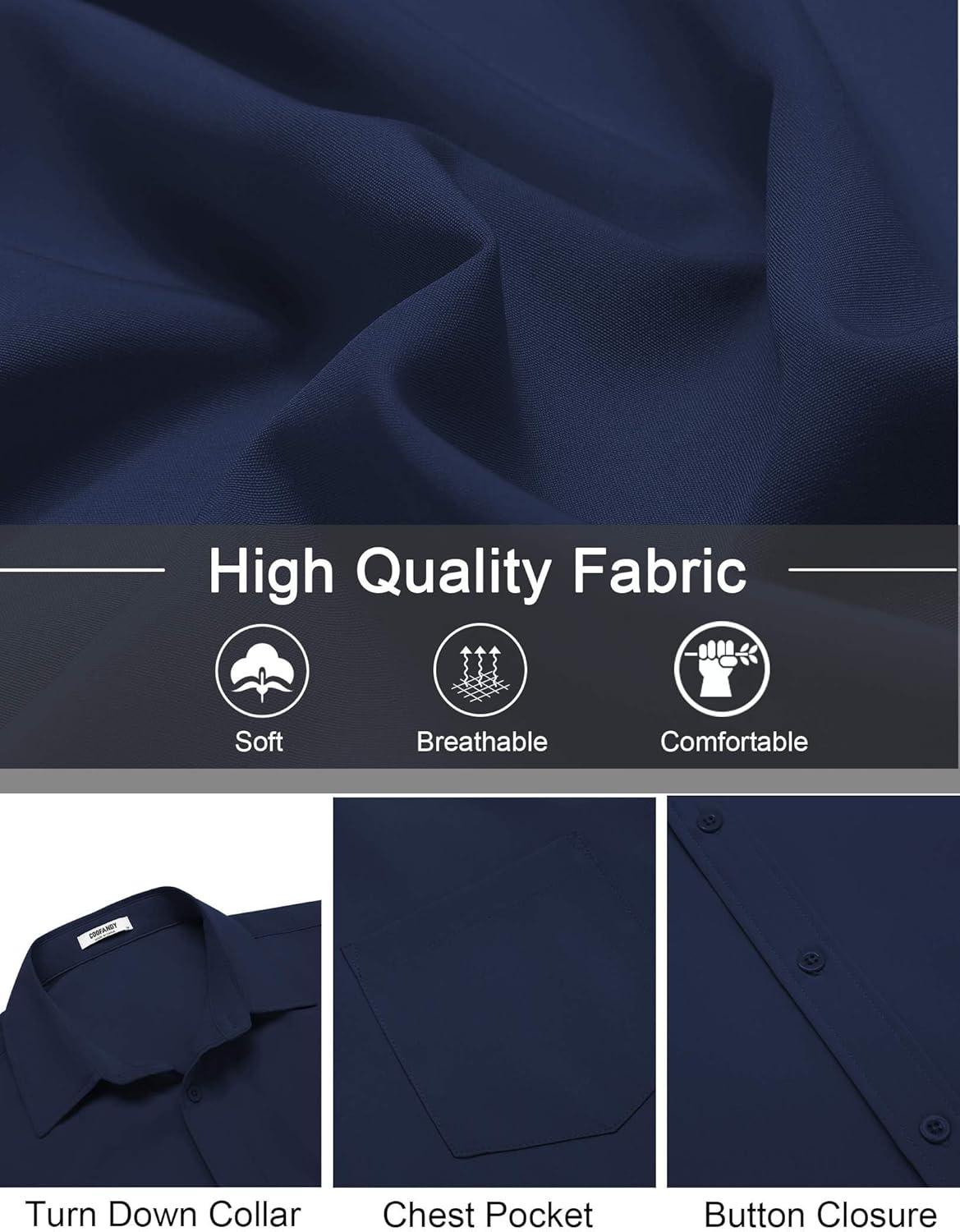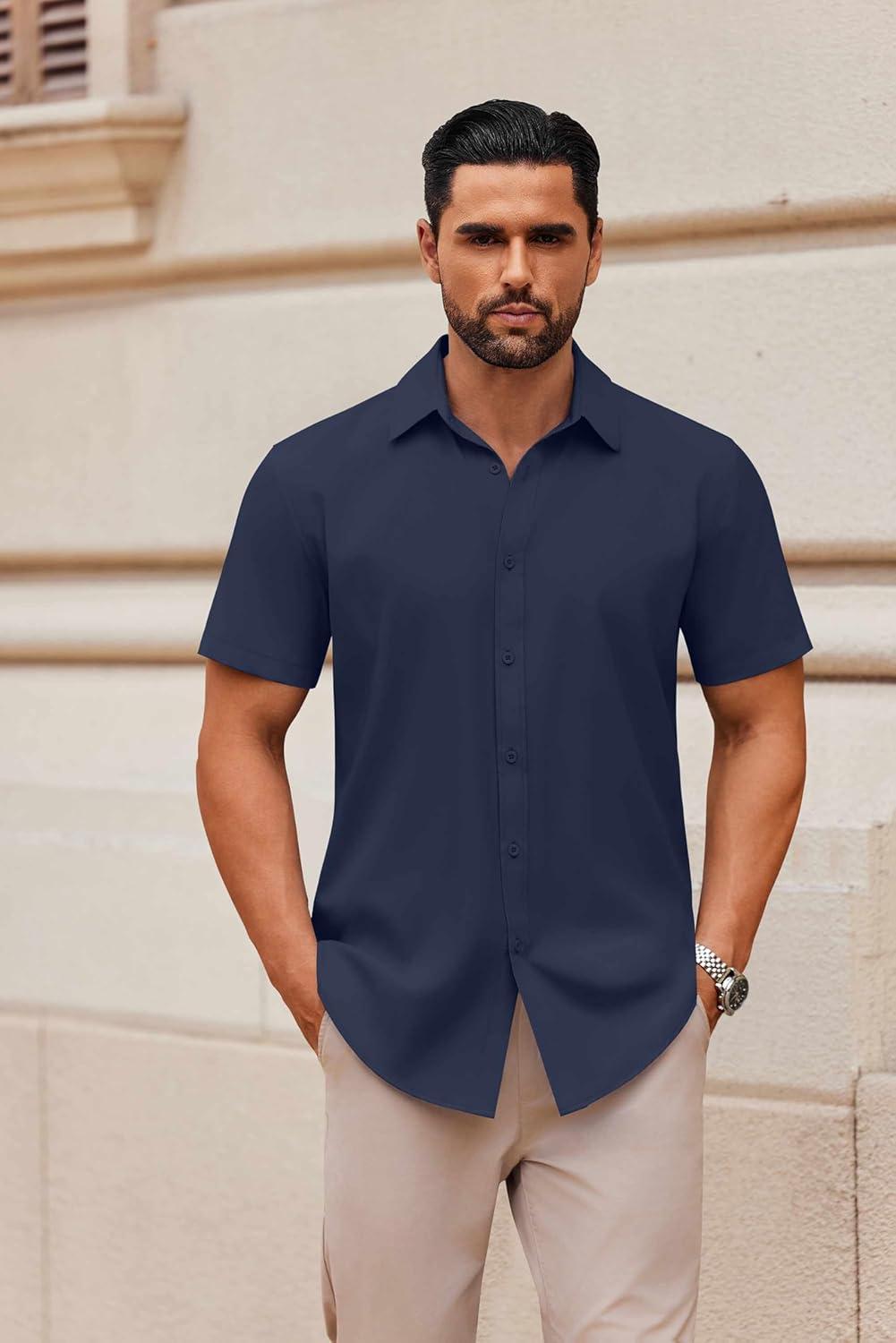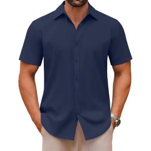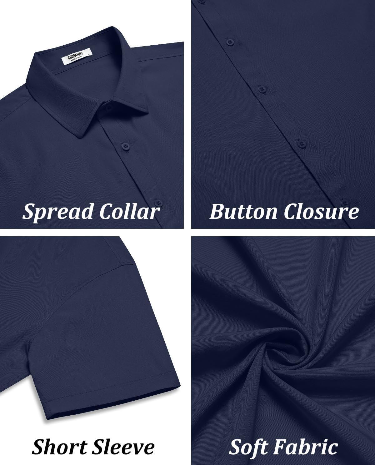 COOFANDY Mens Short Sleeve Button Down Shirt Lightweight Wrinkle Free Untucked Dress Shirts(Navy)