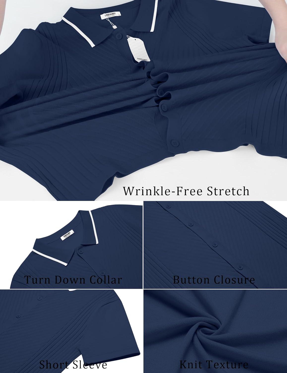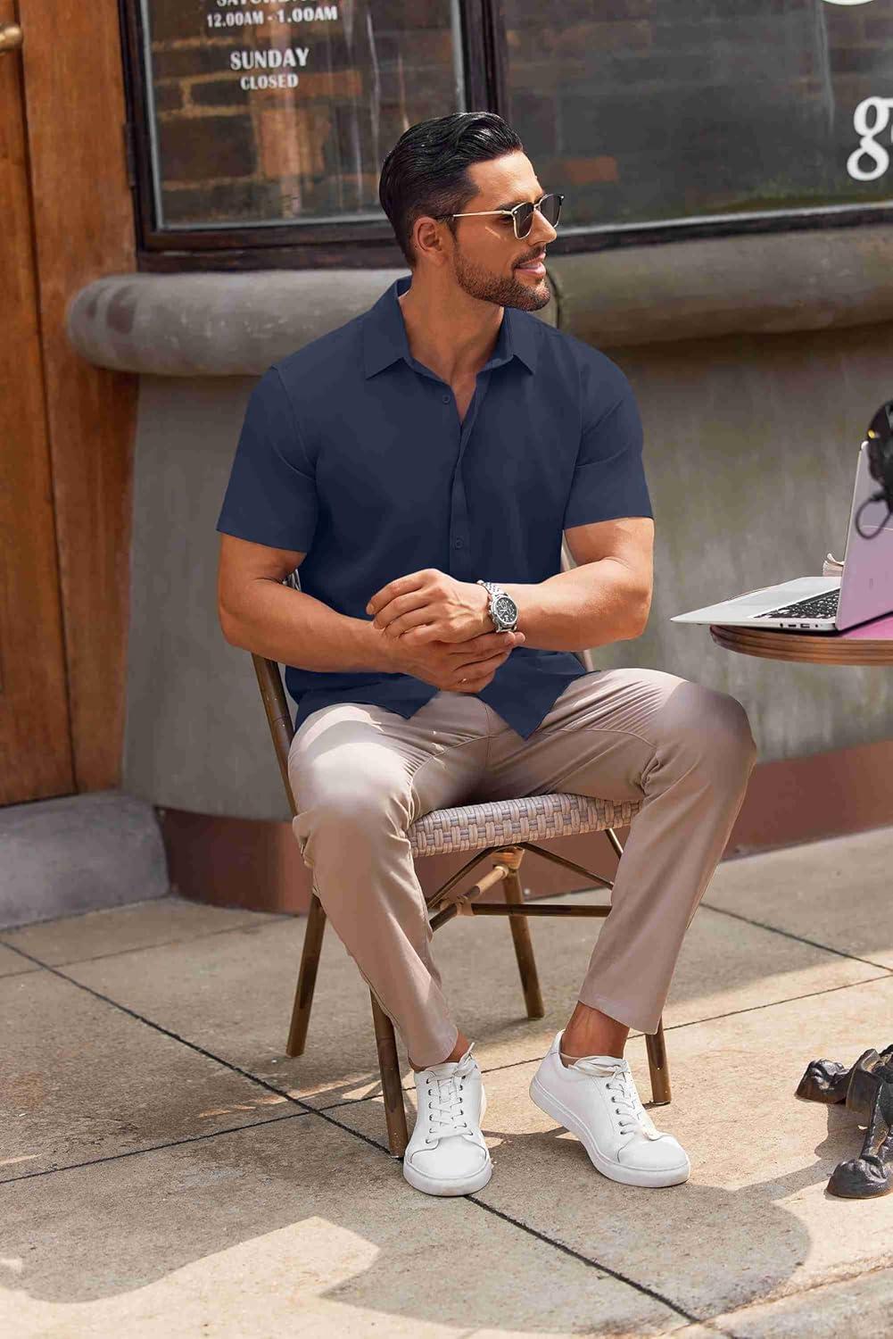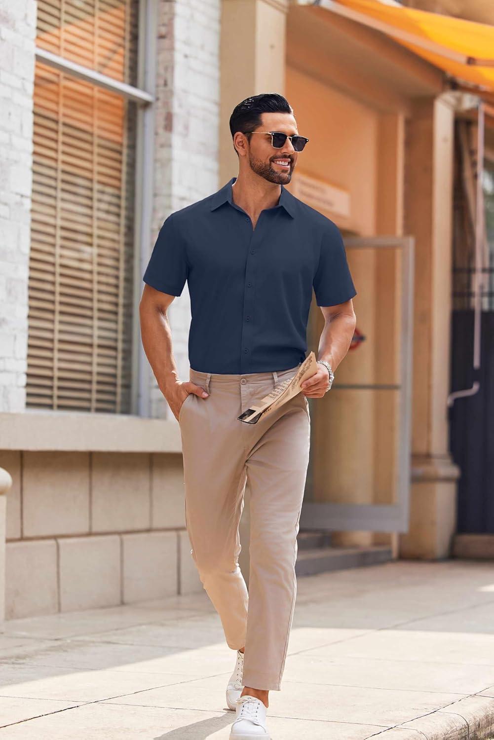 COOFANDY Mens Short Sleeve Button Down Shirt Lightweight Wrinkle Free Untucked Dress Shirts(Navy)