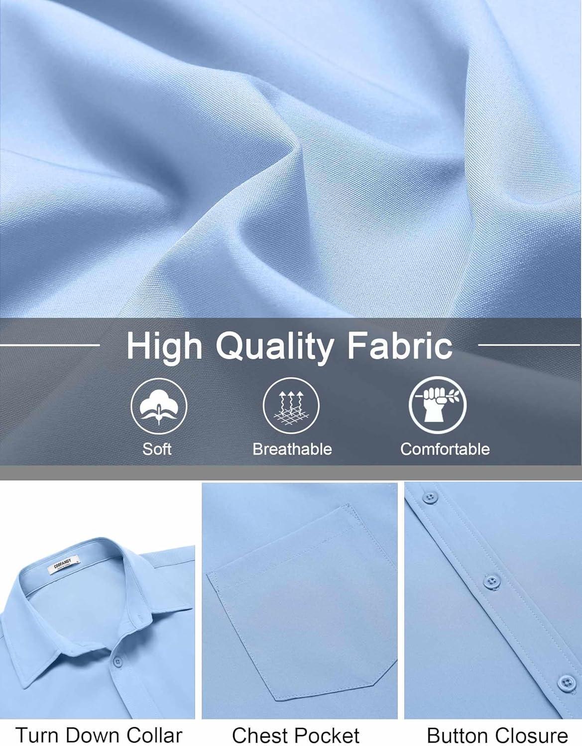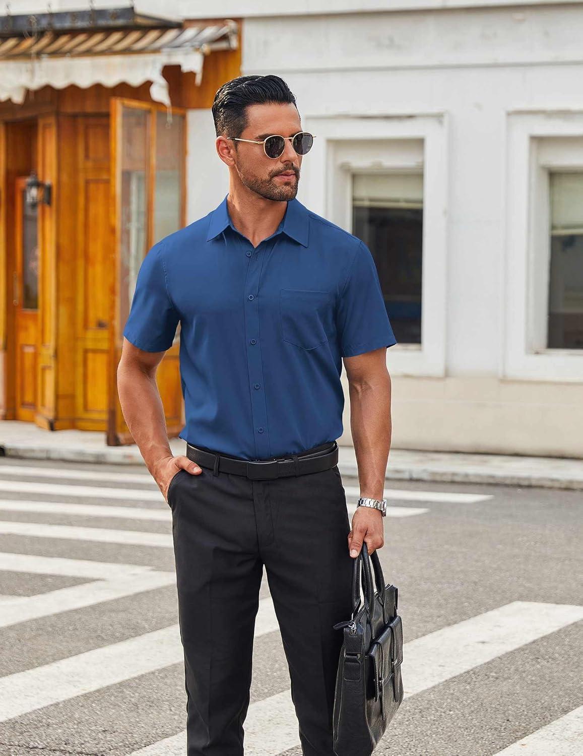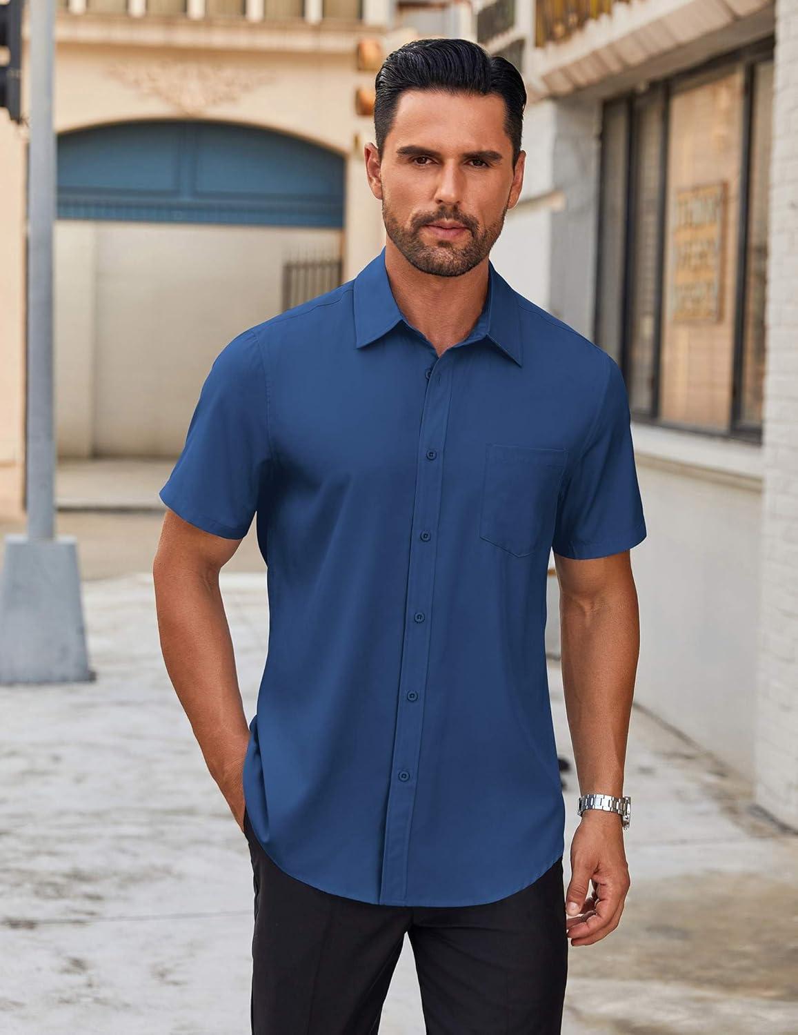 COOFANDY Mens Short Sleeve Button Down Shirts Lightweight Stain Shield Business Casual Dress Shirt Wrinkle Free(Blue)