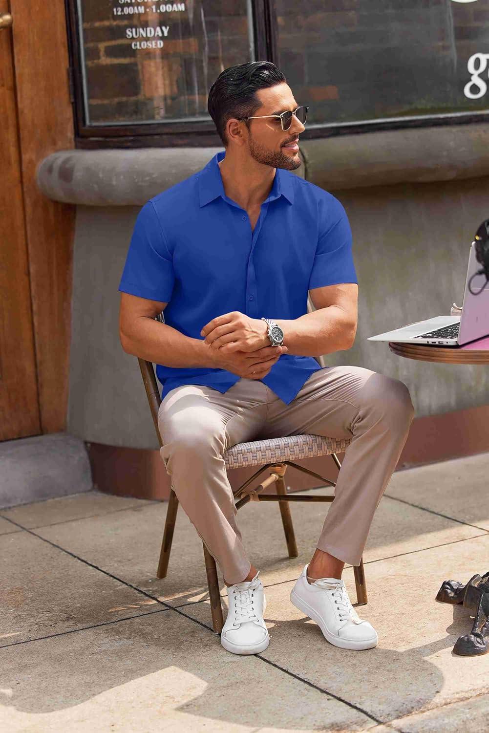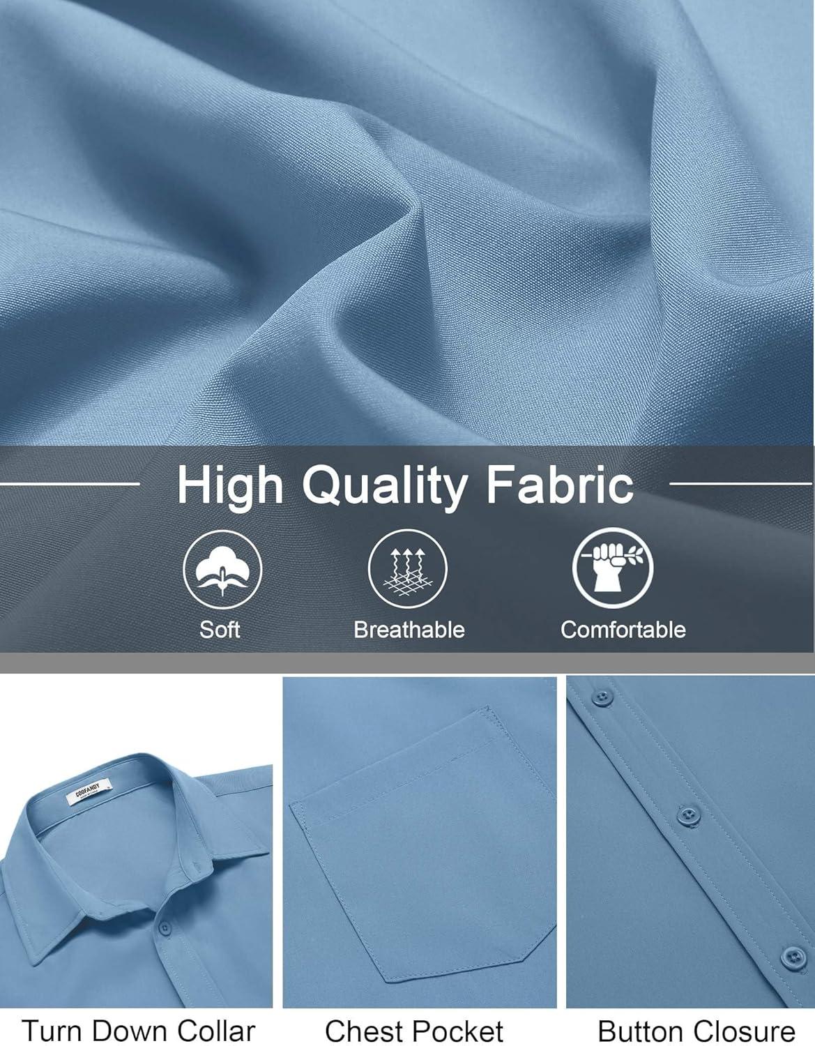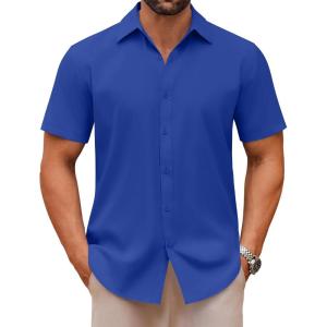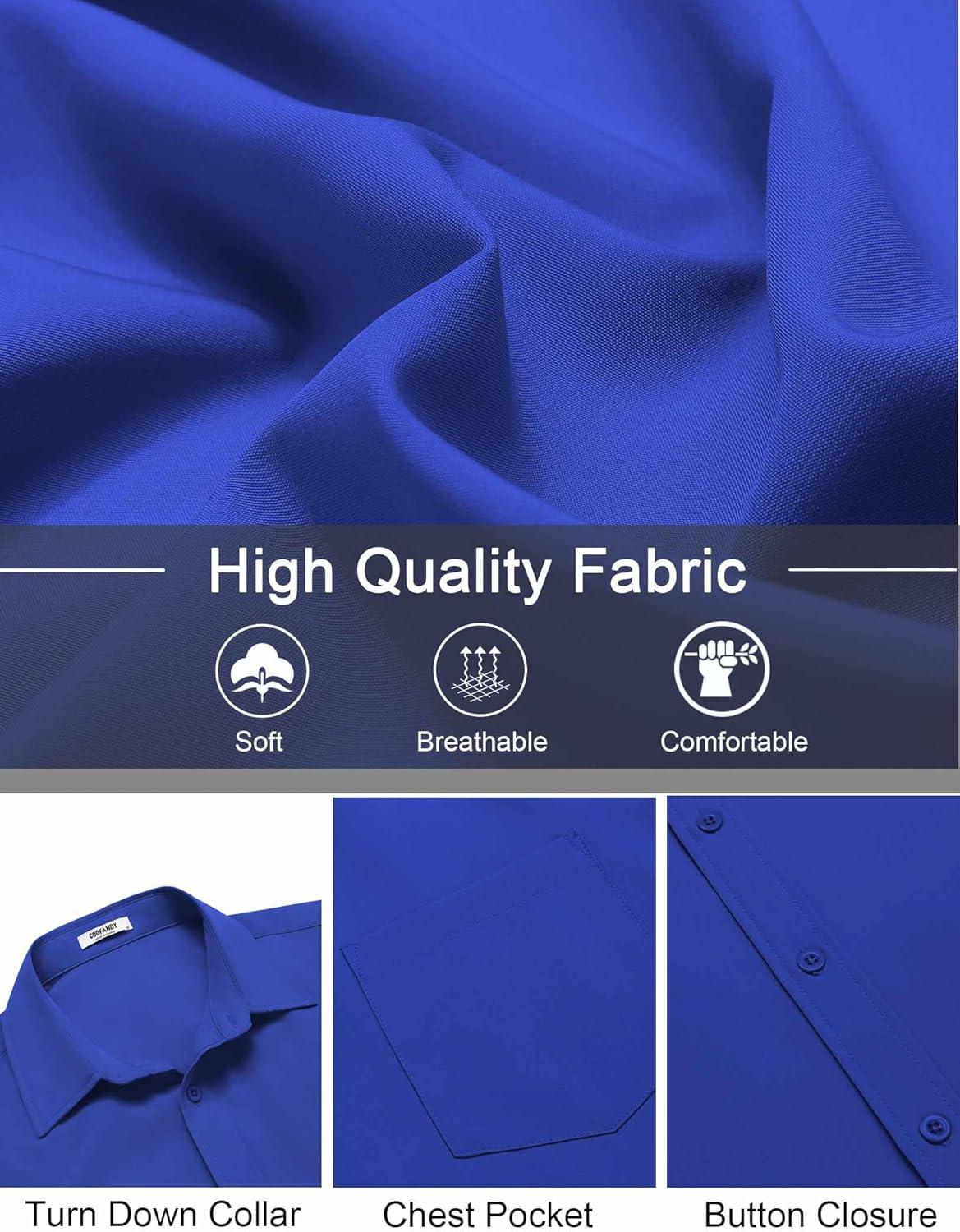 COOFANDY Mens Short Sleeve Button Down Shirts Lightweight Stain Shield Business Casual Dress Shirt Wrinkle Free(Blue)
