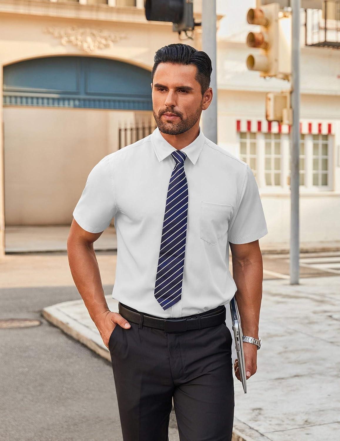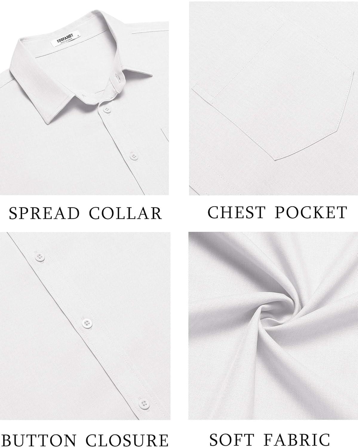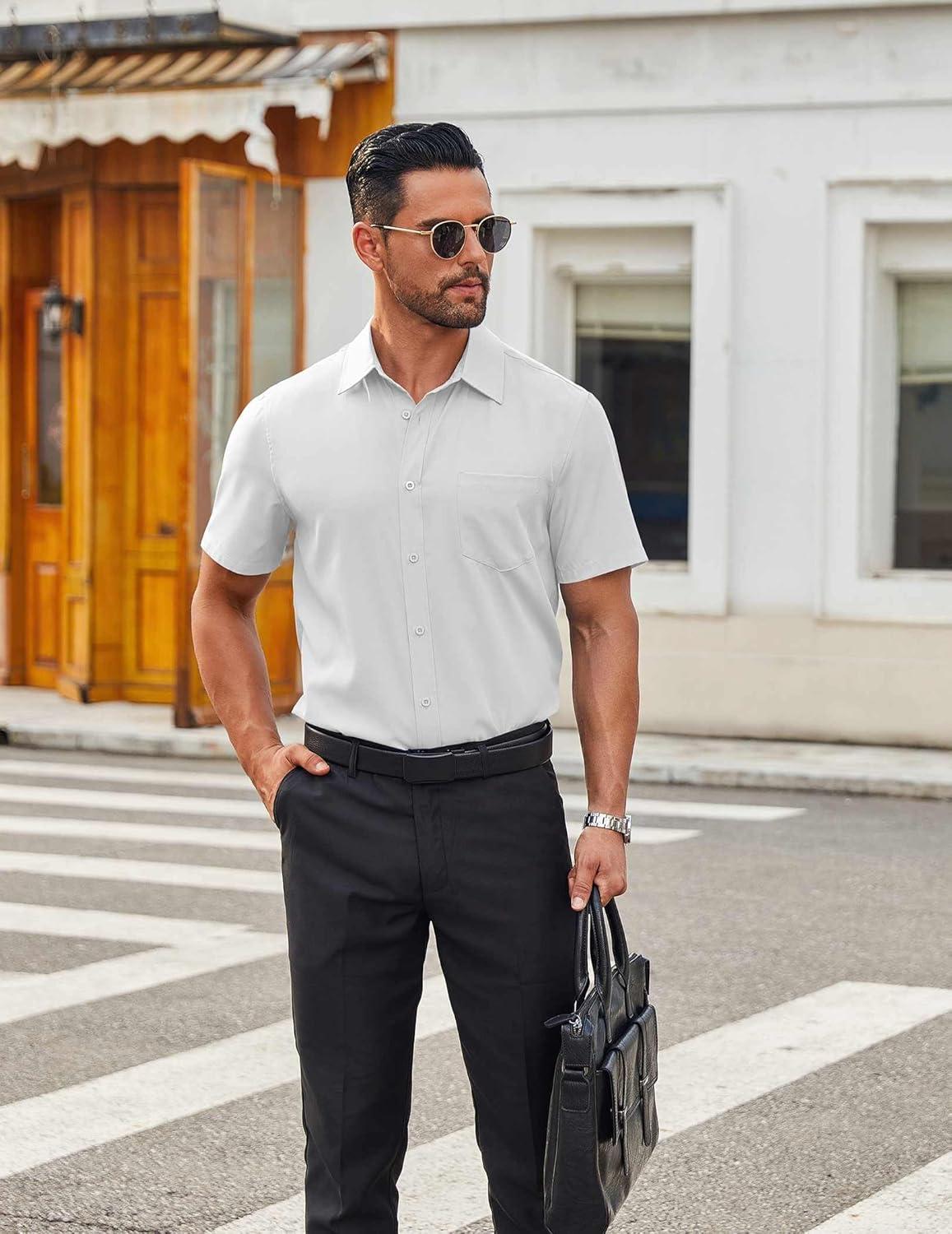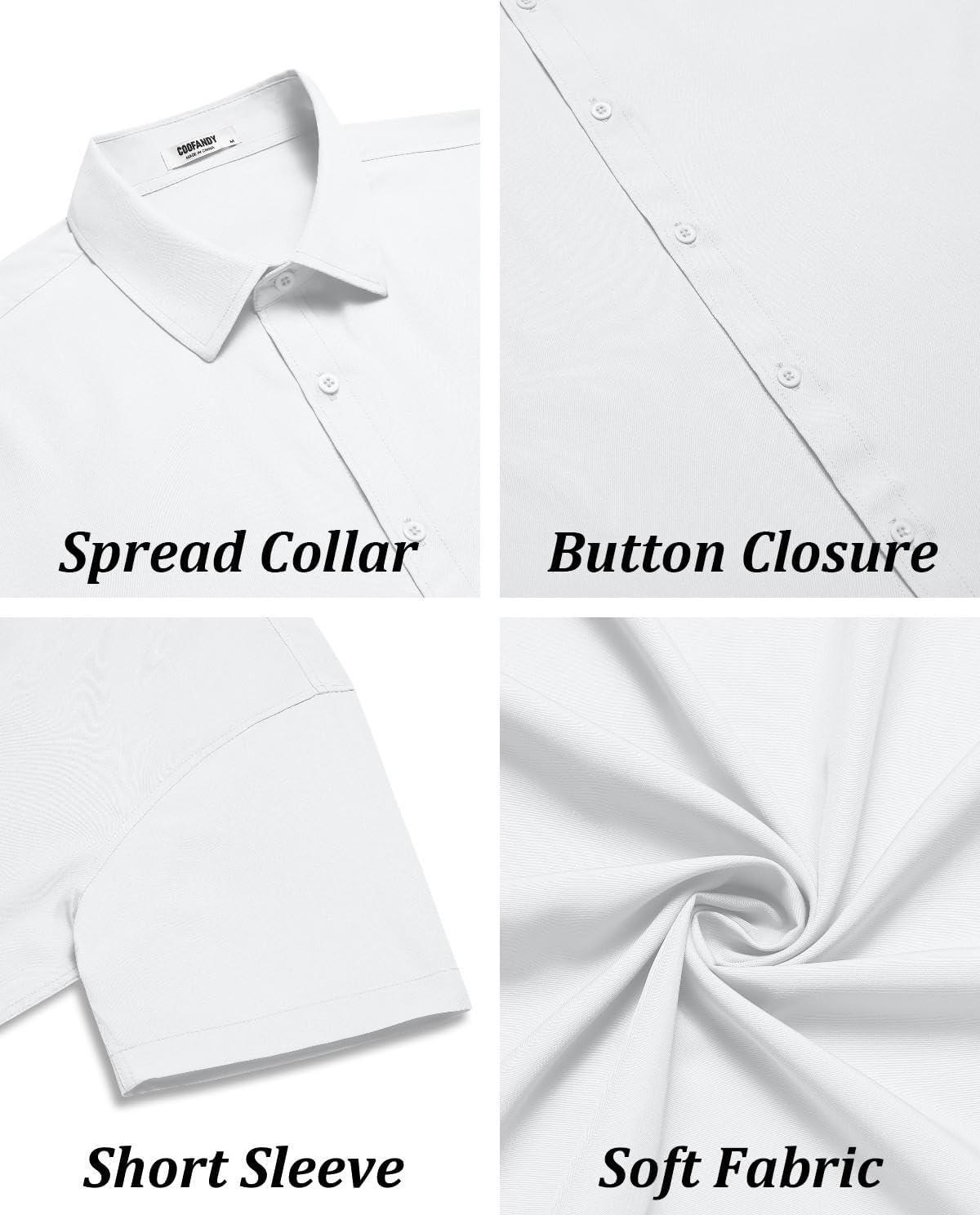 COOFANDY Mens Short Sleeve Button Down Shirts Lightweight Stain Shield Business Casual Dress Shirt Wrinkle Free(White)