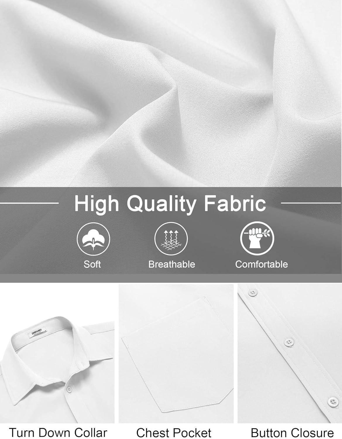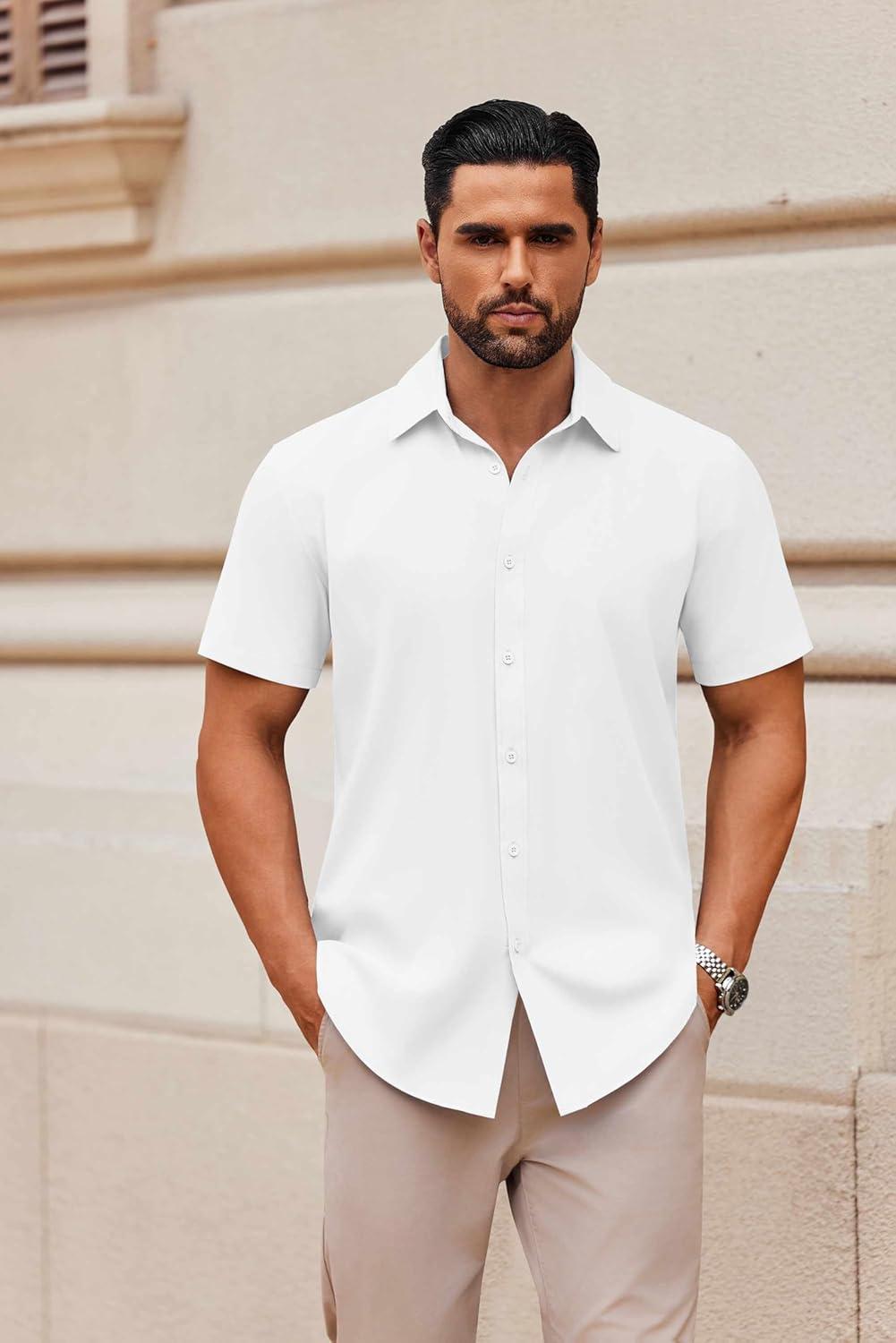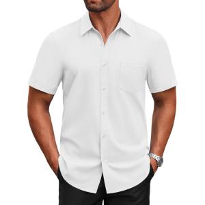 COOFANDY Mens Short Sleeve Button Down Shirt Lightweight Wrinkle Free Untucked Dress Shirts(White)