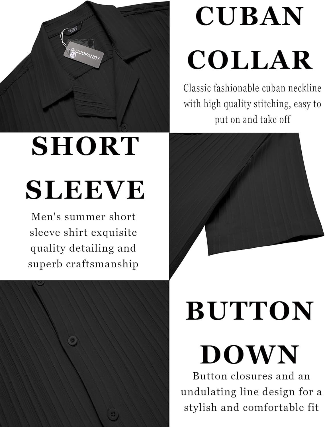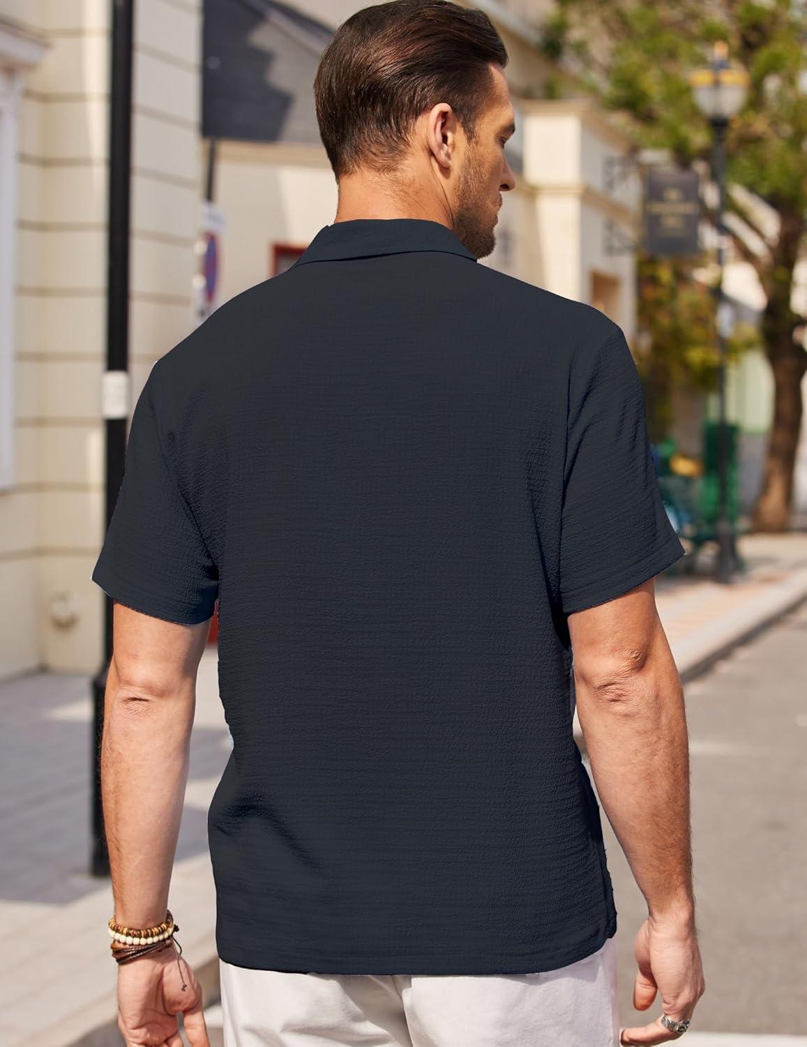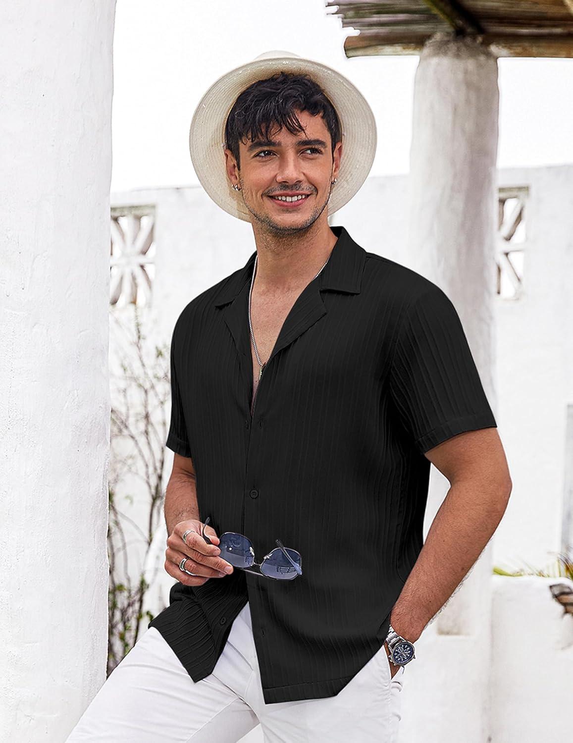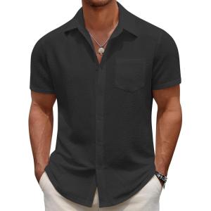 COOFANDY Men’s Casual Button Down Shirts Short Sleeve Textured Summer Beach Shirts(Black)