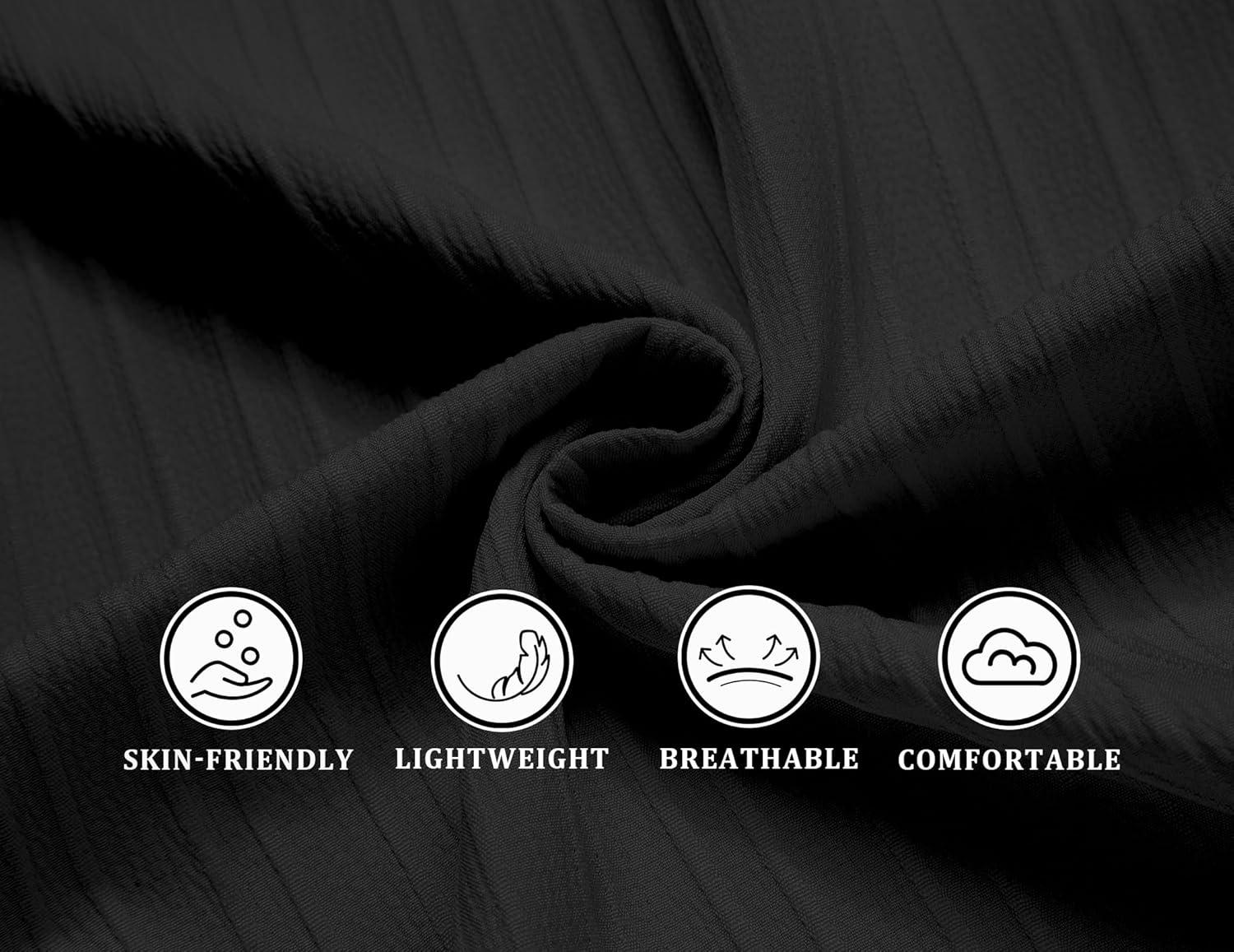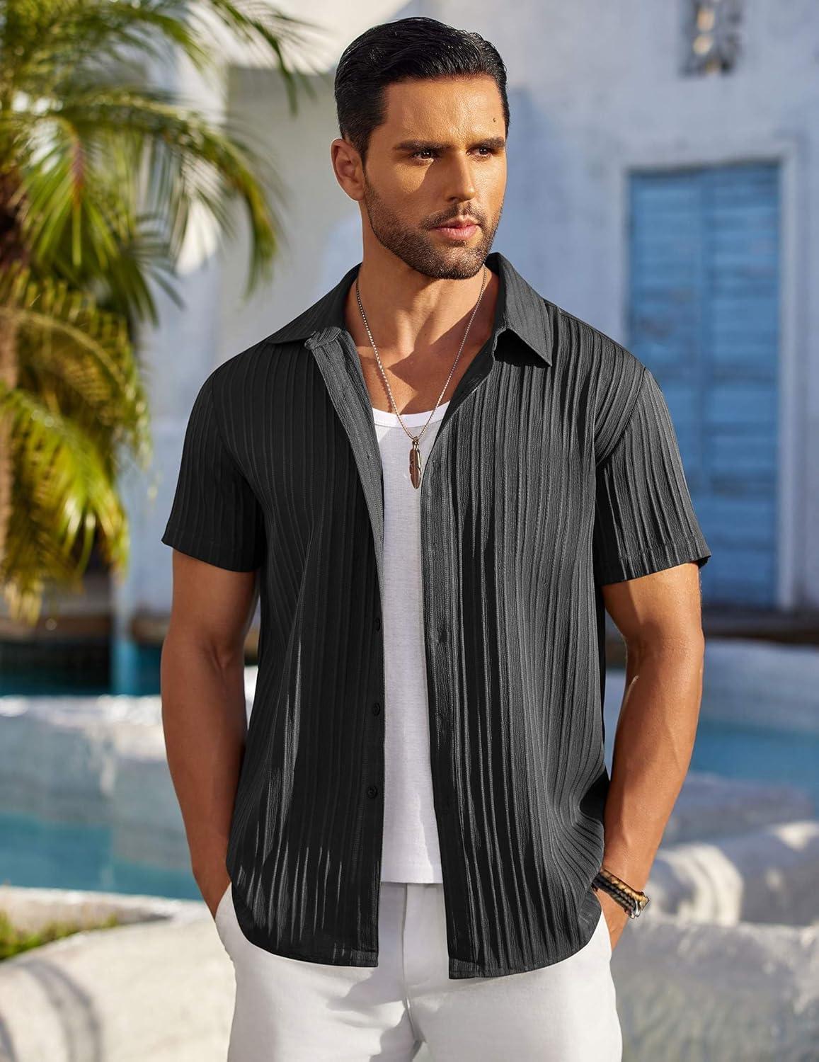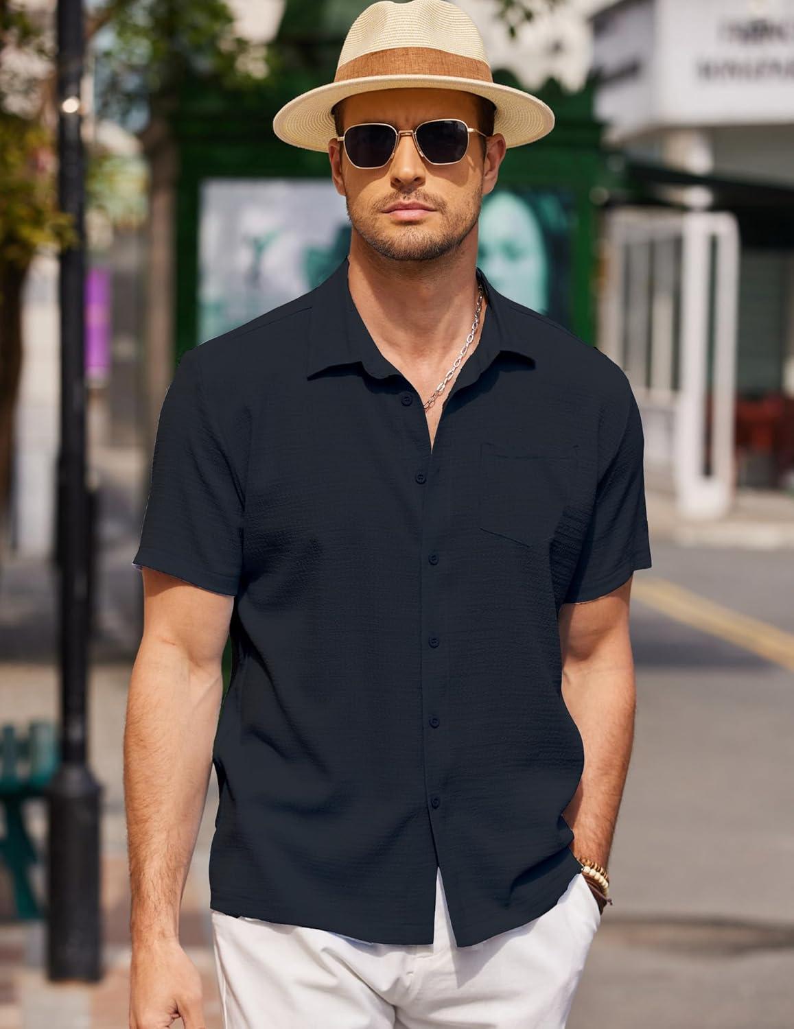COOFANDY Men’s Casual Button Down Shirts Short Sleeve Textured Summer Beach Shirts(Black)