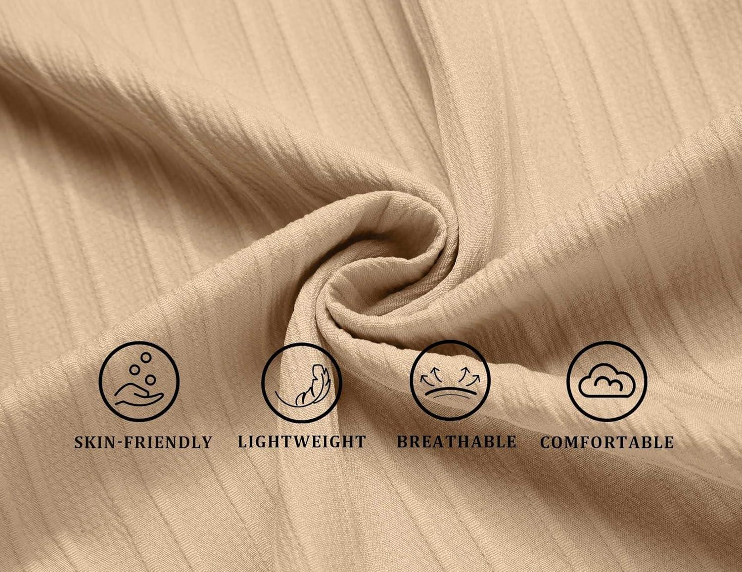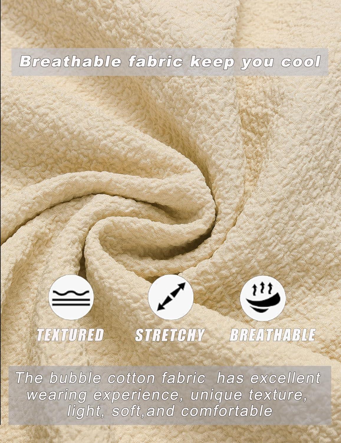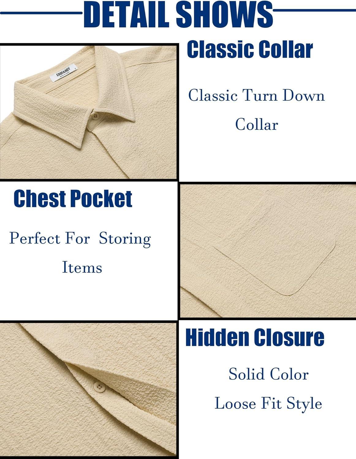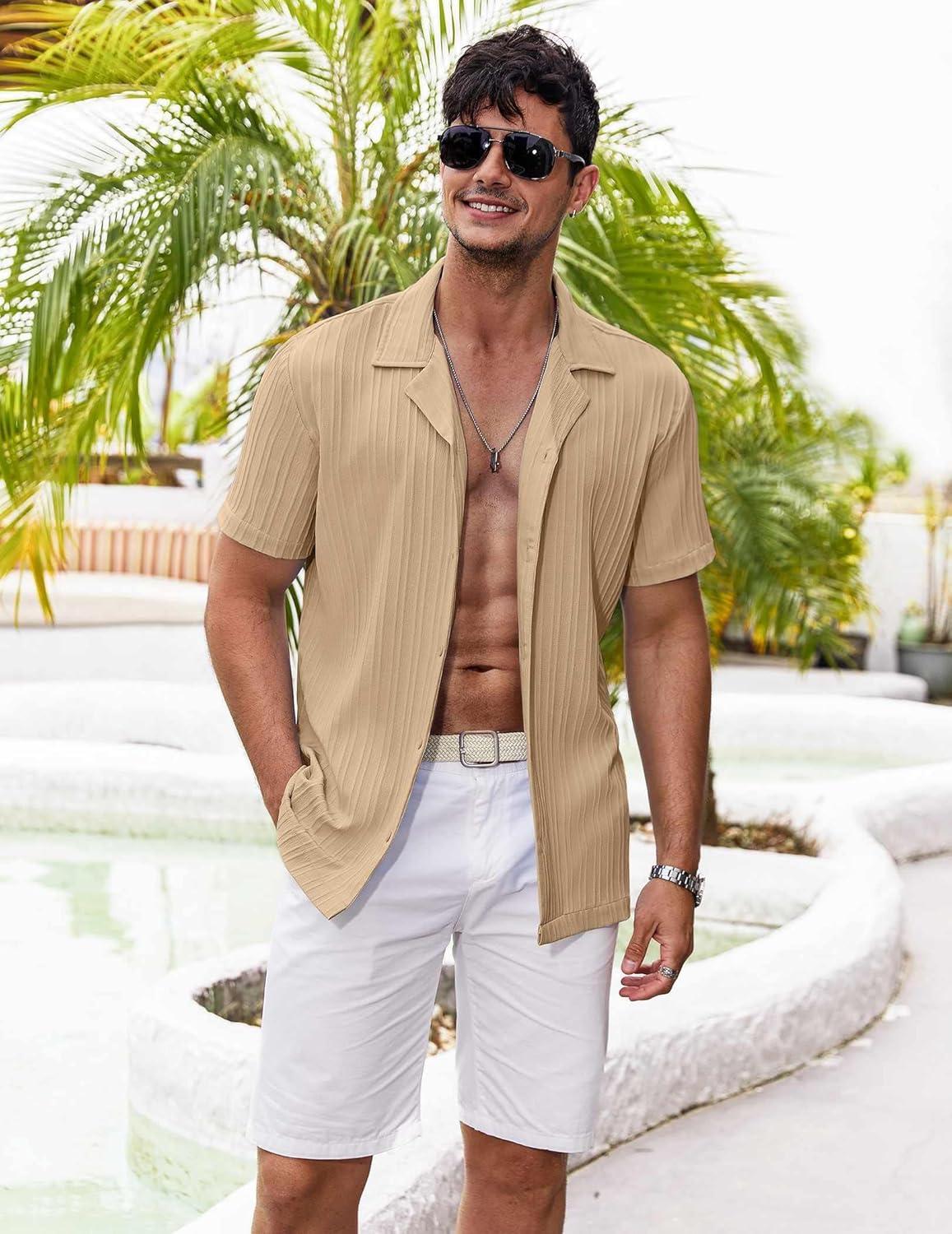 COOFANDY Men’s Casual Button Down Shirts Short Sleeve Textured Summer Beach Shirts(Beige)