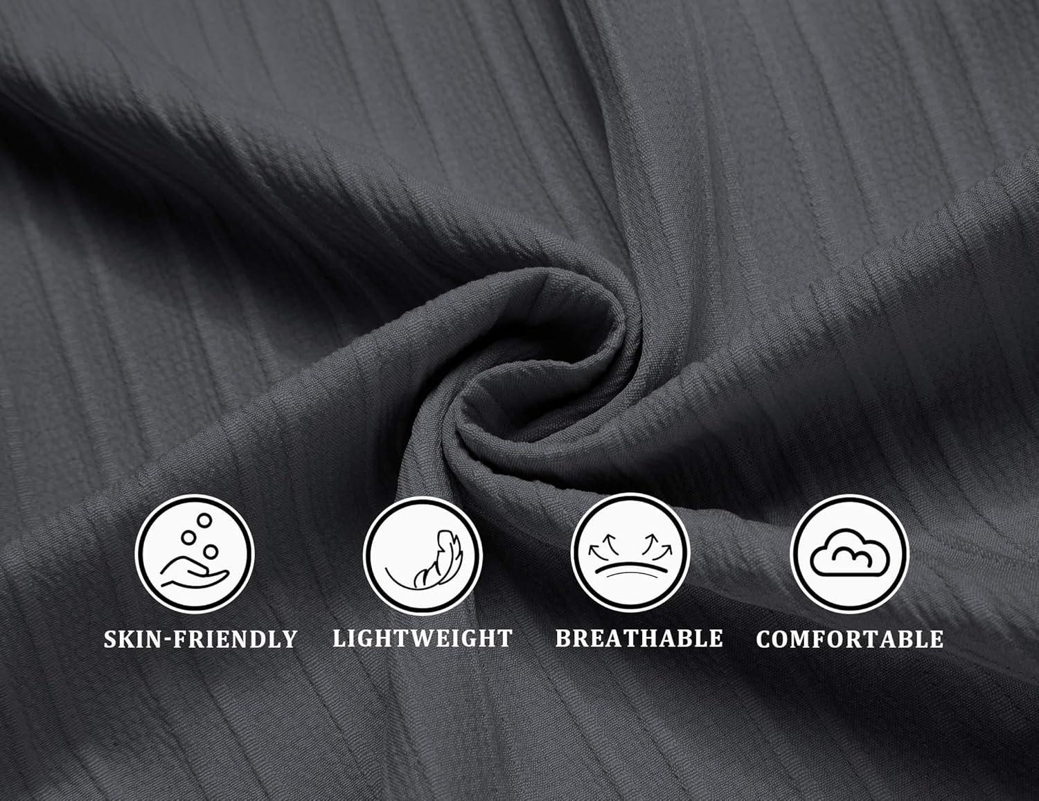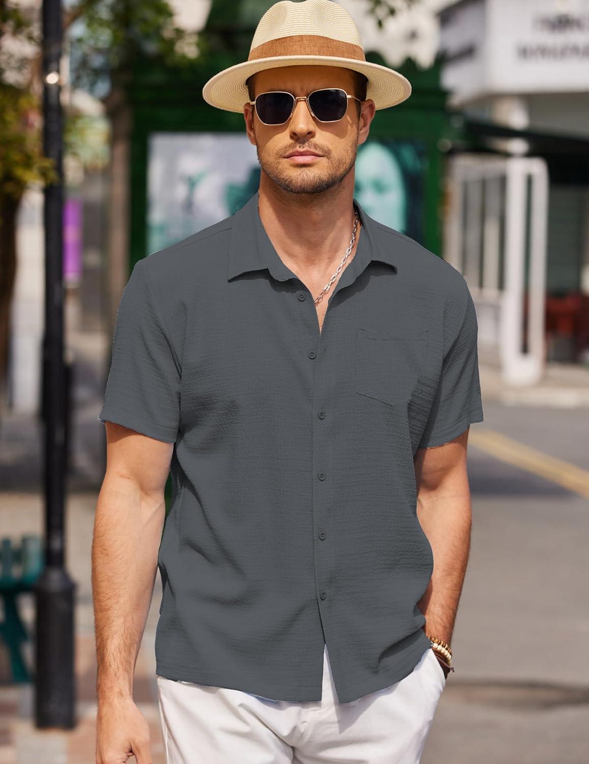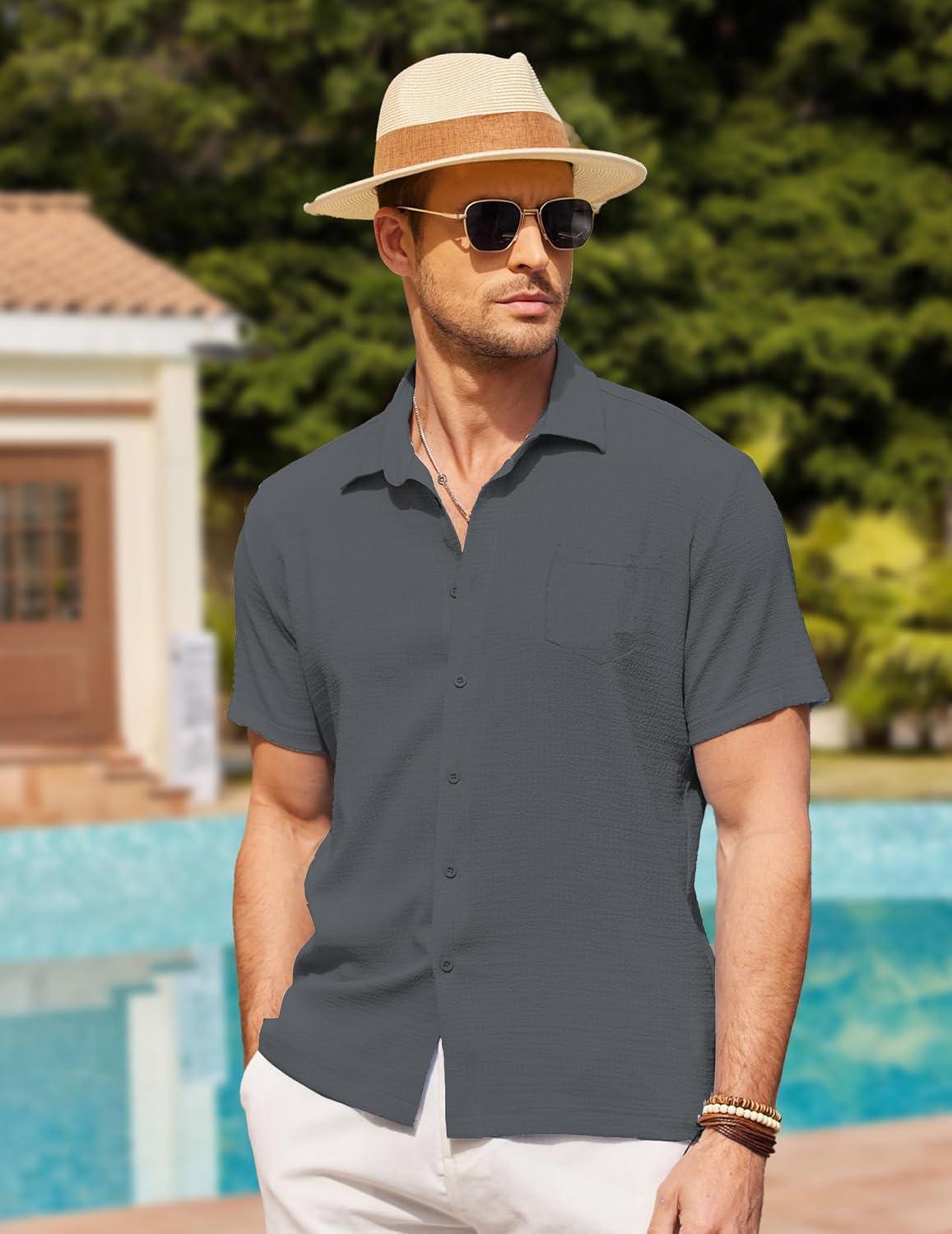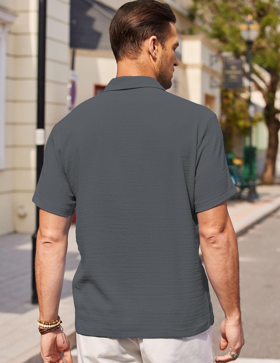 COOFANDY Men’s Casual Button Down Shirts Short Sleeve Textured Summer Beach Shirts(Dark Gray)