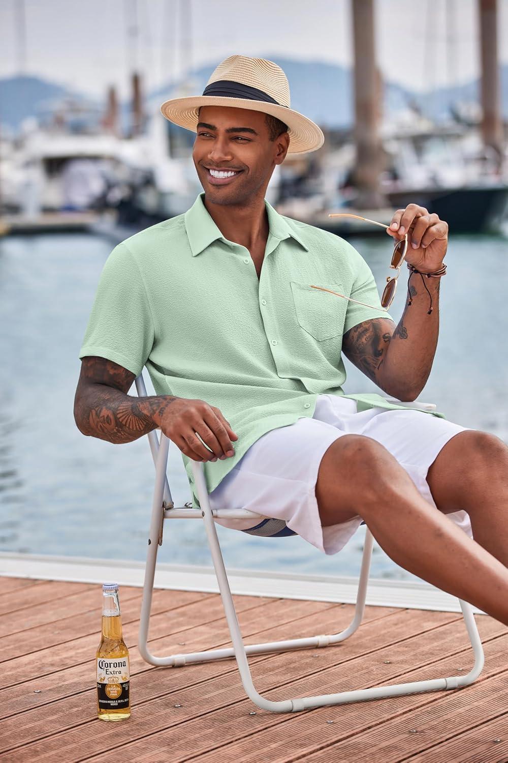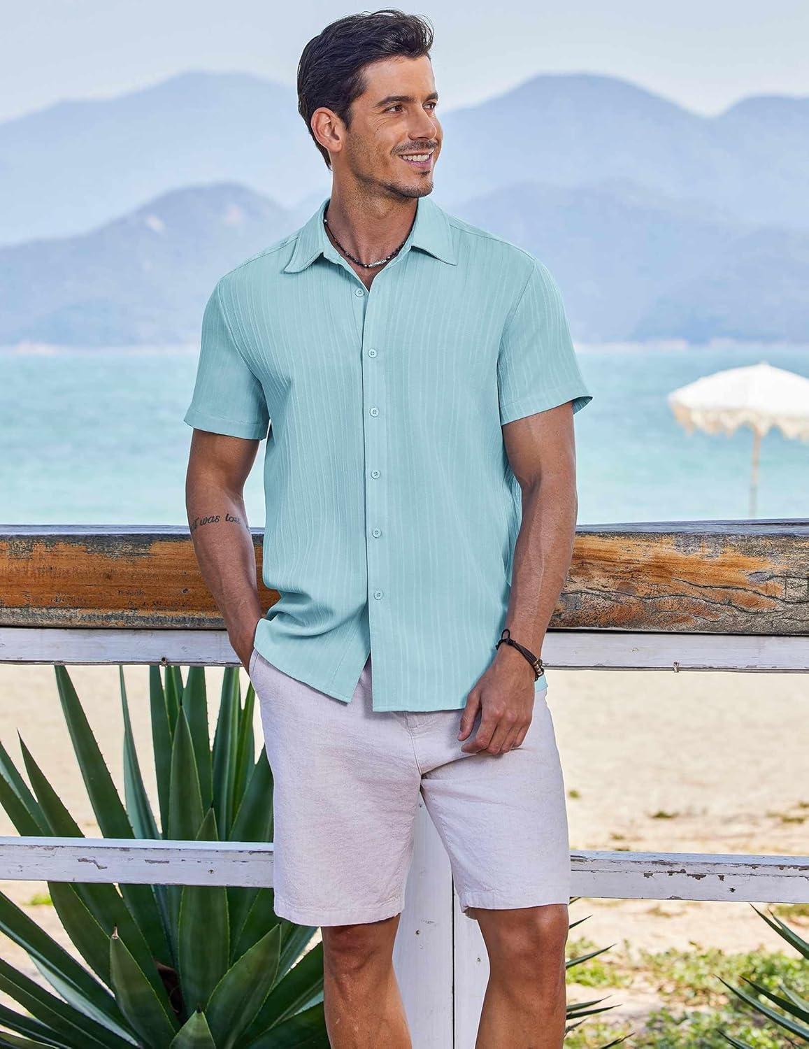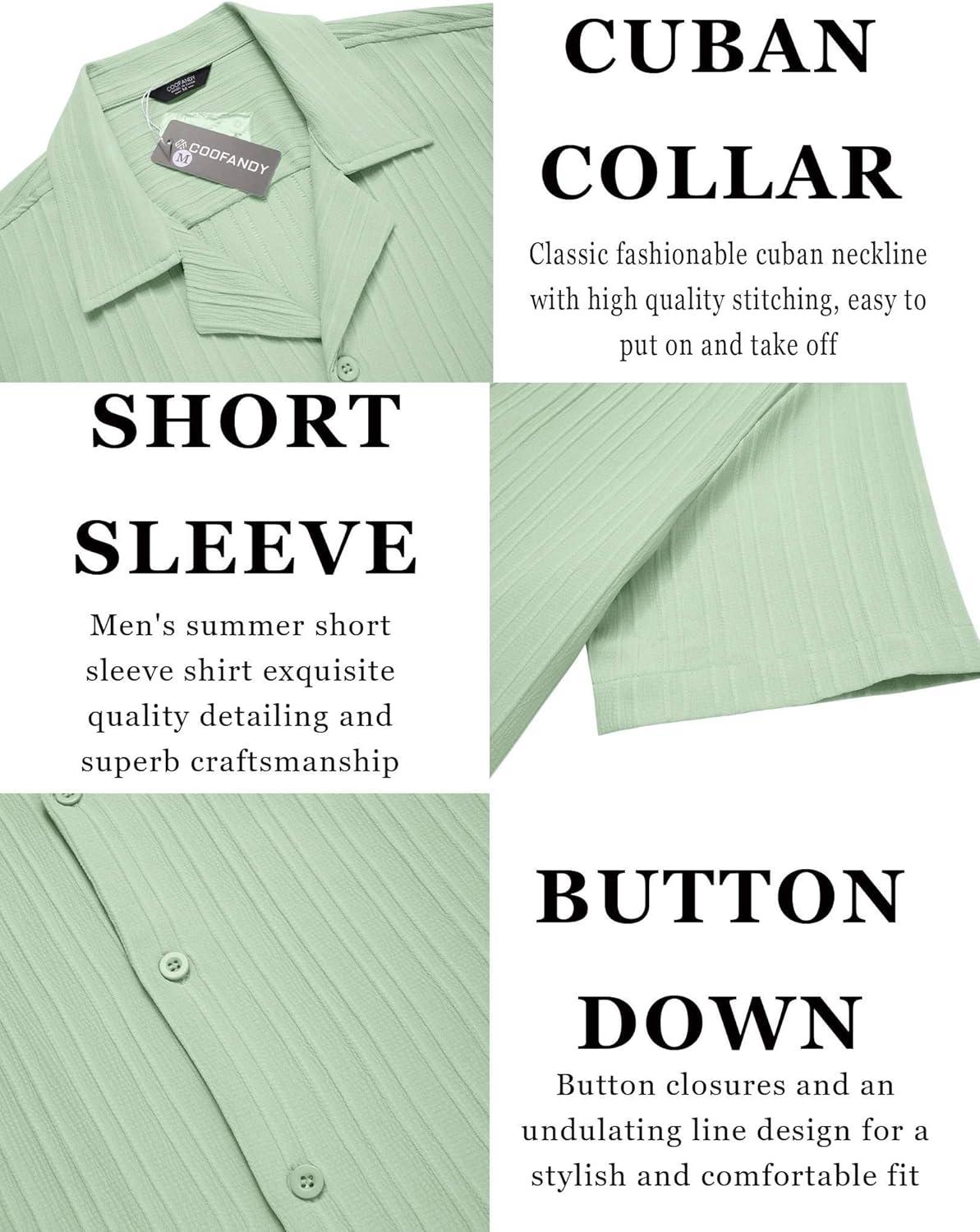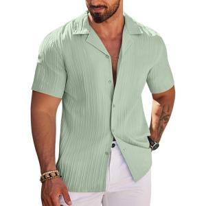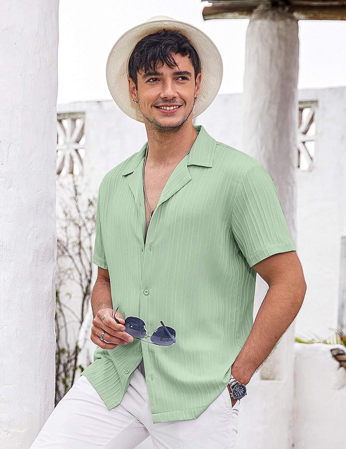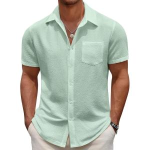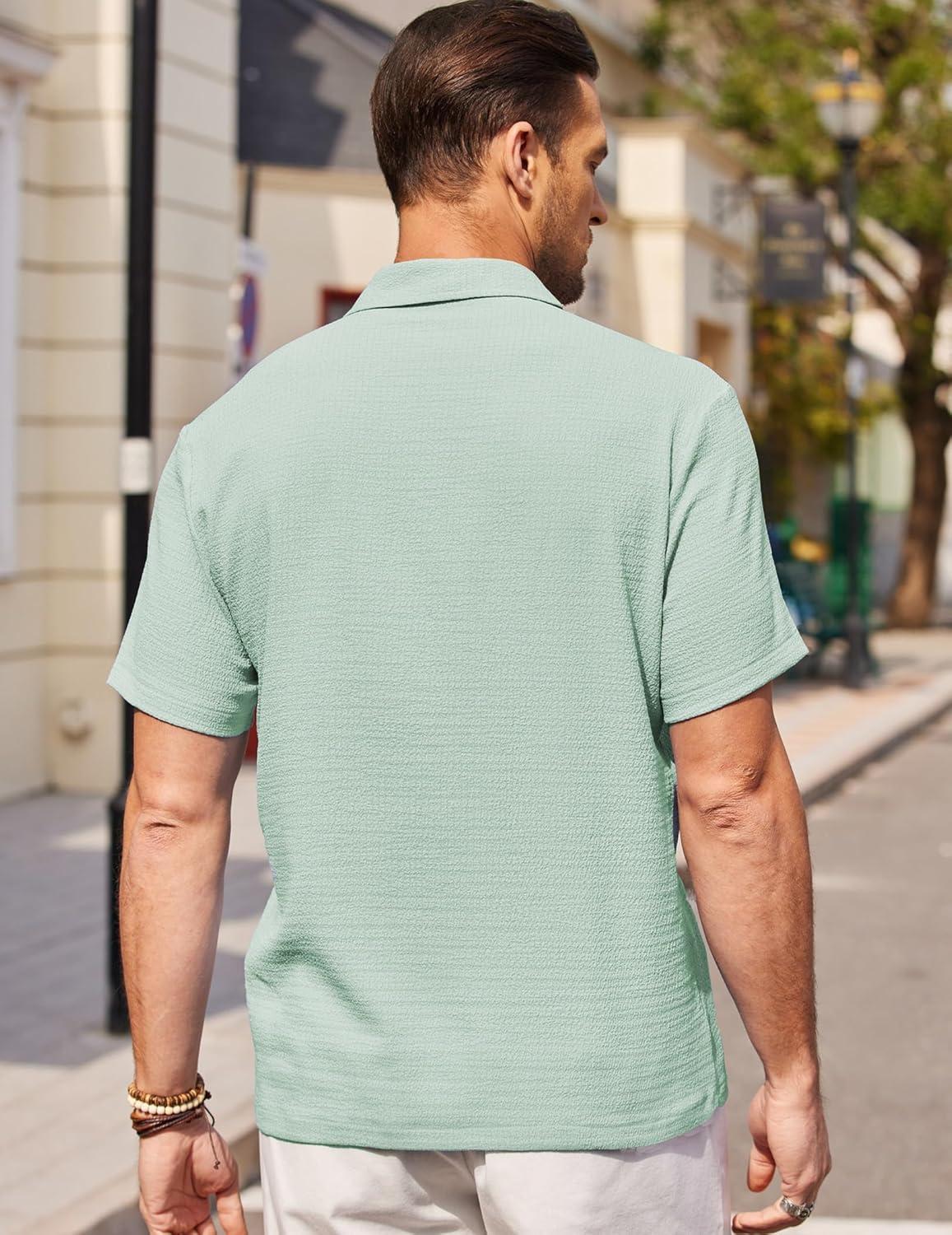 COOFANDY Men’s Casual Button Down Shirts Short Sleeve Textured Summer Beach Shirts(Light Green)