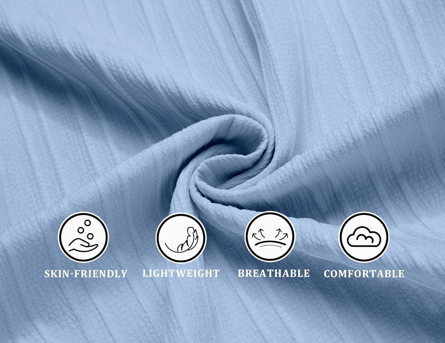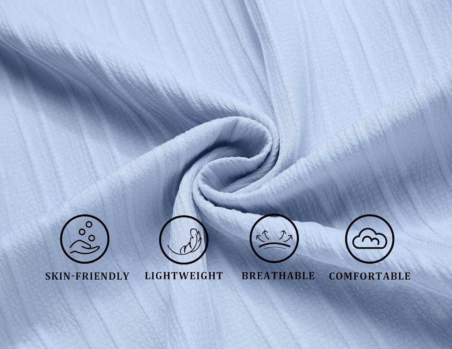 COOFANDY Men’s Casual Button Down Shirts Short Sleeve Textured Summer Beach Shirts(Baby Blue)