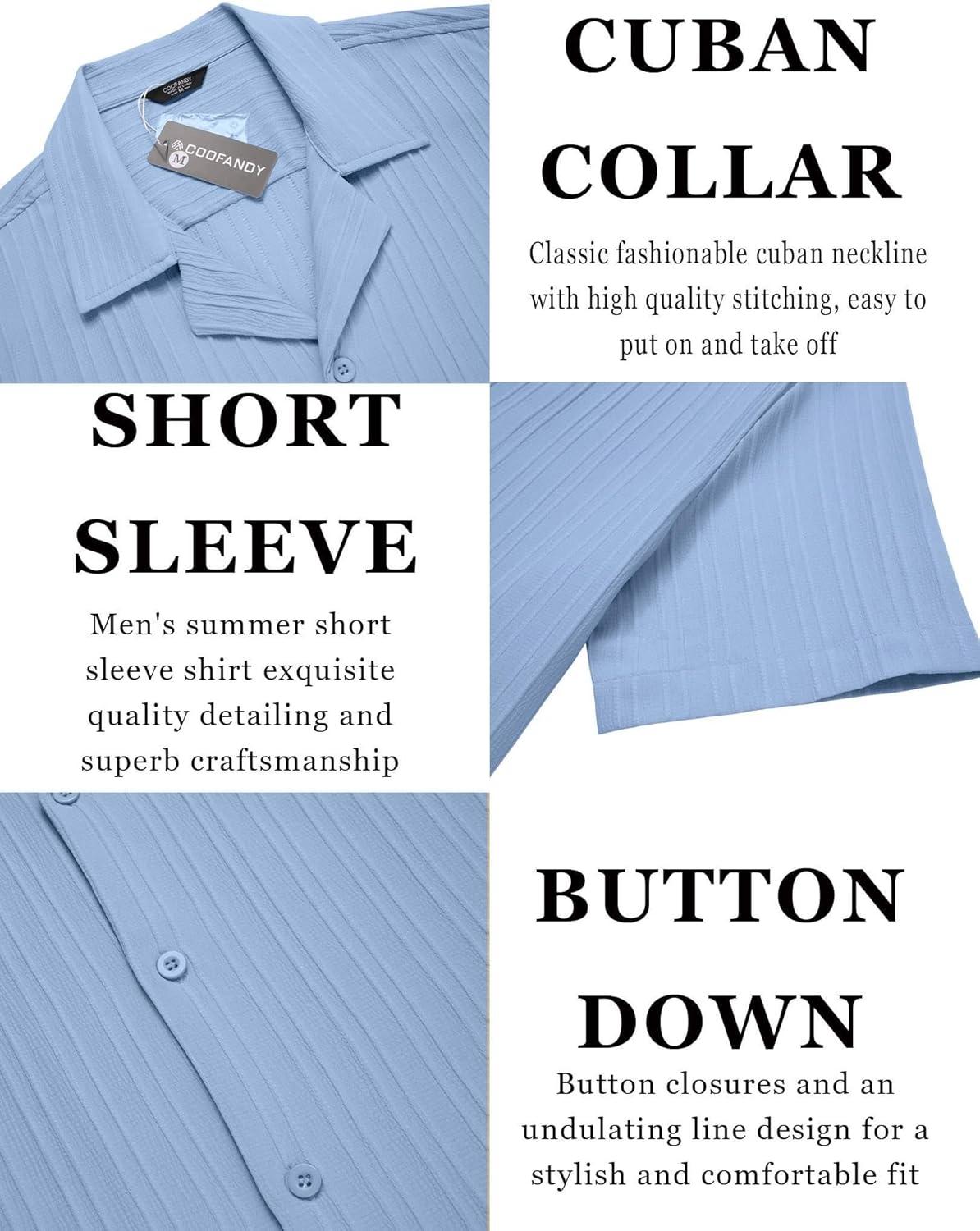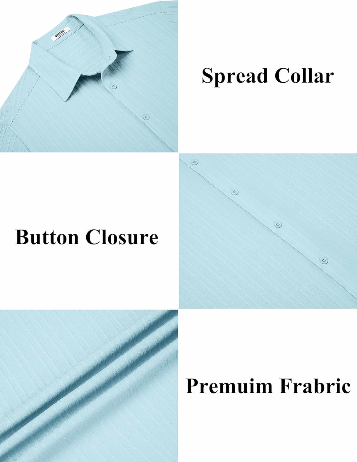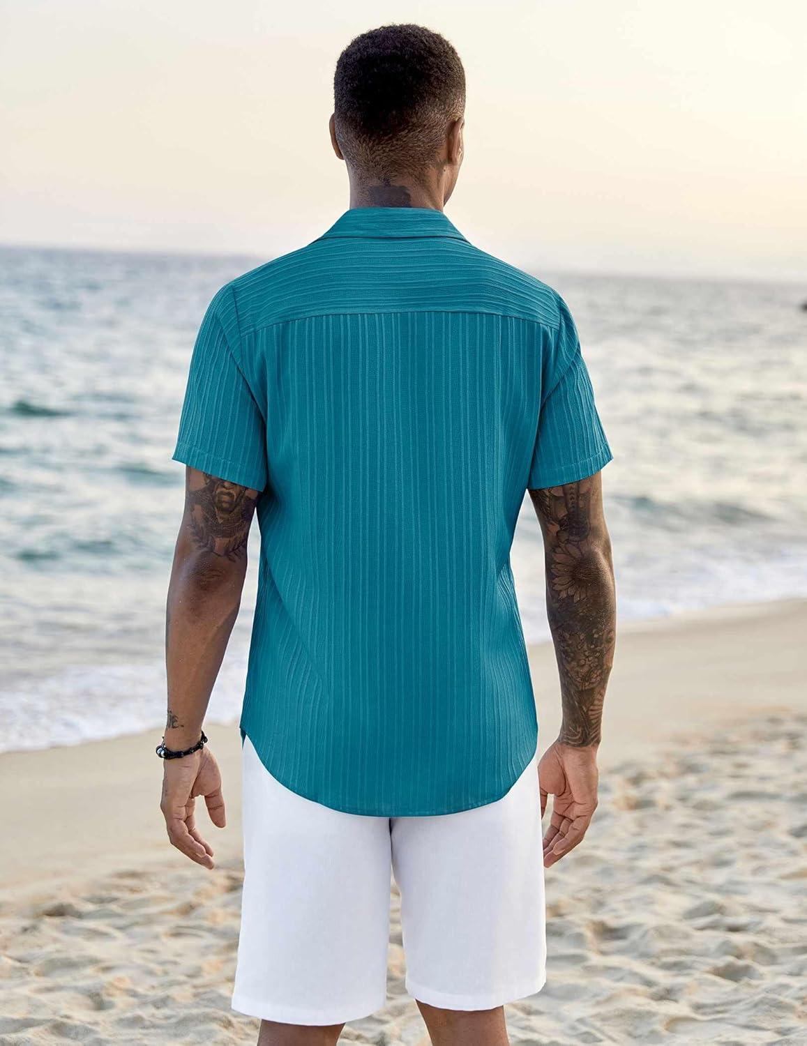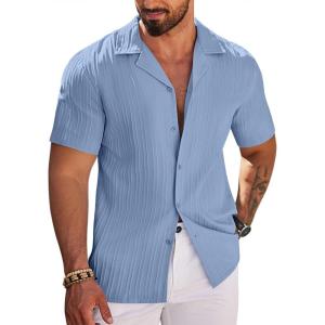 COOFANDY Men’s Casual Button Down Shirts Short Sleeve Textured Summer Beach Shirts(Lake Blue)